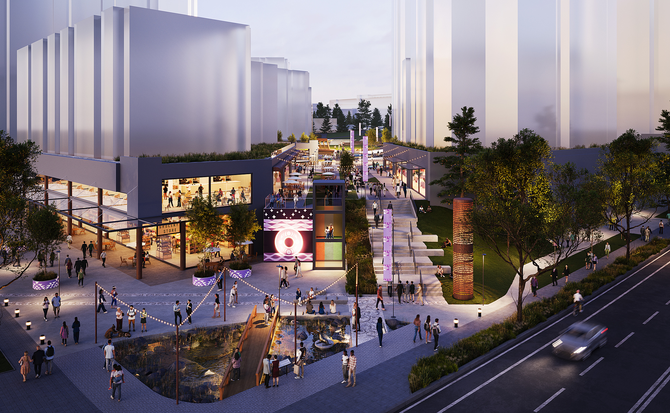 kʷasən Village is a fully imagined, harmoniously integrated 15-MINUTE NEIGHBOURHOOD where work, cultural diversity, higher education, and a network of transit options are always within precious minutes of home. kʷasən Village will feature the very best community amenities that blend into a lush landscape of storytelling parks, public art pathways, and purposeful greenspaces.