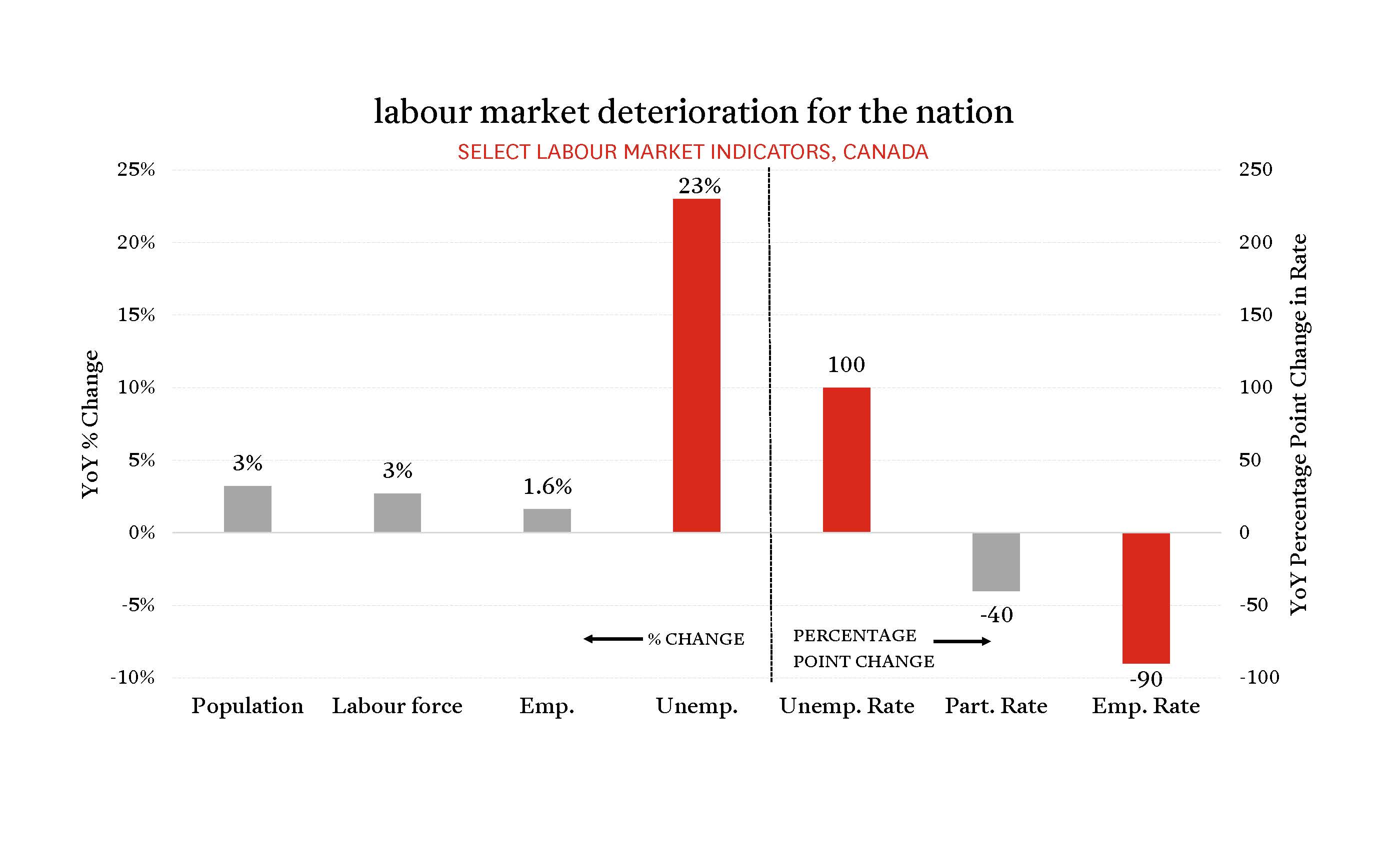 Canada’s labour market had been following a notable trend of late: one where the overall market was responding to restrictive monetary policy through rising unemployment, while the backdrop of record population growth was also boosting employment. We’ve discussed previously how an exploding Canadian population has been the primary reason for employment growth, and that when viewed across a spectrum of indicators, it’s clear the overall labour market had been weakening for the better part of a year.