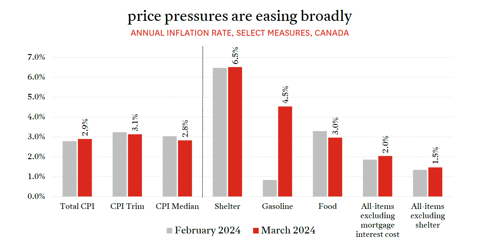 The latest release of Consumer Price Index (CPI) data from Statistics Canada saw a reversal of recent trends in headline inflation. Overall, the annual rate of inflation ticked up in March, to 2.9%, after two consecutive monthly decreases. However, in spite of the directional change to the headline rate, there’s a lot of good news for consumers (and the Bank of Canada) underneath the hood of the total CPI.