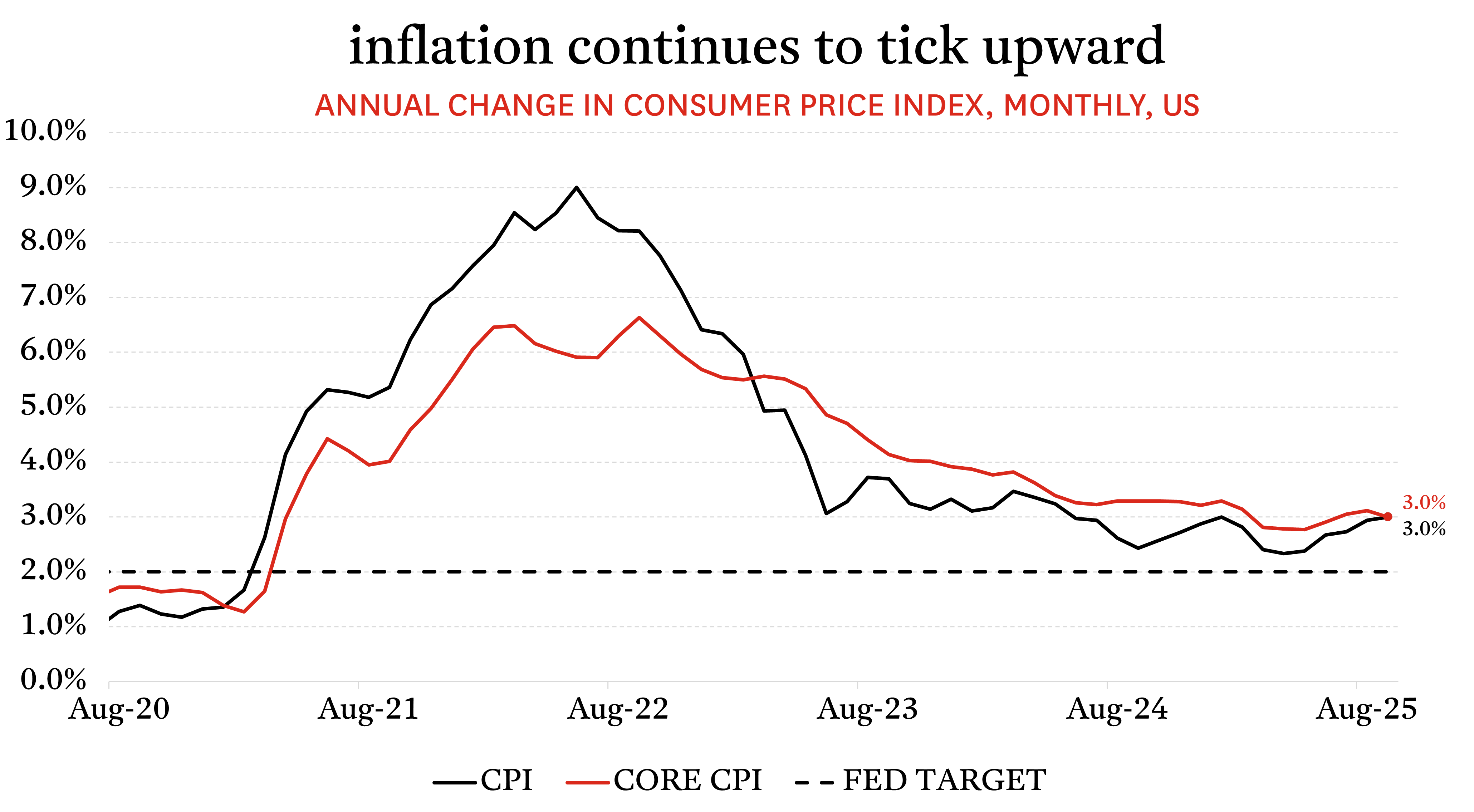 The September inflation figure can be read in two ways. It was a mild increase, below many forecasts, and relatively restrained given earlier fears of tariff pass-through. Yet inflation has now remained above target for more than four years, and it is unusual, even counterintuitive, for the Fed to be cutting rates while prices are still rising at the pace they are. These opposing viewpoints can be seen from within the Fed itself, with two members dissenting at the October meeting: one actually favored a larger reduction, while the other preferred to hold steady.