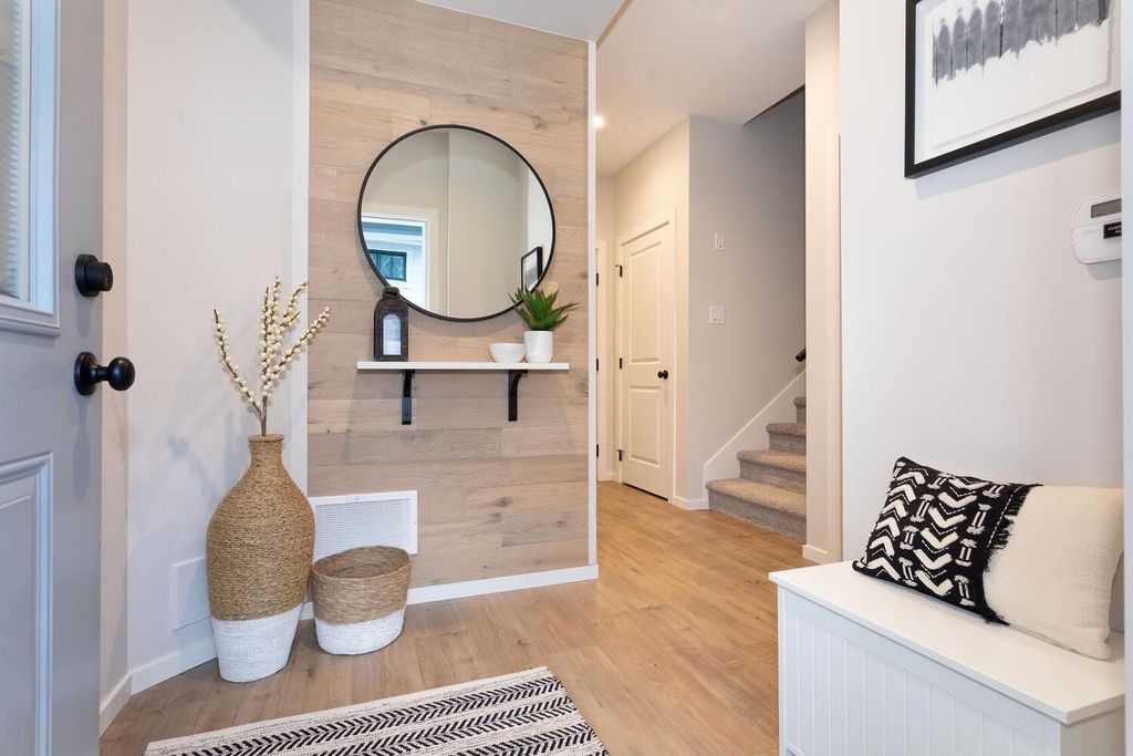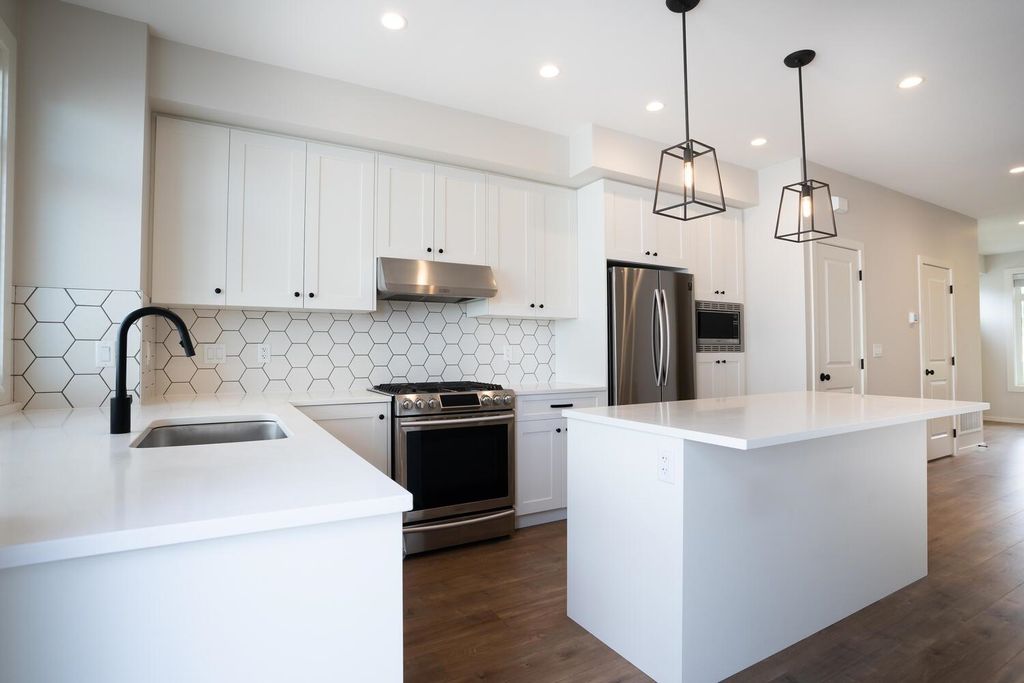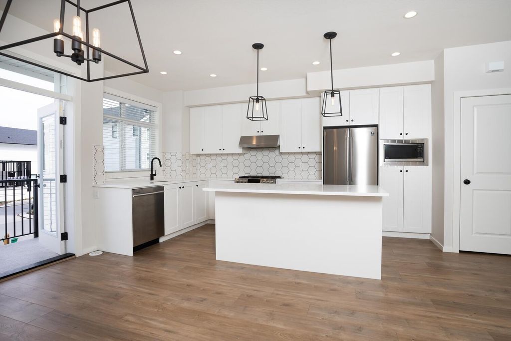 FRASER HILL. Georgie Award for best Multi-Family Site by well-known quality builder Park Ridge Homes. Stunning complex of 77 Modern Farmhouse inspired townhomes in the coveted community of Fraser Heights. This end unit is ideally located within Fraser Hill & beside mature greenspace. Well thought-out floorplan with open-concept living including 4 bedrooms, 3.5 bathrooms, double car garage, stainless steel appliances including gas range, hot water on-demand with high efficiency forced air heating & Air Conditioning. Primary bedroom has vaulted ceilings, views of a private park and luxurious ensuite. Photos are for reference only & do not depict the finishings in this unit. Includes New Home Warranty. Move in ready with flexible dates available.