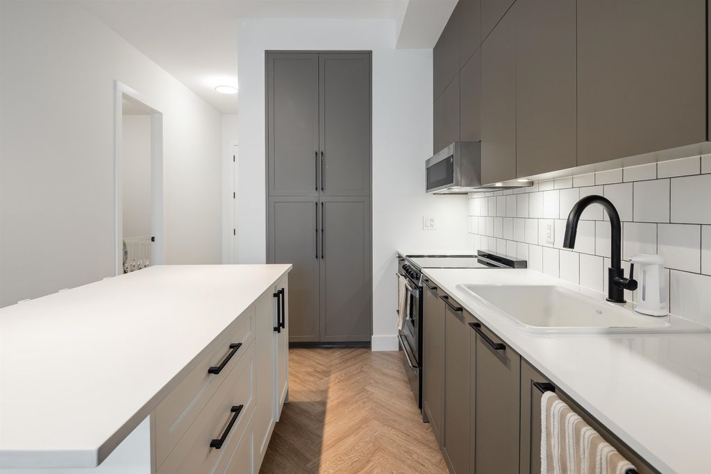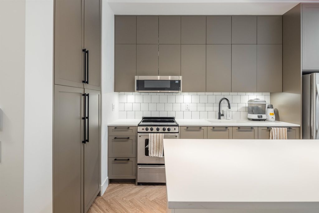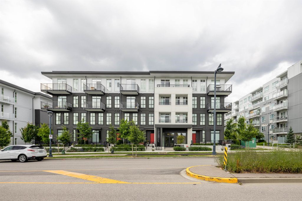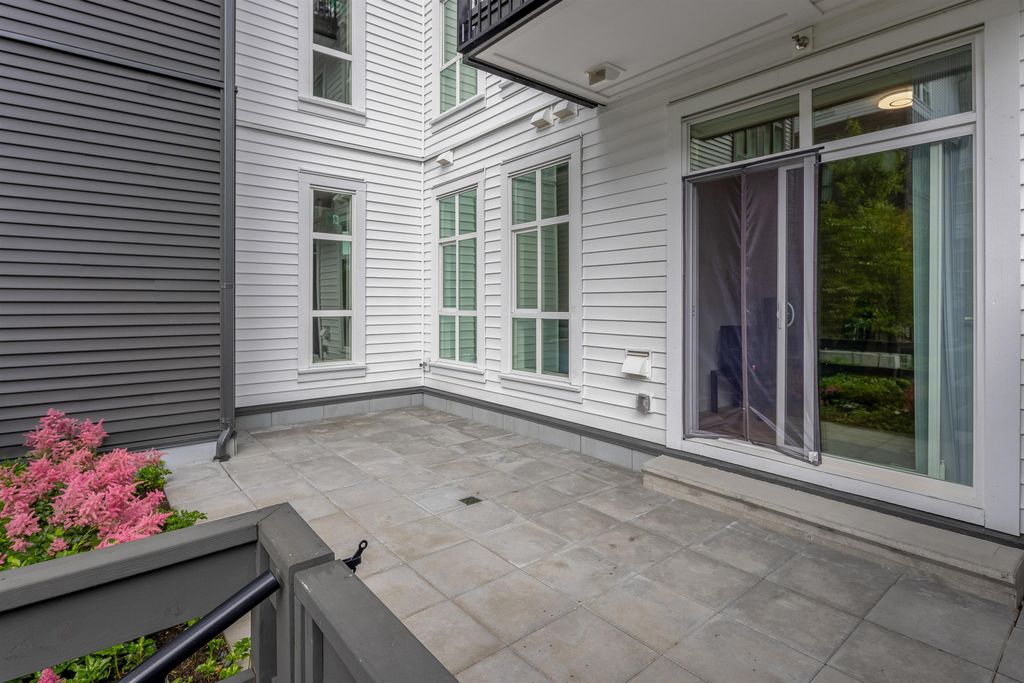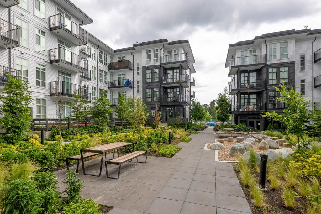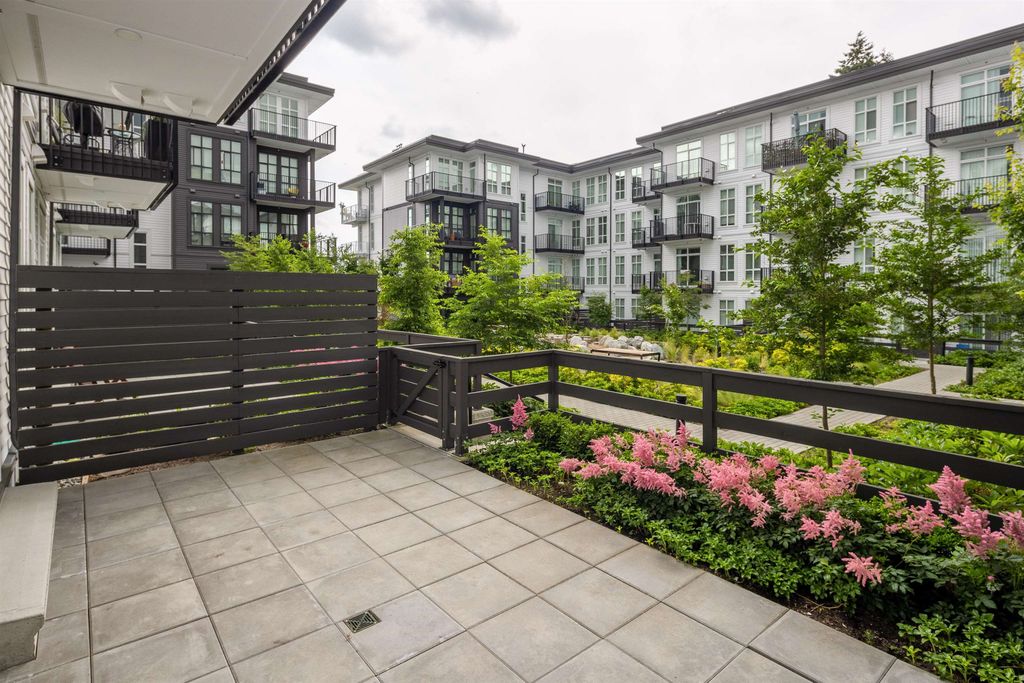 Beautifully designed ground level 2-bedroom/1.5-bathroom home at "Parker" by Mosaic, one of Metro Vancouver's most reputable homebuilders. Featuring approximately 10' ceilings, large windows, custom-made kitchen island, herringbone-design flooring, and a quite west facing outdoor patio large enough to entertain guests. Ensuite features a separate bathtub & shower. Beautifully landscaped gardens surround the perimeter of the property. The building sits adjacent to Forsyth Park, a 7.5-acre community park in City Centre with a nature-based playground and popular dog park. Tucked away in a park-like setting, the community is just minutes from the vibrancy of Surrey City Centre.