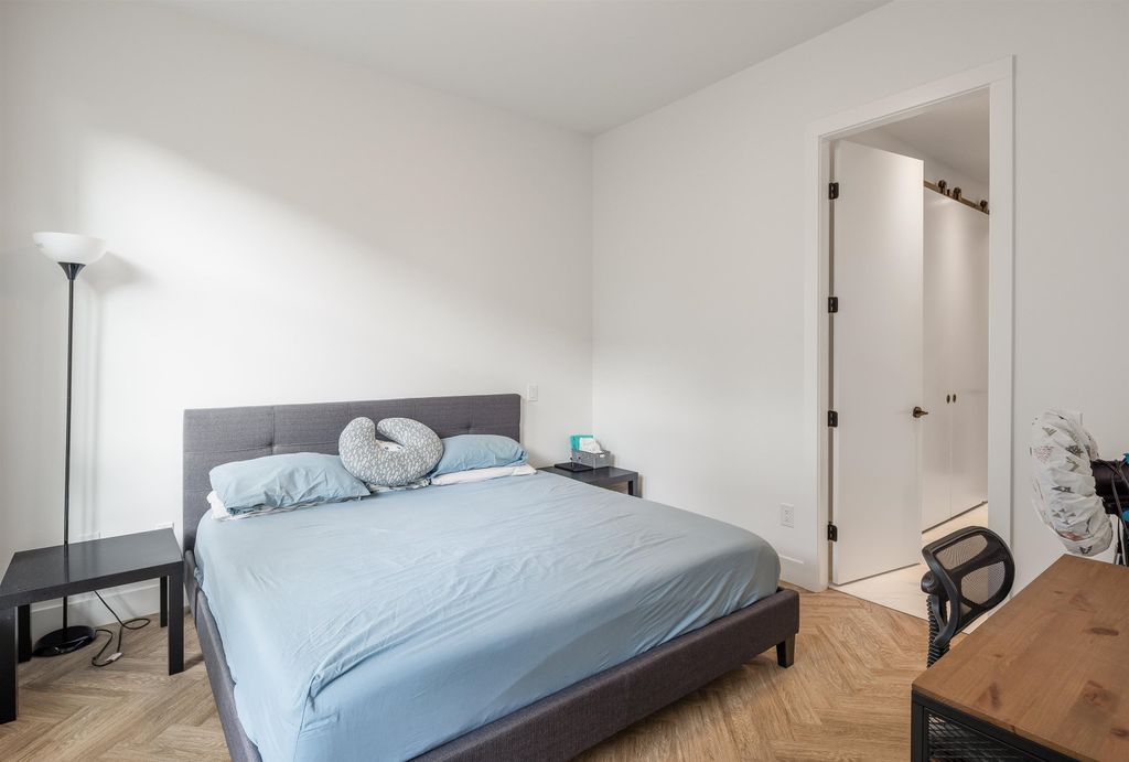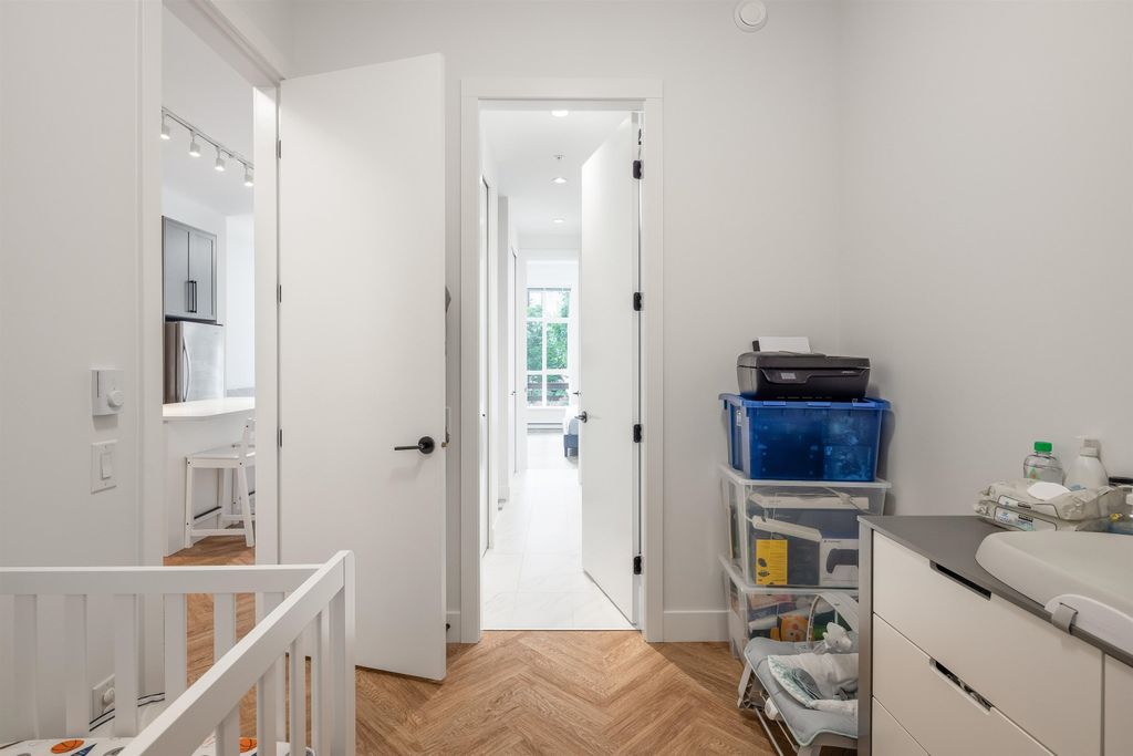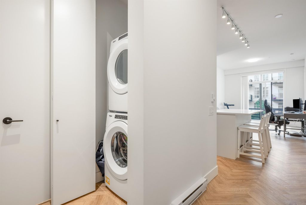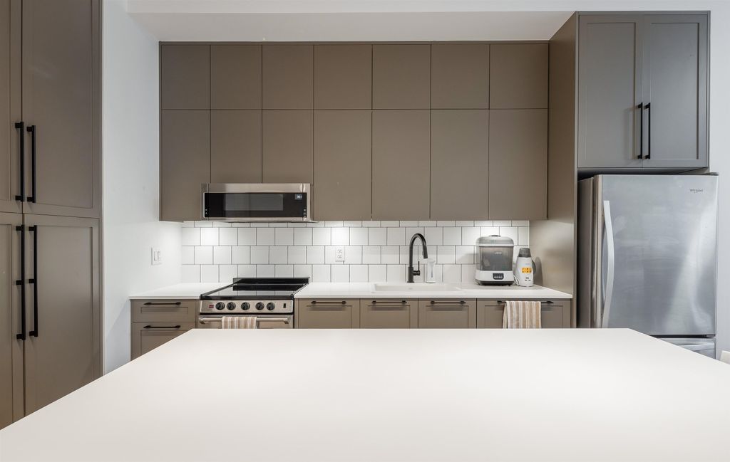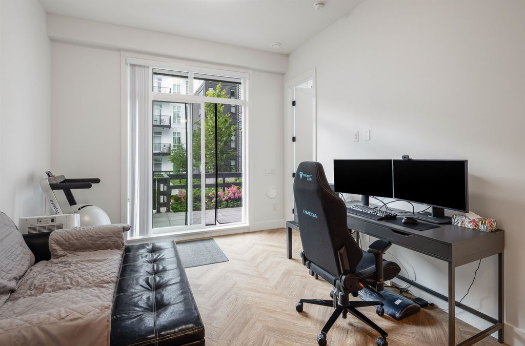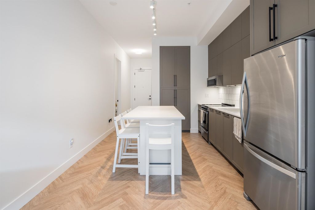 Beautifully designed ground level 2-bedroom/1.5-bathroom home at "Parker" by Mosaic, one of Metro Vancouver's most reputable homebuilders. Featuring approximately 10' ceilings, large windows, custom-made kitchen island, herringbone-design flooring, and a quite west facing outdoor patio large enough to entertain guests. Ensuite features a separate bathtub & shower. Beautifully landscaped gardens surround the perimeter of the property. The building sits adjacent to Forsyth Park, a 7.5-acre community park in City Centre with a nature-based playground and popular dog park. Tucked away in a park-like setting, the community is just minutes from the vibrancy of Surrey City Centre.
