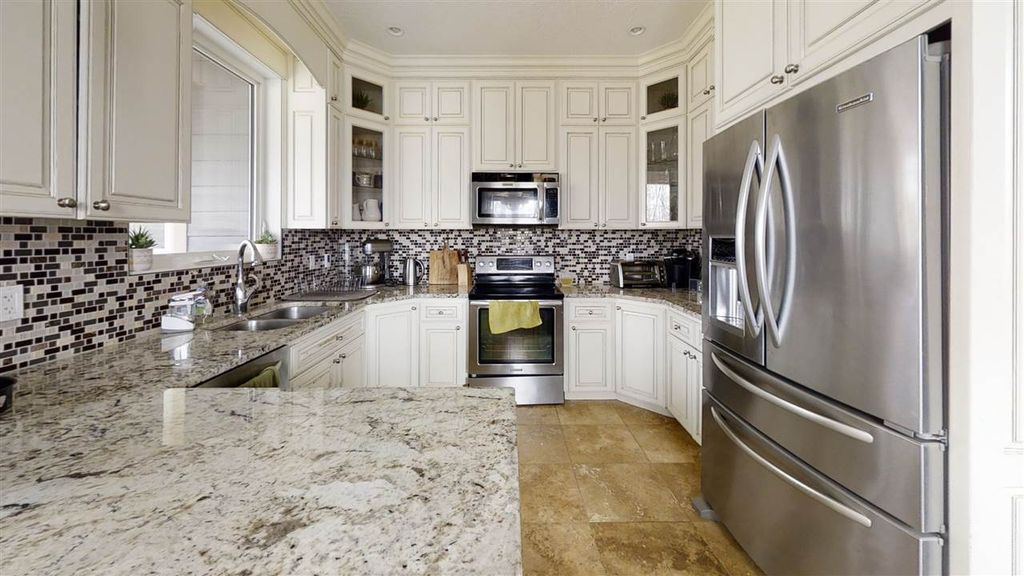 Step inside, a large tile entryway and a floor-to-ceiling stone fireplace welcomes you into this six bedroom four bathroom 1550 sqft home with large coffered ceilings throughout the main floor. Located on a cul-de-sac within the Ma Murray catchment, this property offers an oversize driveway with room for the RV and a private fenced backyard overlooking a large country acreage with plenty of room for the kids to play. The kitchen provides a beautiful and efficient area to cook and entertain featuring floor-to-ceiling cupboards, marble counter tops and a covered deck to BBQ year round. Walk downstairs and you will find an enormous and bright rec room with in-floor heat, a bathroom and three additional bedrooms. Come home to Sunset Ridge.