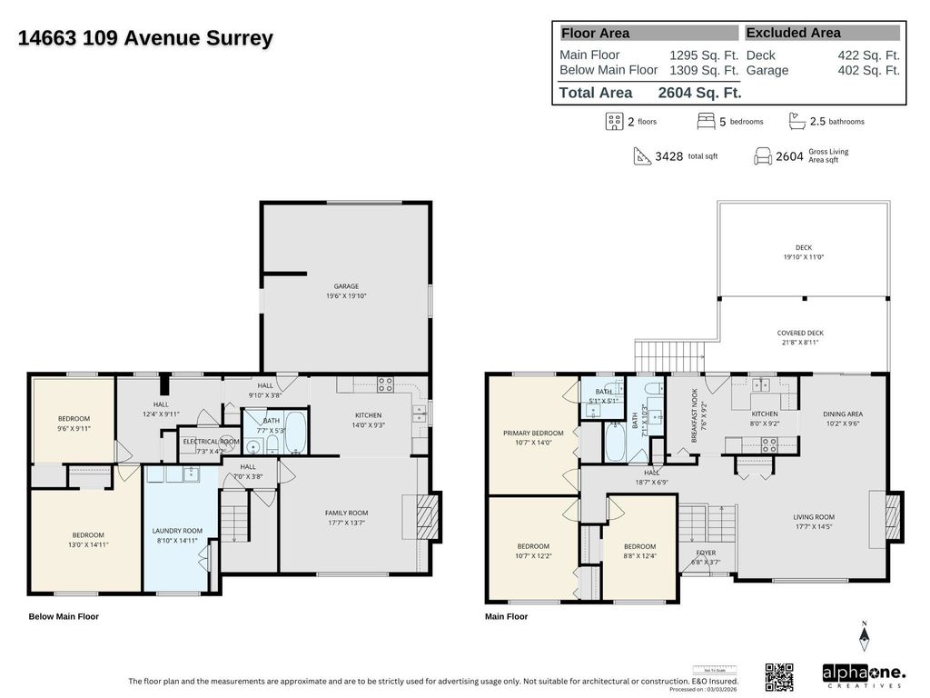 Prime location with lane access! Very spacious and well cared-for 5 bedrm home offering excellent family living and future potential. The upper level features 3 generously sized bedrms, 2 bath, and bright living, dining, and kitchen areas with plenty of space to gather and entertain. The lower level includes a multi-use large laundry room and a spacious 2-bedrm rental suite (registered with the City) - strong mortgage helper. Garage access from the back lane. Zoned R3, which provides multi-unit development potential under SSMUH; ideal for a variety of housing options including duplexes w/suites, coach homes (lane access), multiplexes, etc. Huge potential for investors or builders. Roof, furnace, and HWT replaced. A great opportunity to live comfortably today and build equity for tomorrow!