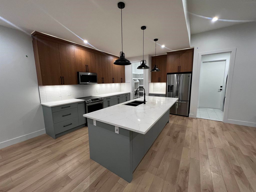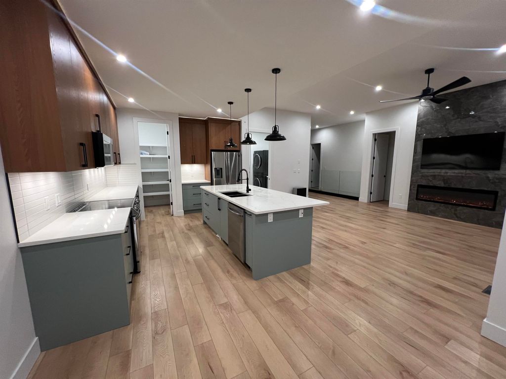 This stunning 6-bed, 4-bath executive home is located in a quiet, upscale neighbourhood near Ma Murray School, Naache Commons plaza, walking trails, parks, & more. Features include in-floor heating in the basement and garage, furnace serving upstairs with rough-ins for A/C, and a large 6-car driveway. Designed for comfortable living with over 1500 sq ft of bright, open space on the main floor, while the finished walk-out basement adds 800 sq ft with a rec room, wet bar, full bath, and 2 bedrooms. What's more, there's also an additional 800 sq ft 1-bed, 1-bath legal suite with soundproofing and separate utility meters that provides excellent rental income potential. The quality finishes, high ceilings, extra large windows, and 8-foot tall doors contribute to an elevated living experience.