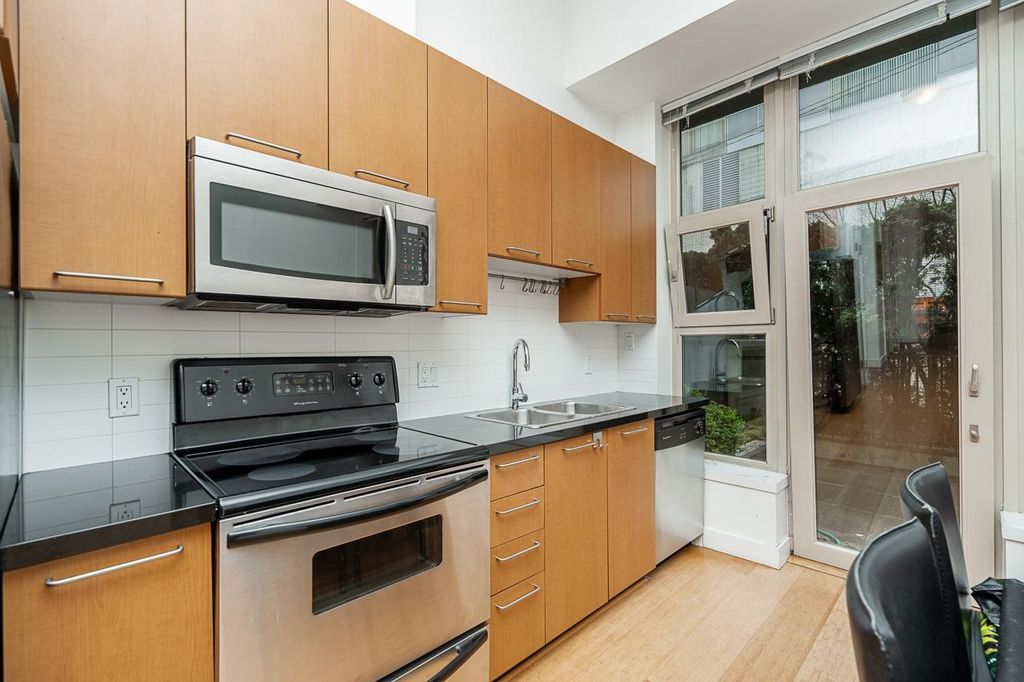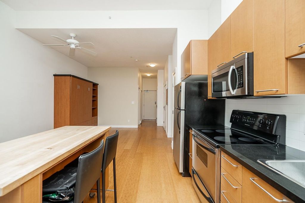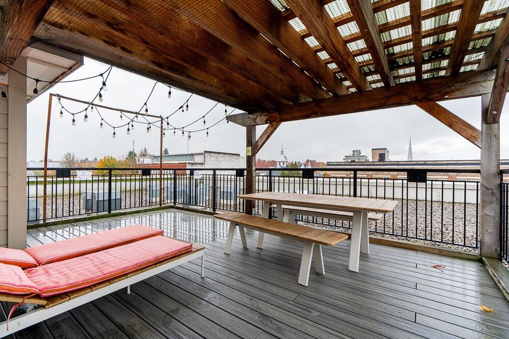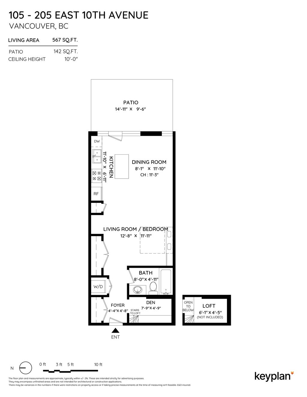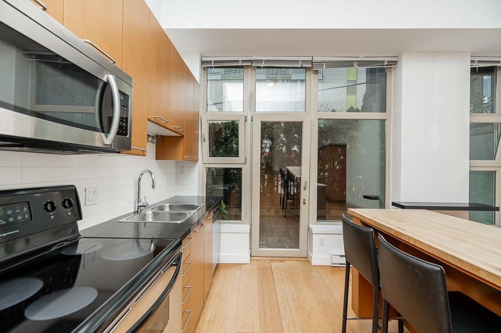 With 11' high ceilings & a large private patio, this studio plus den residence offers 567 sq.ft. of interior living area w/ an airy & space-maximizing layout. With bamboo floors throughout & floor to ceiling windows that welcome in natural light. Kitchen w/ S/S appliances, granite countertops, & a versatile moveable island w/ plenty of extra cabinet space. The built-in Murphy bed can be conveniently tucked away when not in use. Includes ample in-suite storage, in-suite laundry, secure underground parking, & bike storage. The rooftop terrace offers spectacular mountain views. Located in the heart of the thriving Mount Pleasant neighbourhood, this property is close to excellent shops, services, amenities, & rapid transit.