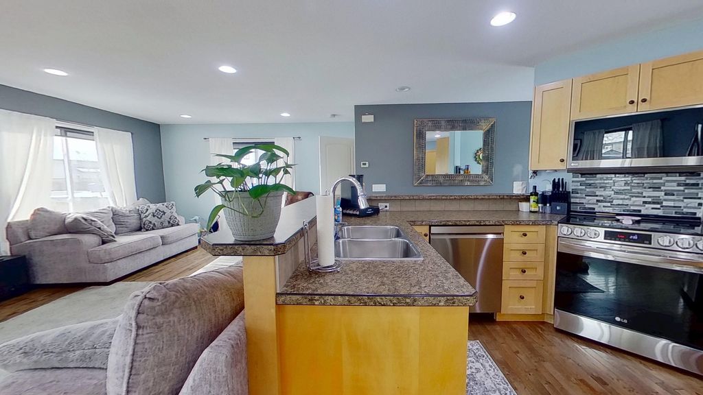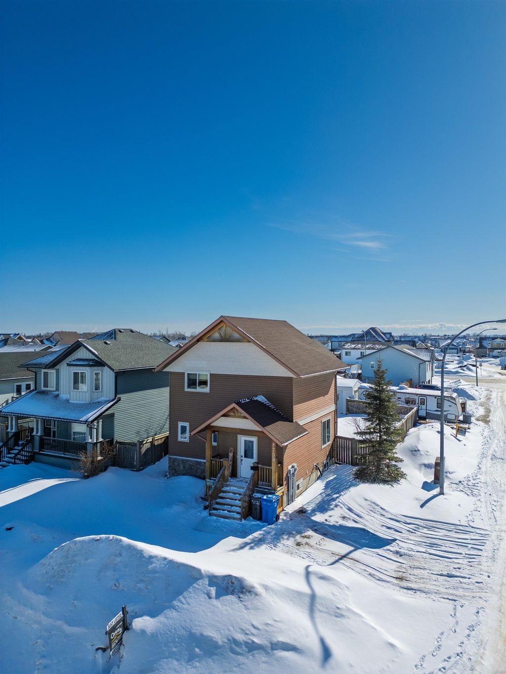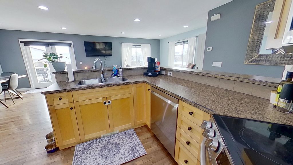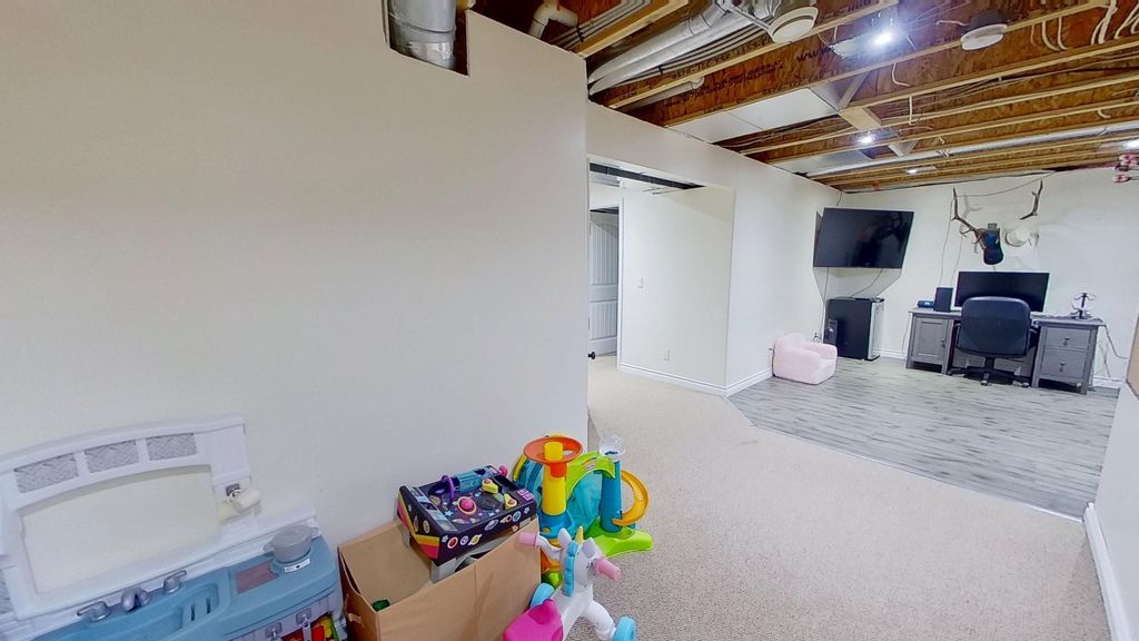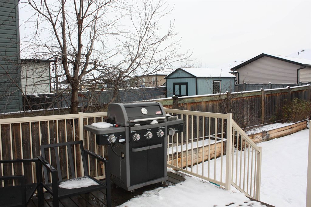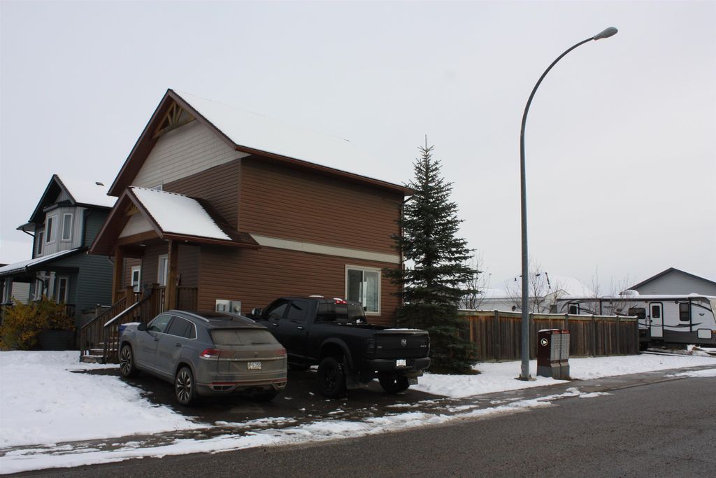 Welcome to Panorama Ridge! Ideal location close to the hospital, new Anne Roberts School, walking trails, ball diamonds, and park . This corner-lot home offers multiple access points, including a toy garage in the backyard and an extra driveway for RV parking. Enjoy a south-facing yard with fruit trees and a garden. Inside, the main floor features open-concept living, a bright kitchen with bar seating, and spacious dining. Upstairs has 3 bedrooms, a primary with his/hers closets, and convenient laundry. The nearly finished basement includes a rec room, 4th bedroom, and 3rd bath. A must-see home in a prime neighborhood!
