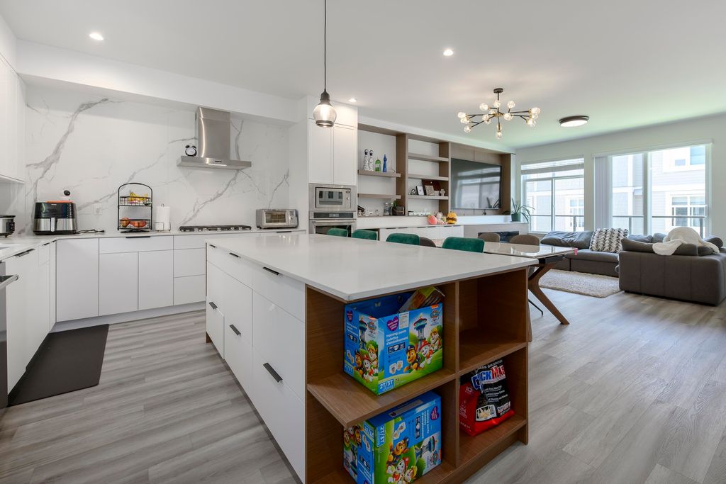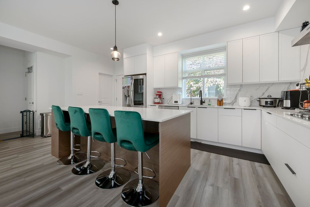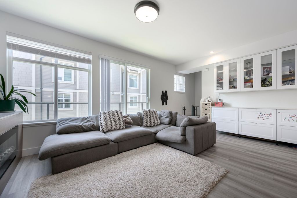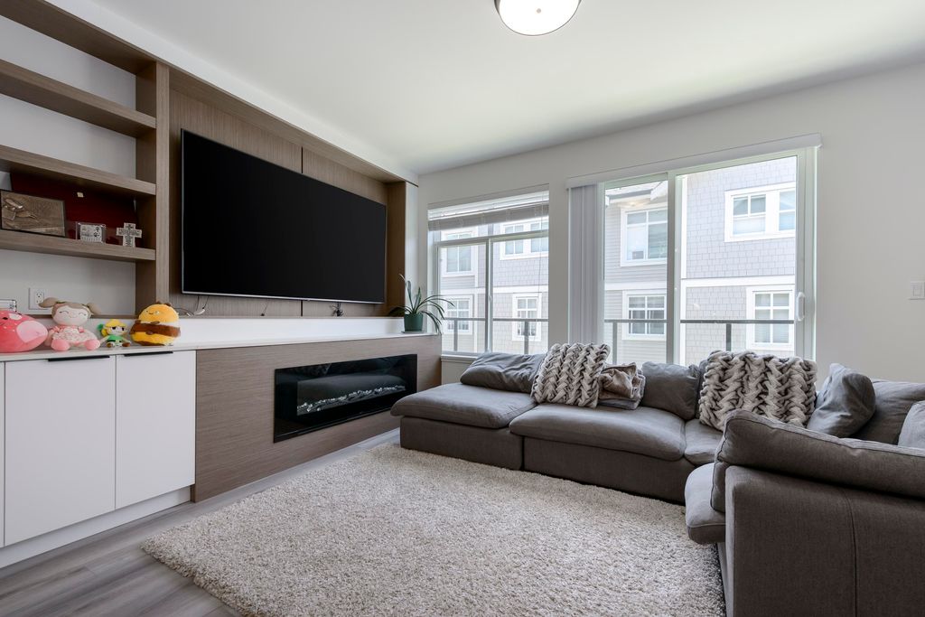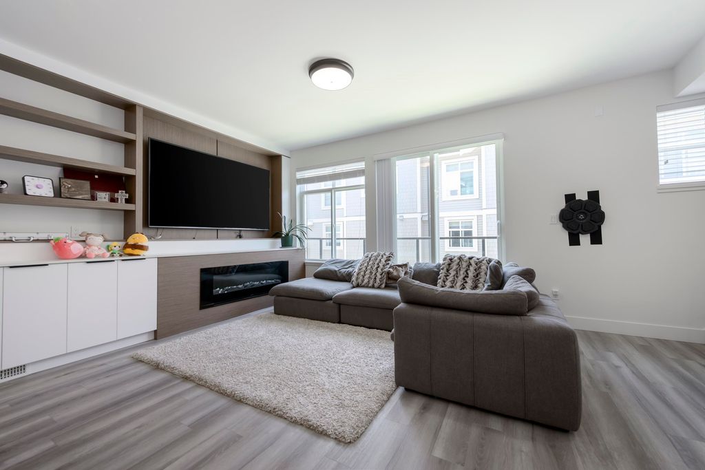 This 3 bedroom and den townhome is ideally situated close to Scott Road SkyTrain Station, with easy access to Pattullo Bridge. Designed with comfort and functionality in mind, the top floor features three bedrooms, including a primary bedroom with ensuite and a walk-in closet, two spacious bedrooms and one bathroom. The main floor features an open kitchen with quartz countertops, abundance of cabinetry, and stainless steel appliances. Located on the same level is an open living room with an electric fireplace, a powder room, and access to the backyard for outdoor enjoyment. The lower level includes a double-car garage and a huge den, which can be used as an office or an additional bedroom and a powder room, A/C and EV charging station. Open House: Dec 20, 2025 (Sat), 1:00 pm - 3:00 pm