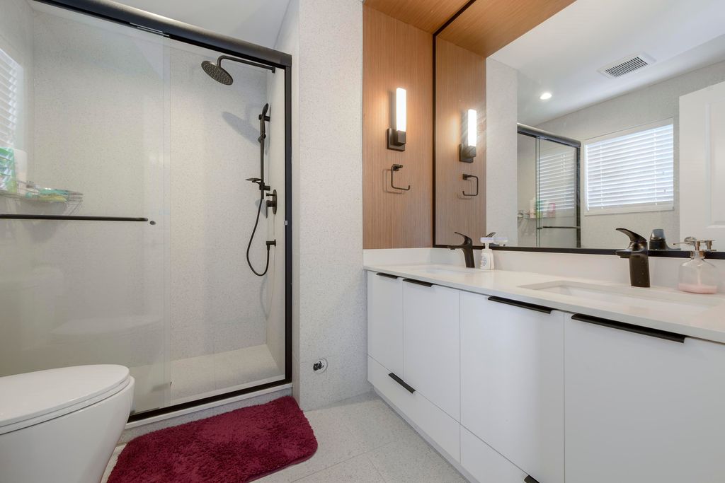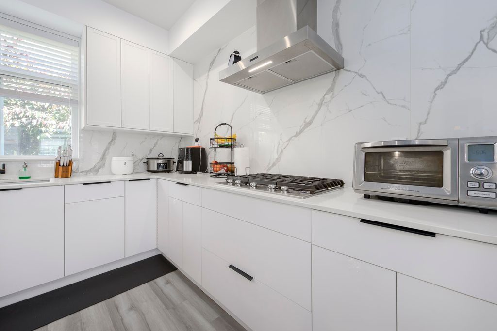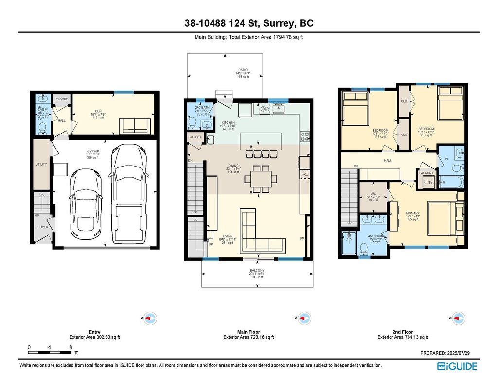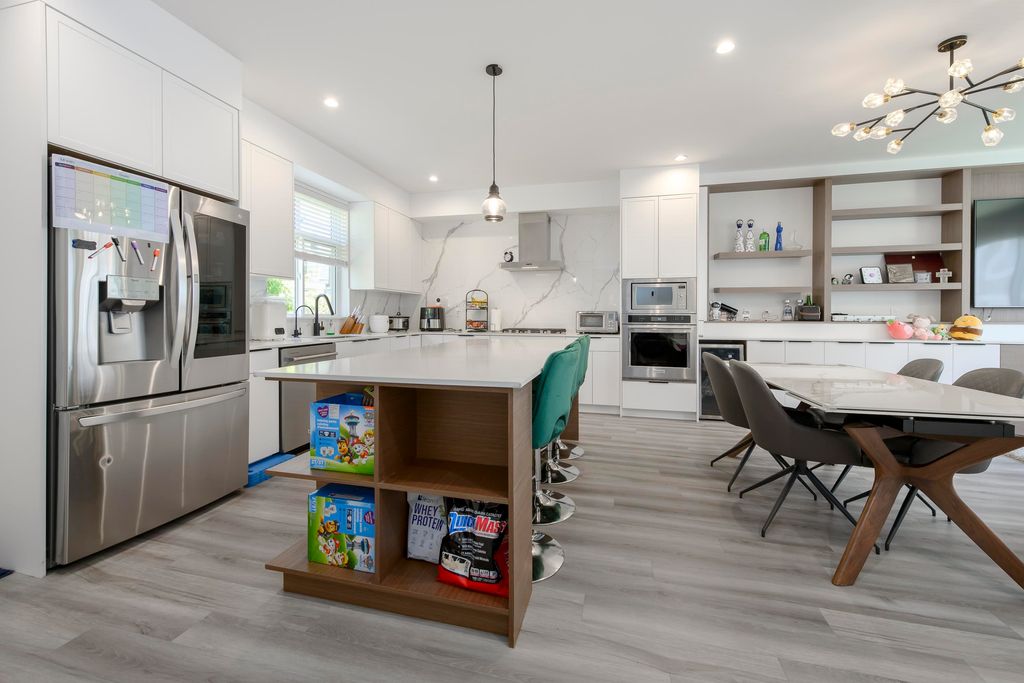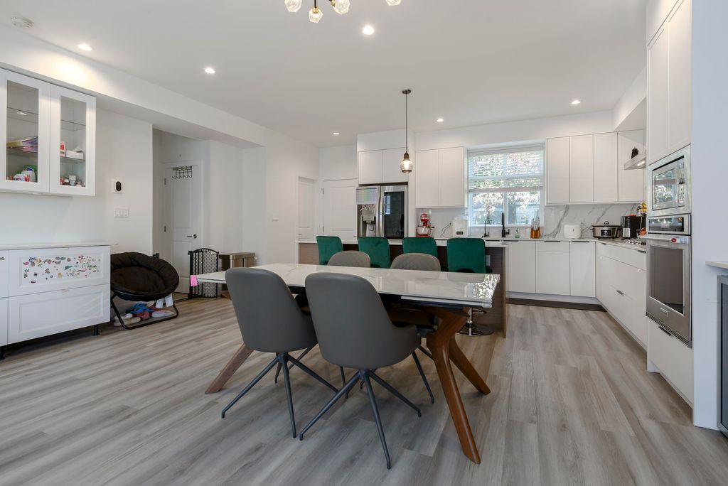 This 3 bedroom and den townhome is ideally situated close to Scott Road SkyTrain Station, with easy access to Pattullo Bridge. Designed with comfort and functionality in mind, the top floor features three bedrooms, including a primary bedroom with ensuite and a walk-in closet, two spacious bedrooms and one bathroom. The main floor features an open kitchen with quartz countertops, abundance of cabinetry, and stainless steel appliances. Located on the same level is an open living room with an electric fireplace, a powder room, and access to the backyard for outdoor enjoyment. The lower level includes a double-car garage and a huge den, which can be used as an office or an additional bedroom and a powder room, A/C and EV charging station. Open House: Dec 20, 2025 (Sat), 1:00 pm - 3:00 pm