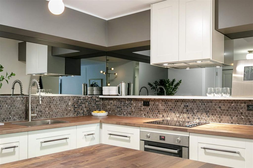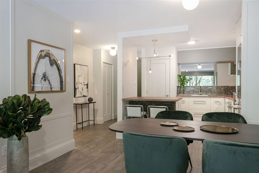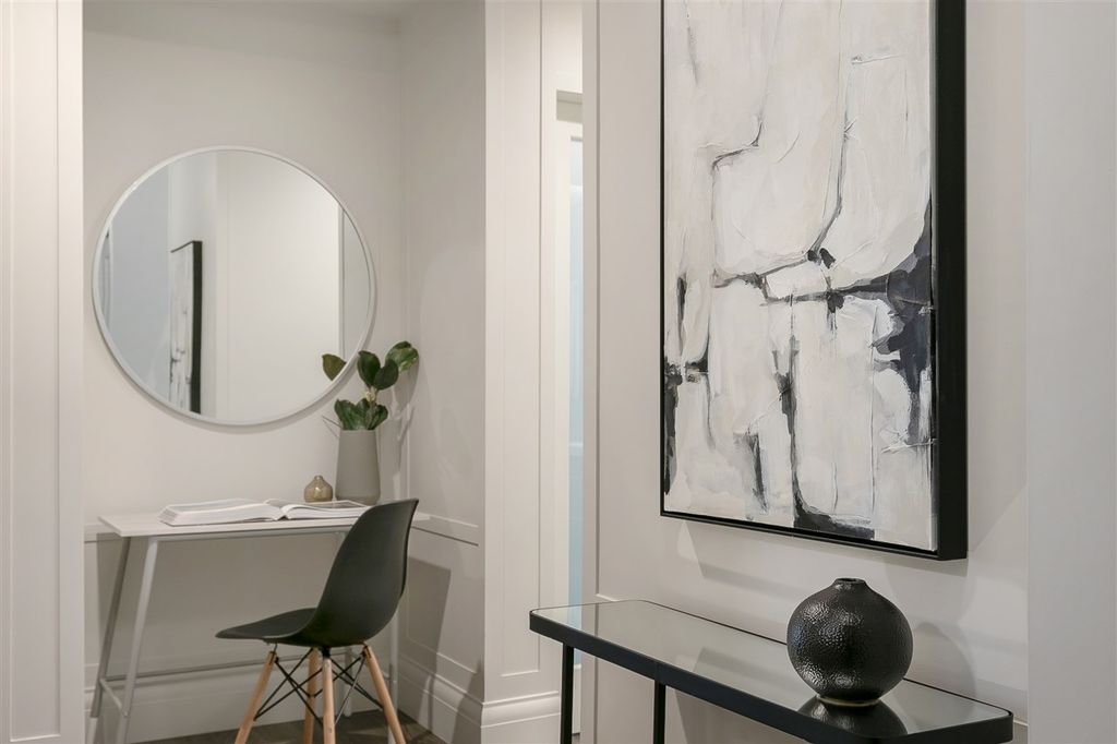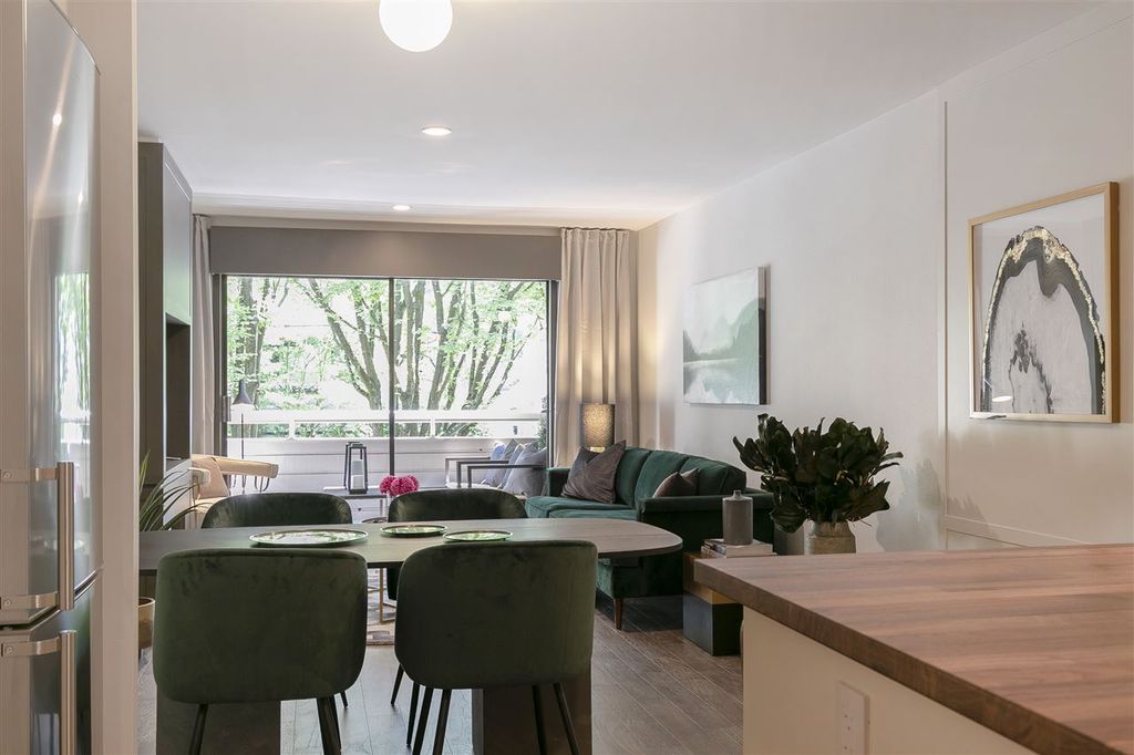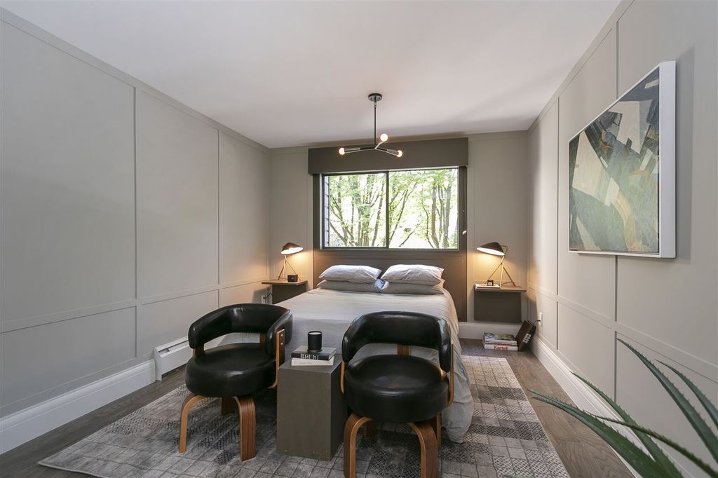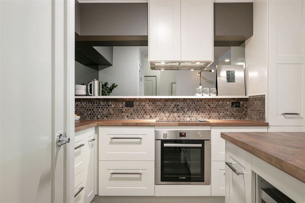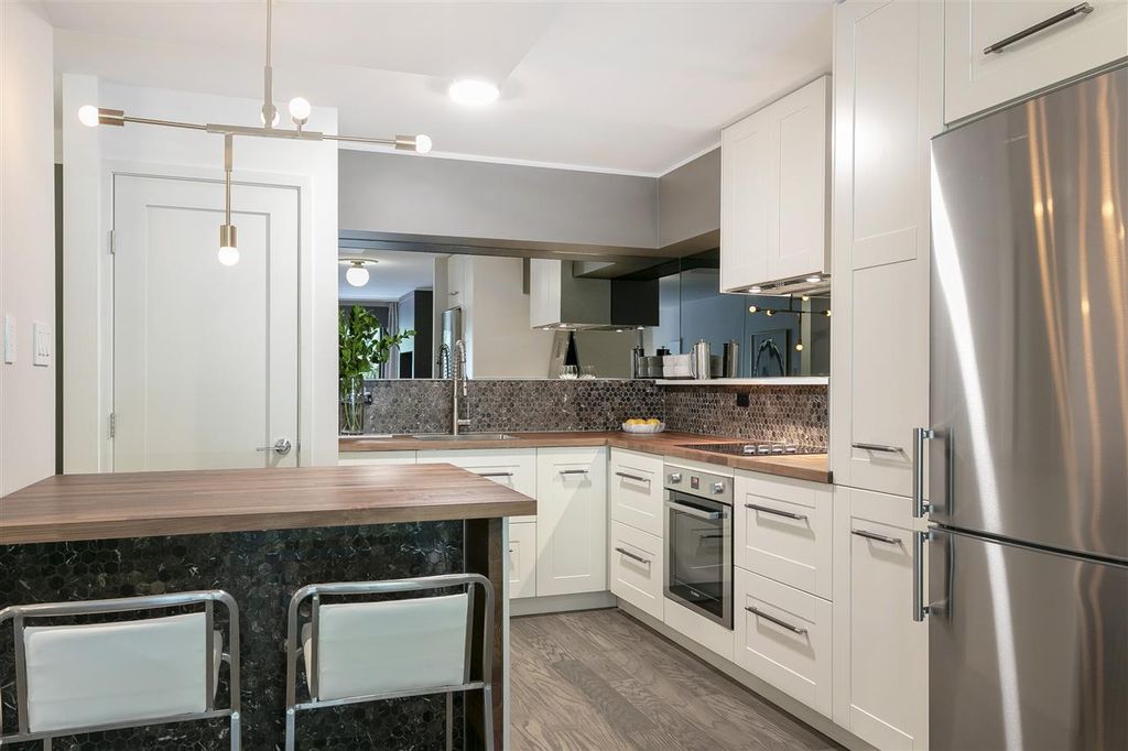Refined South Granville living at this large one-bedroom home at 'Granville West'. All brand new and re-designed, this well laid out home features engineered wood flooring, custom wall paneling, smoothed ceilings, and custom lighting fixtures. The spacious designer kitchen has plenty of storage and a 6-piece appliance package including Bosch cooktop and range. The beautiful custom bathroom, king-size bedroom with built-in feature wall design, and built-in desk area make this home truly one-of-a-kind. The home has a large covered patio facing the quiet backyard, as well as a new washer/dryer. The building has a newer roof, modernized upgraded elevator, updated piping and exterior paint. All work completed with permits. Pets are welcome!