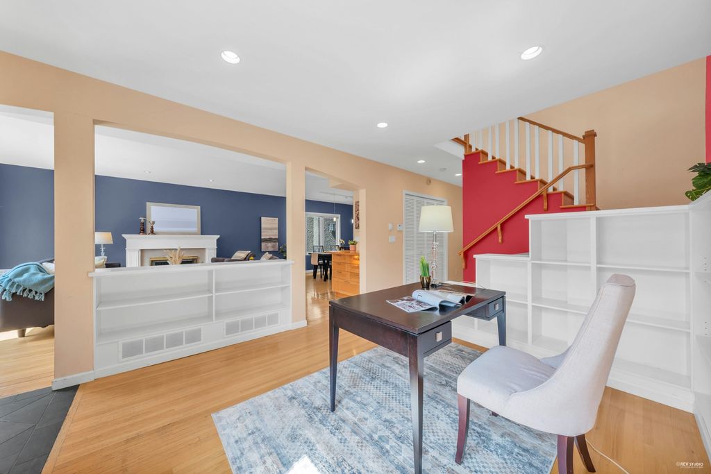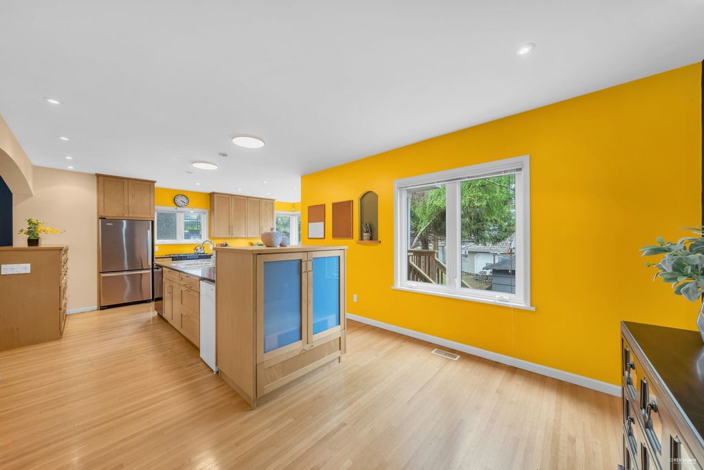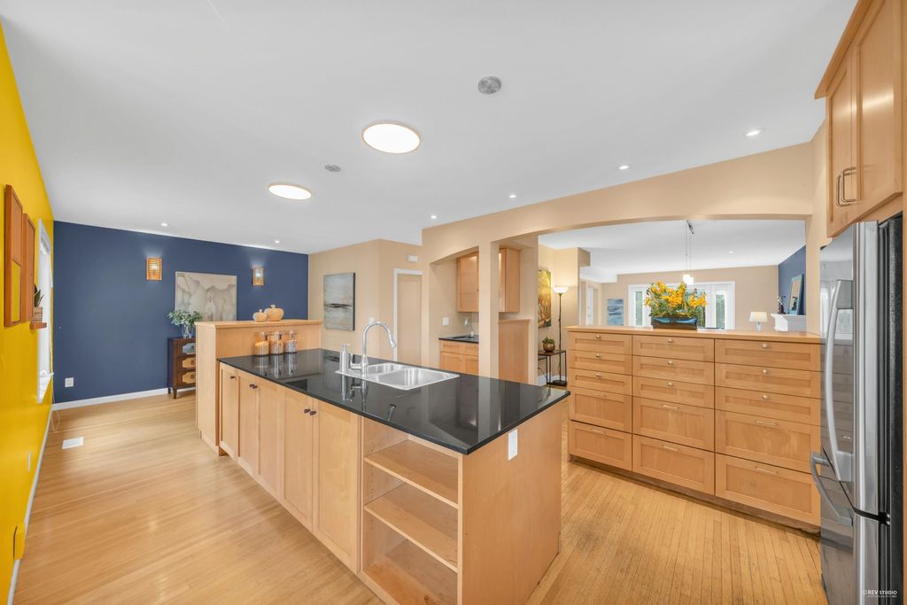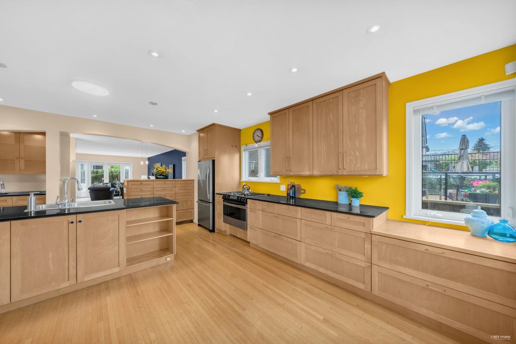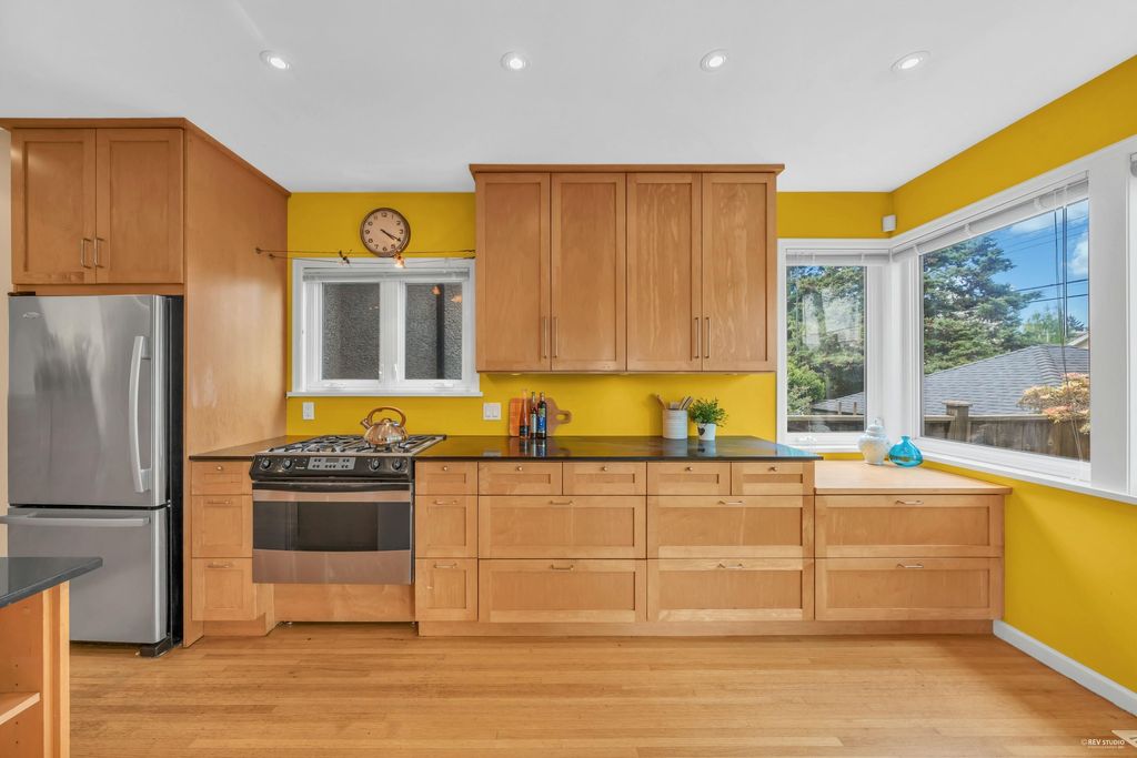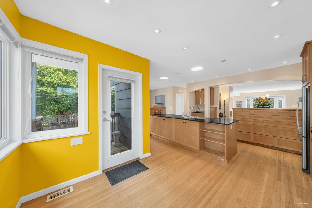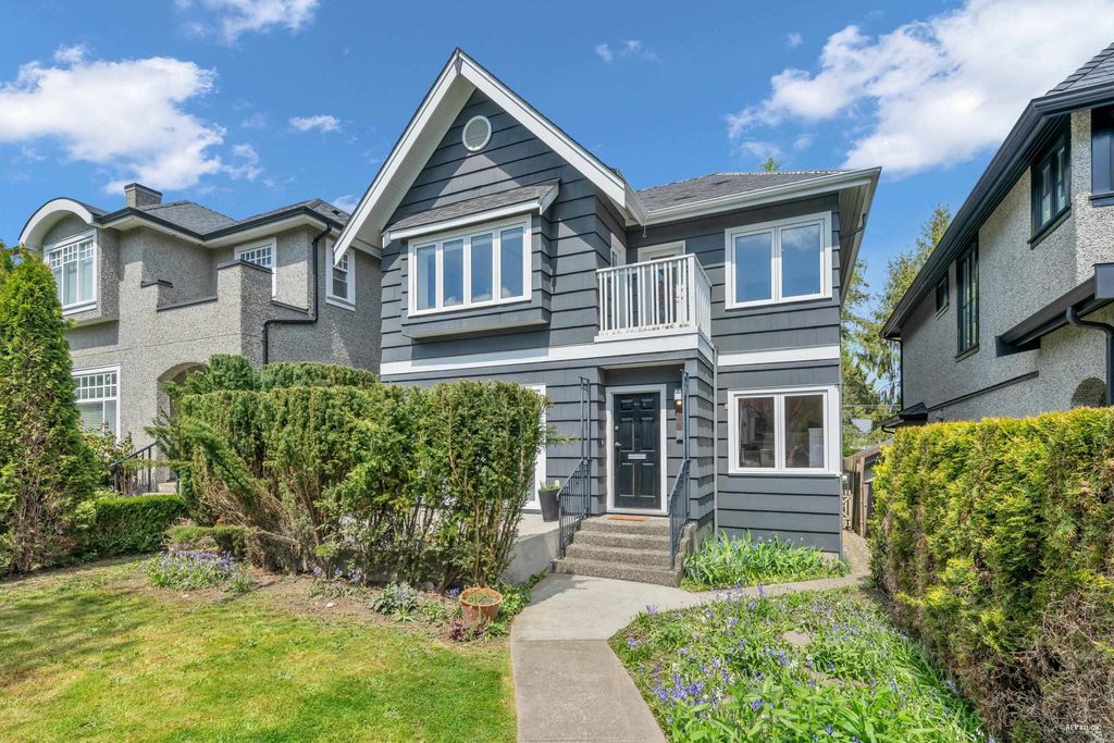 Beautiful Craftsman style 6 bed/ 4 bath home oozing with curb appeal in prime Point Grey! Massively renovated in 2004 with a bright and airy open concept floor plan; the South facing living room extends onto a porch through new European tilt and turn windows, hardwood on the main floor, updated blinds, wood burning f/p and custom built-in bookshelves. Huge granite center island sets the stage in the chef’s kitchen which includes maple cabinetry, high-end appliances and a convenient TV nook. King-sized master retreat steps out to a bright NW facing balcony. Close to all the amenities on West 10th and UBC as well as Queen Mary, Lord Byng and Kits Secondary schools. Peaceful outlook through tons of windows over a lush, mature treed property makes this home too good to miss!