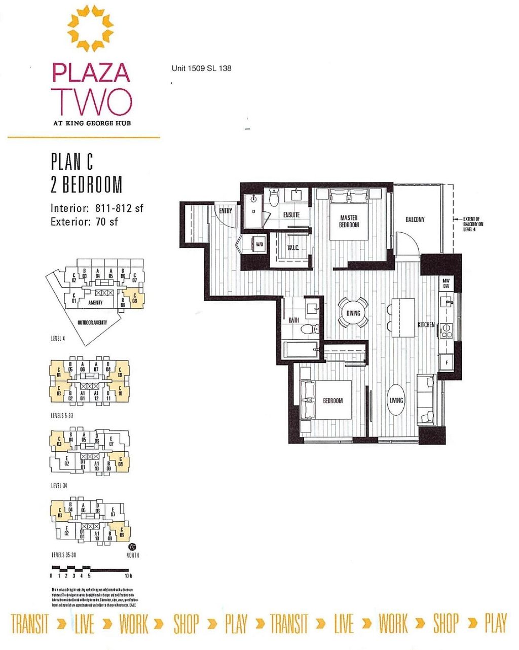 Experience unmatched location, value, and style at King George Hub – Plaza Two. This sophisticated 2 bed, 2 bath residence offers 811 sq ft of thoughtfully designed interior space + 70 sq ft balcony perfect for relaxing or entertaining. Inside, enjoy high-end Fulgor Milano appliances, sleek quartz countertops, and floor-to-ceiling windows that flood the home with natural light. The smart split-bedroom layout offers privacy and flexibility—great for living or renting. Enjoy sweeping views and premium amenities: full gym, rooftop lounge, theatre, games room, coworking space, and more. Just 3 min walk to King George SkyTrain, shopping, dining, SFU & UBC Surrey. GST PAID. Whether you're upgrading, investing, or buying your first home—this is the opportunity you’ve been waiting for.