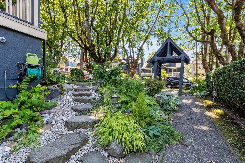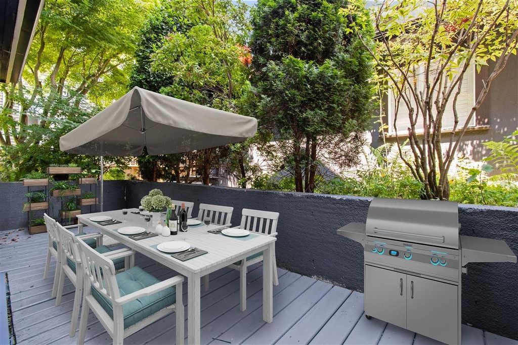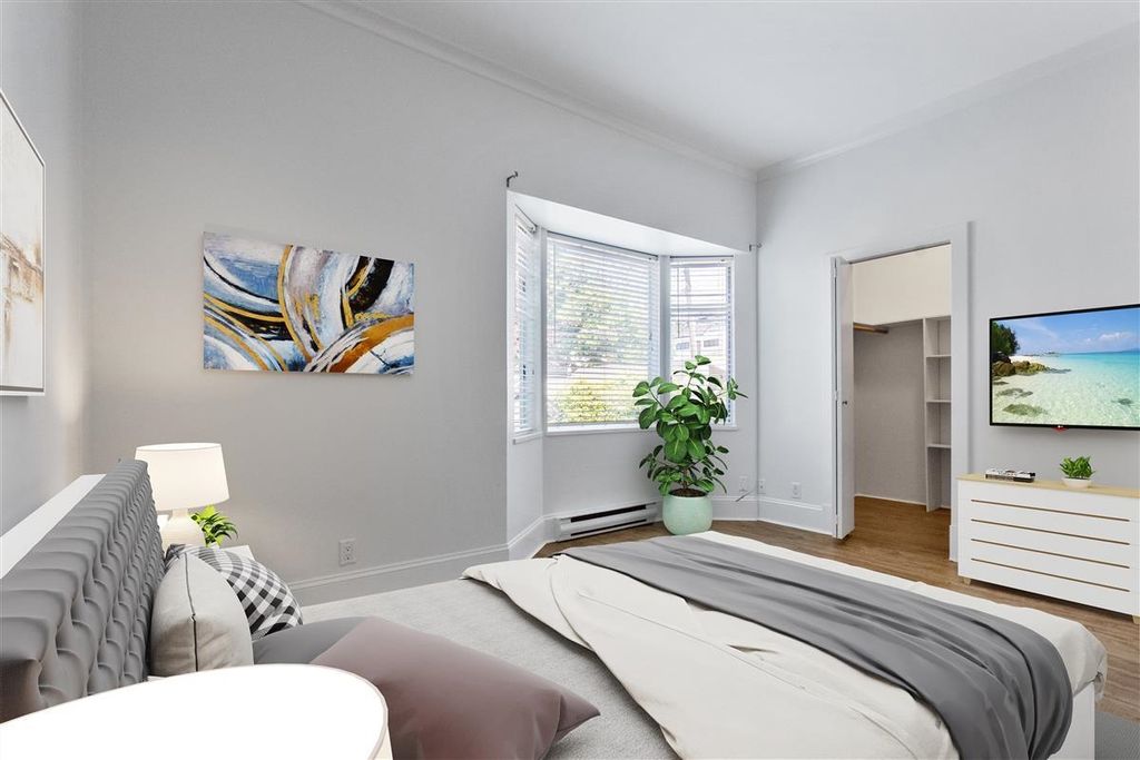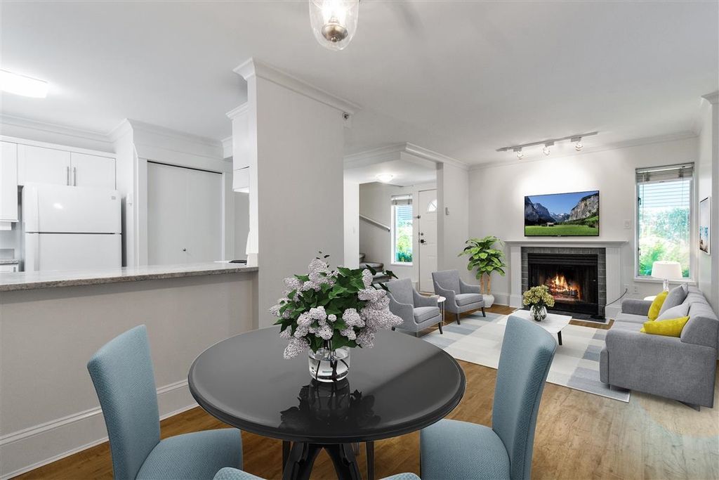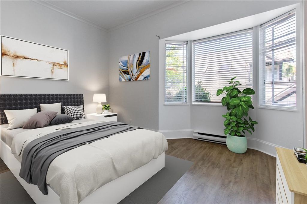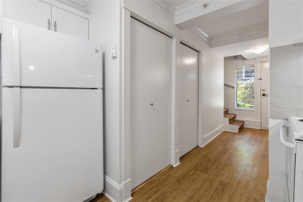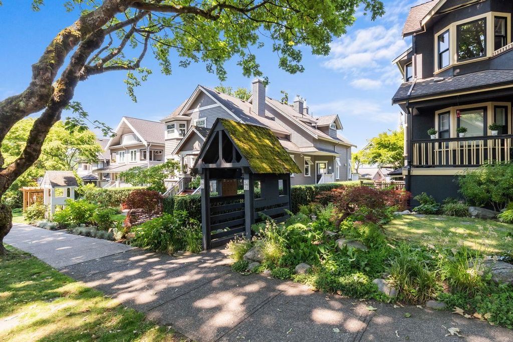 Beautiful 1901 Heritage conversion 2 level 2 bedroom townhome. Open main floor boasts spacious kitchen with loads of freshly painted cupboards, 152 sq ft patio off living & dining room & cozy wood fireplace. The 2nd floor features all new flooring, 10 ft ceilings, large master bedroom with bay window & large walk in closet, nice size 2nd bedroom & 4 piece bathroom. Crown mouldings & new paint thru out. This home is located on one of the most gorgeous tree lined streets in the Mount Pleasant neighborhood. Convenient to all amenities & steps to the Canada Line, schools, parks & trendy main street boutiques, shops & restaurants. Bonus 1 carport parking stall & shared secured storage. Quick possession available.