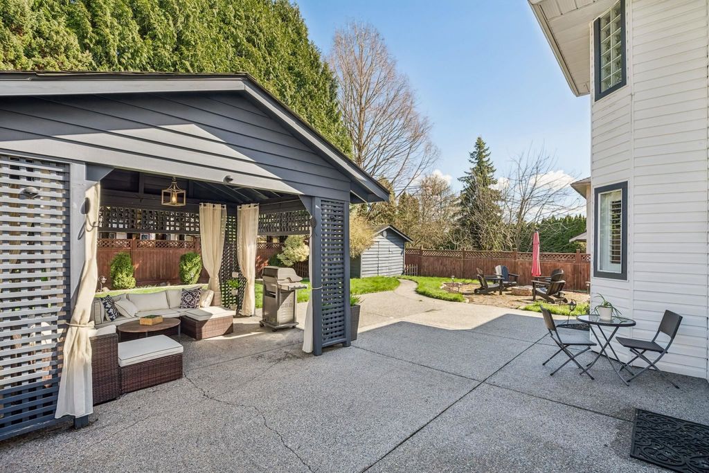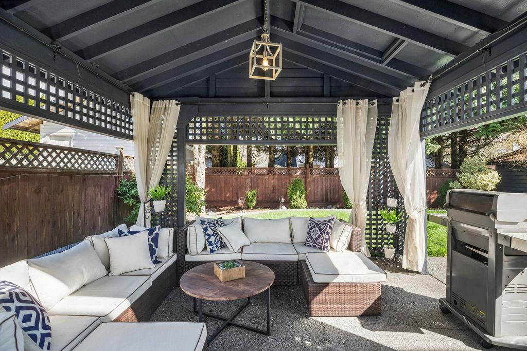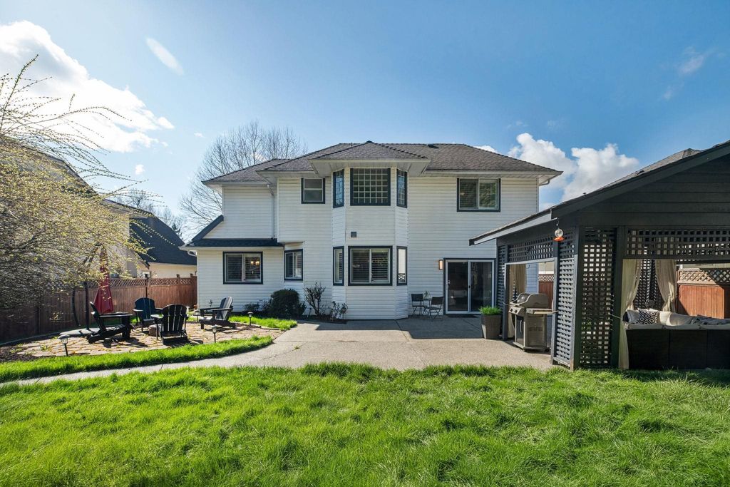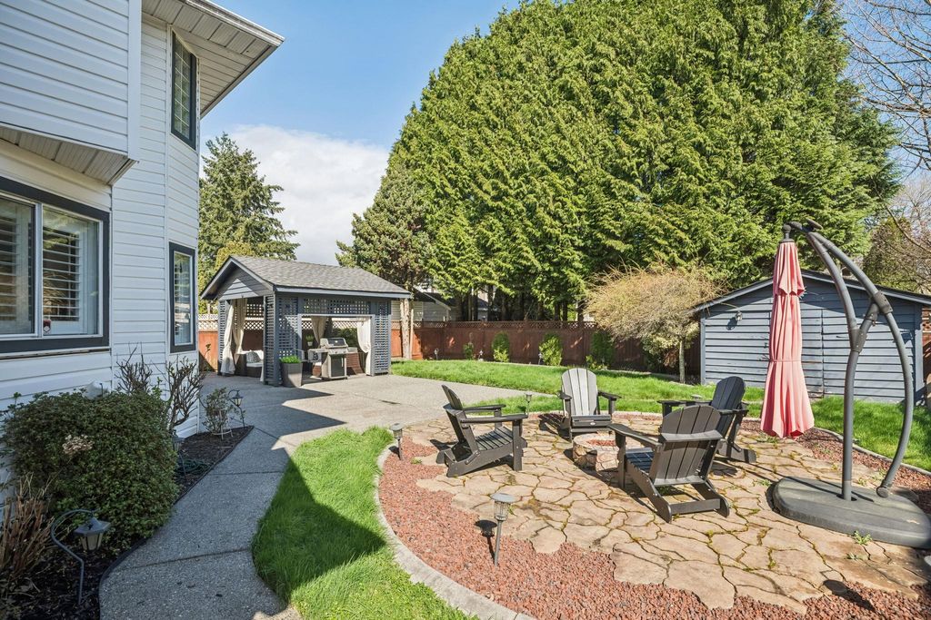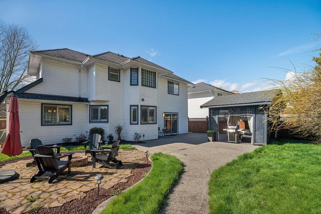 Welcome to Brookside — one of Bear Creek’s most family-friendly neighbourhoods. Proudly owner-occupied, this well-maintained home offers 4 bedrooms and multiple living spaces including a bright family room that opens directly to the backyard, ideal for growing families. The home features a functional kitchen overlooking the yard, while the foyer and formal living room impress with vaulted ceilings reaching over 16' creating a light-filled space. Step outside to a beautifully landscaped, private backyard with a large patio, gazebo lounge, firepit area, and lush green space, perfect for entertaining. Located just steps to Brookside Elementary and close to parks, transit, and amenities. Includes double garage with 220V EV charger. A move-in ready home in a location that truly delivers!