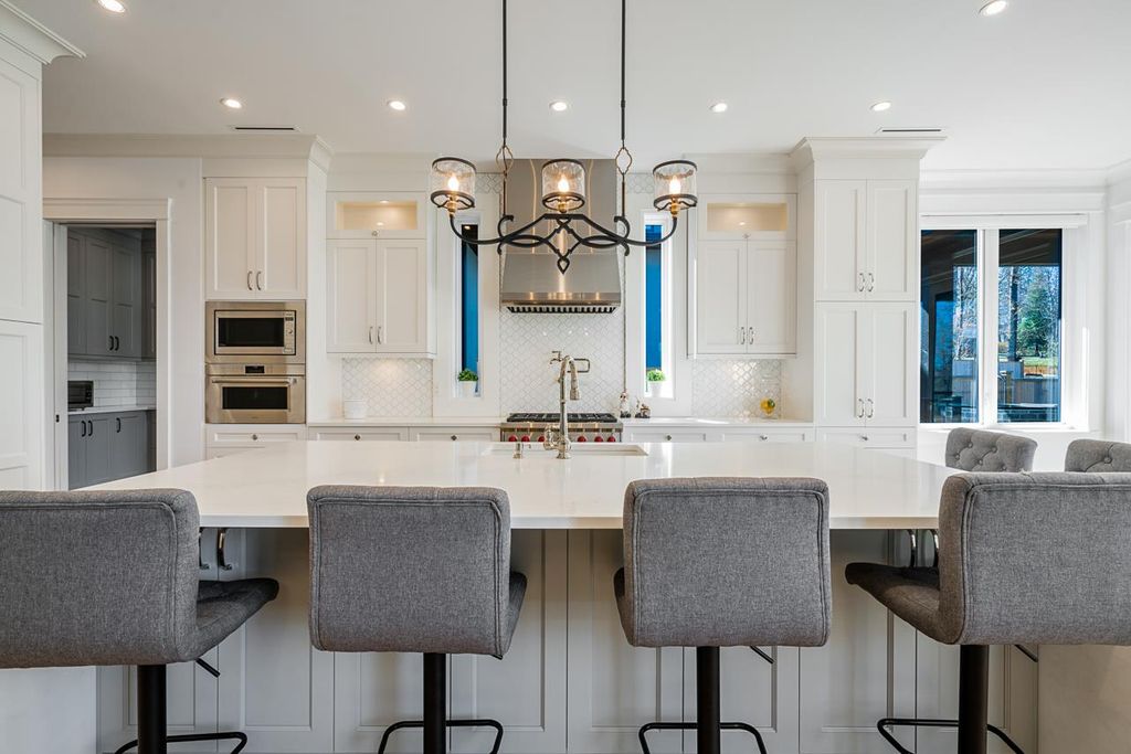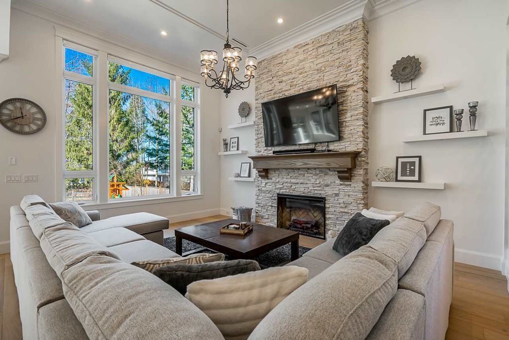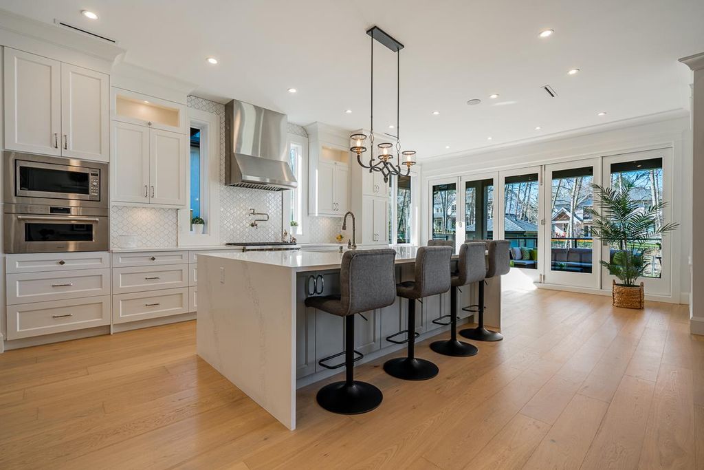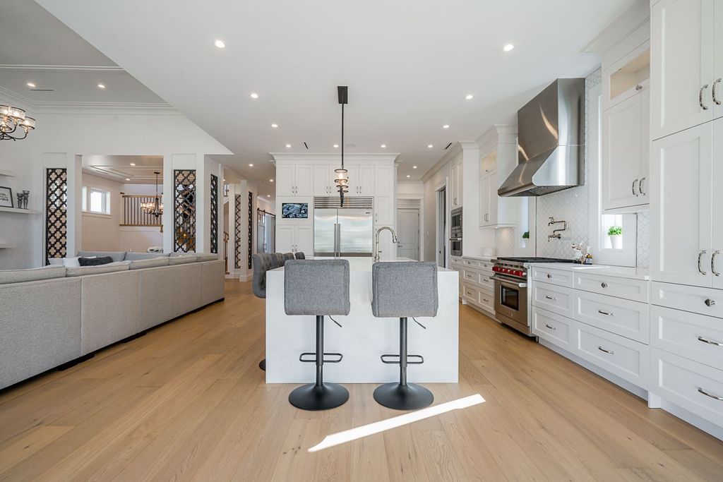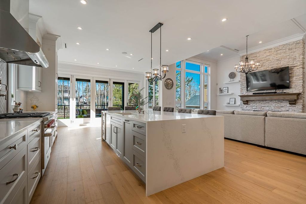 Every detail has been agonized over in this beautiful rustic Morgan View Estates home designed by Raymond Bonter. This home was made for building memories boasting a chef’s dream kitchen, spice kitchen, massive family island, huge family room off kitchen, a seamless indoor/outdoor living area, 1,000 sqft of deck/patio space, multiple outdoor fire pits/BBQ/outdoor kitchen/space heater, outdoor washroom w/shower, a truly elegant mudroom, full bar, gym, sauna, billiards room, walk-in wine cellar & so much more. Everything from the notches & grains in the hardwood to the stacked ivory stone fireplaces, to the polished nickel finishes, scream original design and quality. All this on a 10,000 sqft PRIVATE LOT which backs on to a greenbelt.