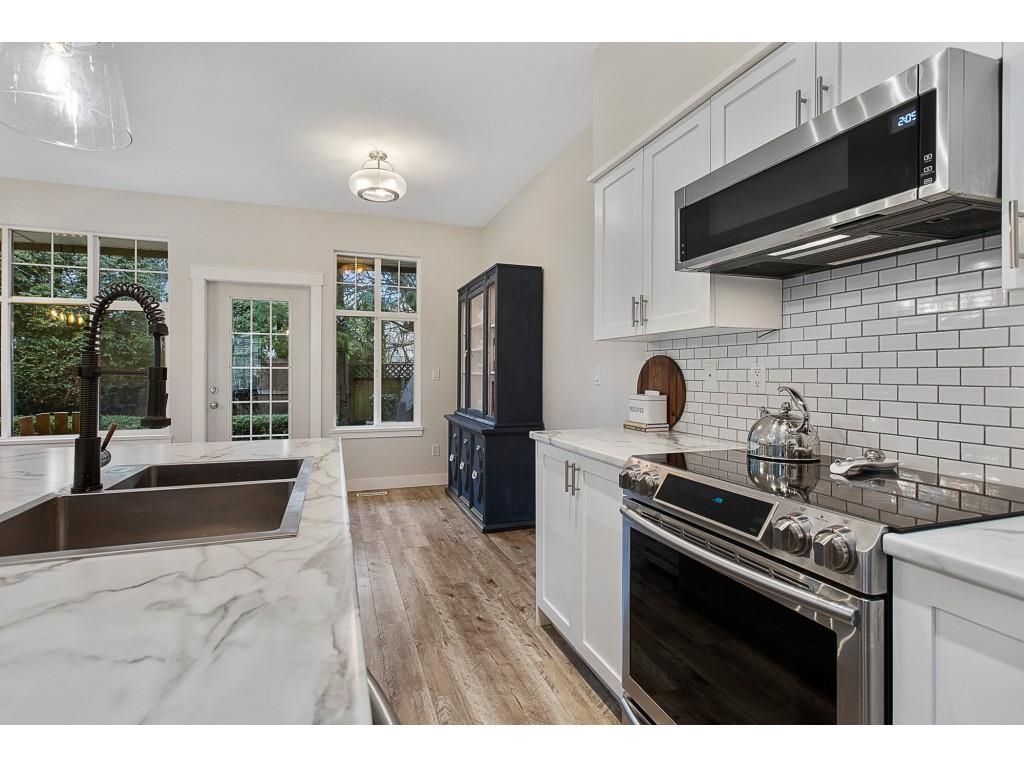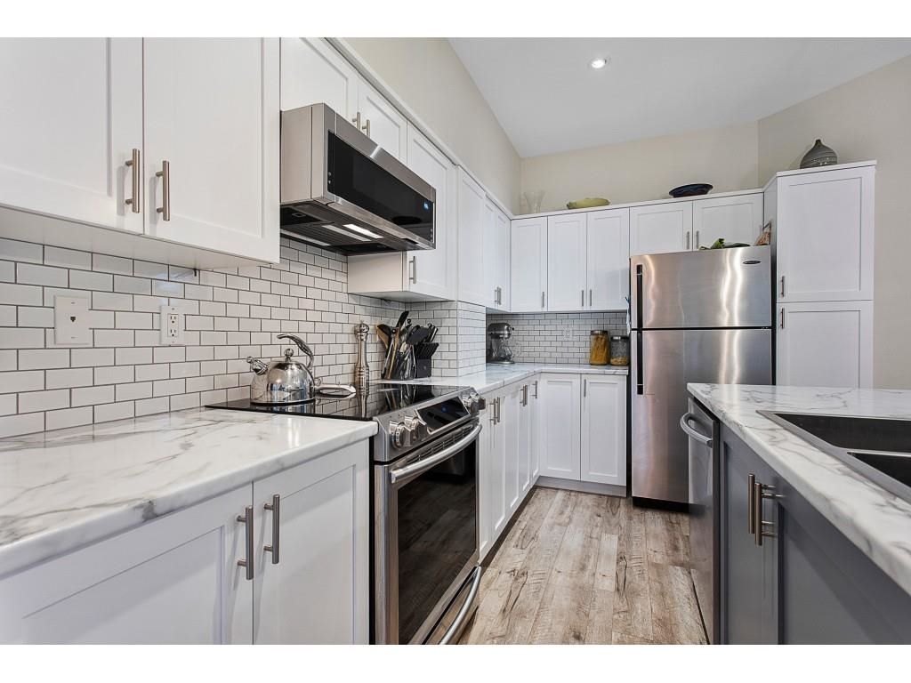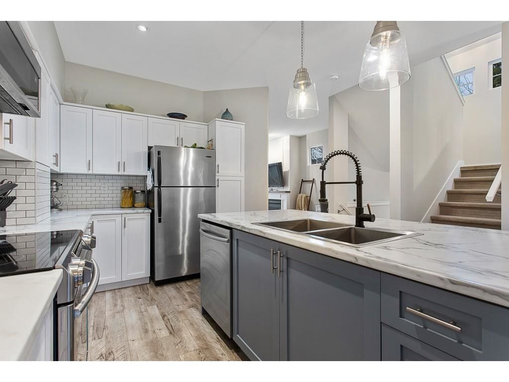 Welcome to the WESTFIELD! This is the BEST UNIT in one of the most desirable complexes. It has been fully updated top to bottom. It is the most private unit, with a large treed back yard with a huge patio. On the main you will find an open plan kitchen/eating area w/stainless appliances, walk out to your large private fenced yard, separate living & dining area with gas fireplace & a balcony. Upstairs there are 3 spacious bedrooms, 2 full bathrooms, and laundry. Rec room or 4th bedroom + storage room down w/full bathroom! Double side x side garage. Walking distance to Elementary School! Come out to the OPEN HOUSE!