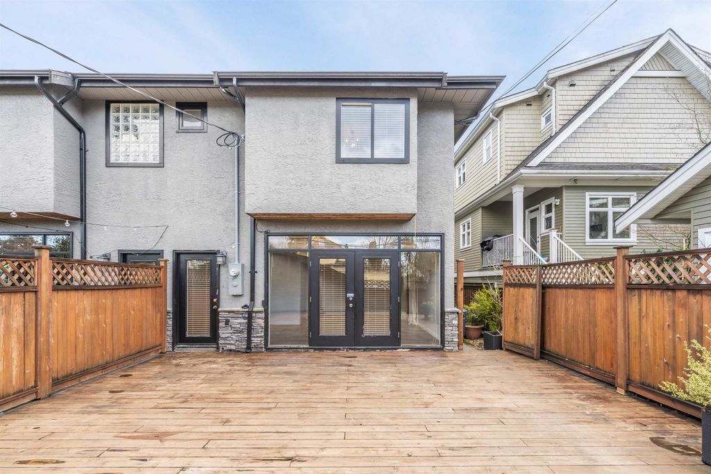 Rare 1/2 duplex with 5 bedrooms/3 full bathrooms for a growing family. Potential in-law suite can be self-contained. Sunny, southeast-facing front yard and entertainment-sized(565 sq. ft)backyard patio, perfect for pet-owners, gardeners, summer barbecues. Bright high-ceiling foyer with skylights. Property contains 2 kitchens with updated appliances for the gourmet cook. Steps to Mt. Pleasant Park, Cambie Village and Main Street shops and restaurants, walking distance to Broadway or King Edward Canada Line Stations. Great investment!