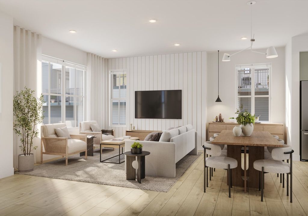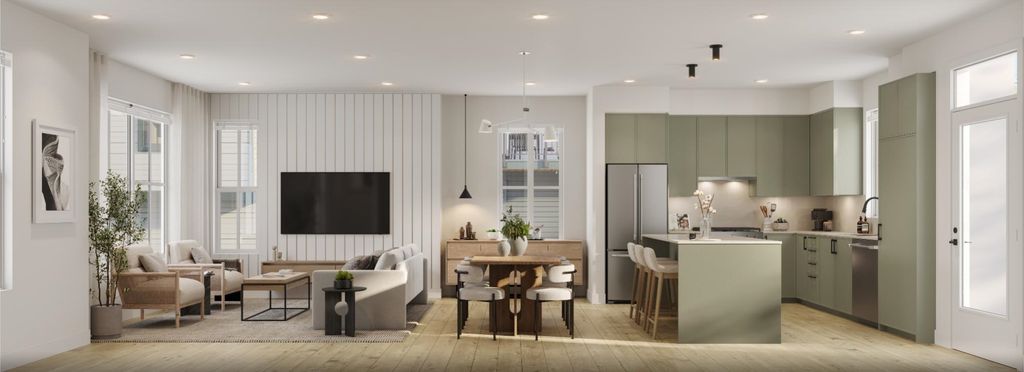 MOVE-IN READY at LATIMER WALK by award-winning Zenterra Developments. This bright, modern 3-bedroom home features a stylish kitchen with a full KitchenAid appliance package, ideal for everyday living and entertaining. Enjoy laminate flooring throughout, air conditioning, forced-air gas heating, and hot water on demand for year-round comfort. This south/east/north-facing corner home backs onto a 5m greenbelt and includes a spacious fenced backyard. Additional features include a BBQ gas hookup, garburator, and built-in wood closet organizers. Show home open Saturday–Wednesday, 12–5 PM BY APPOINTMENT ONLY.