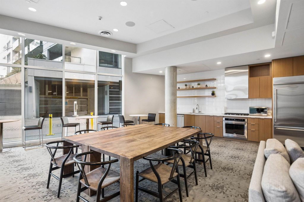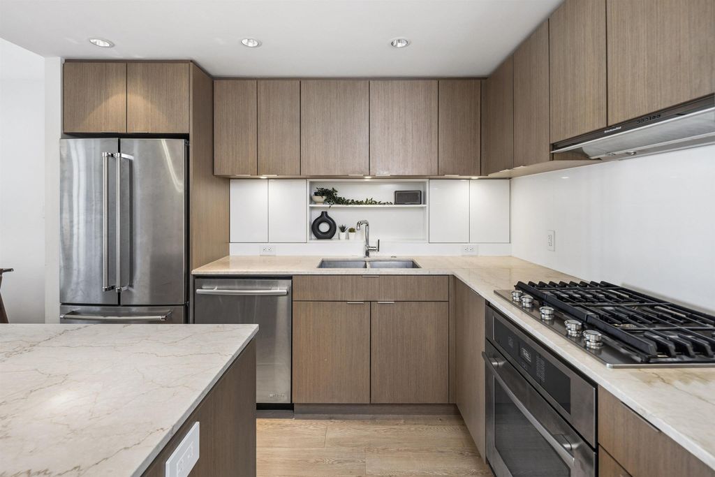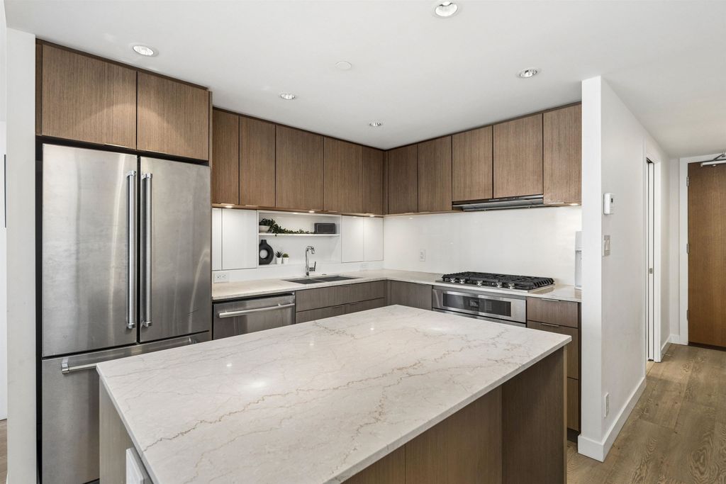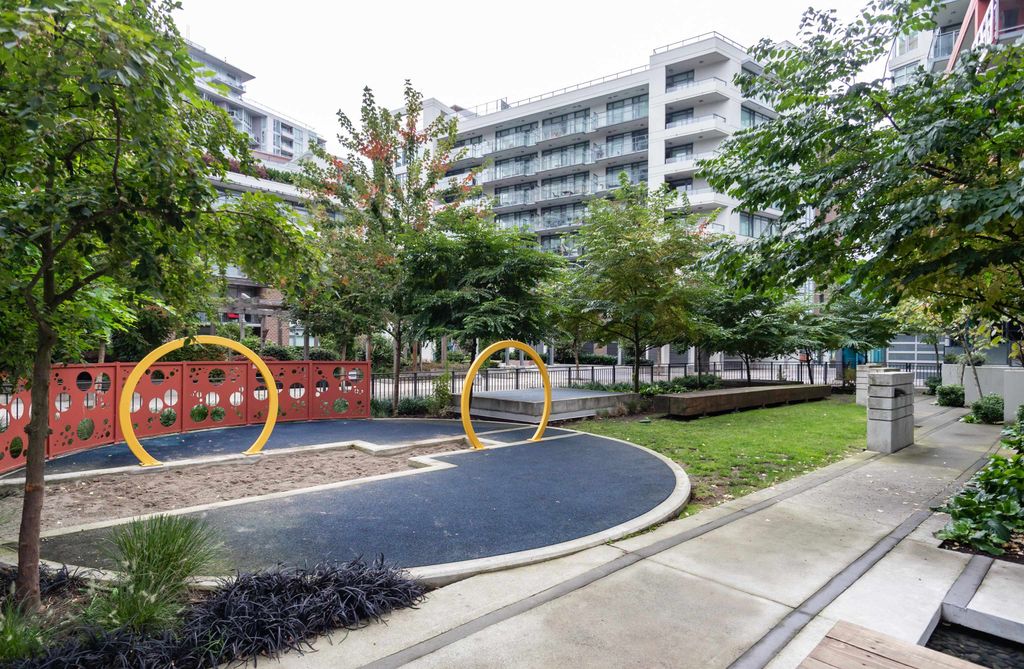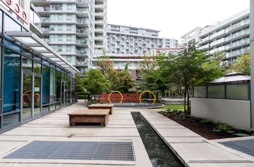 Welcome to Block 100 in the heart of Olympic Village, with some of the BEST amenities in the city right at your doorstep—dining, entertainment, shopping, transit, and amazing views of False Creek and Downtown. PERFECTLY LAID OUT HOME features 2 bed, 2 bath + DEN and open office space sits on a 12th high floor, featuring an open-concept layout with no wasted space! AIR-CONDITIONED BUILDING. The chef’s kitchen- marble countertops and premium KitchenAid appliances, 5 gas-burner stove, large island. Spacious bedrooms offer full closet organizers. Includes with EV 1 parking and 1 storage locker.