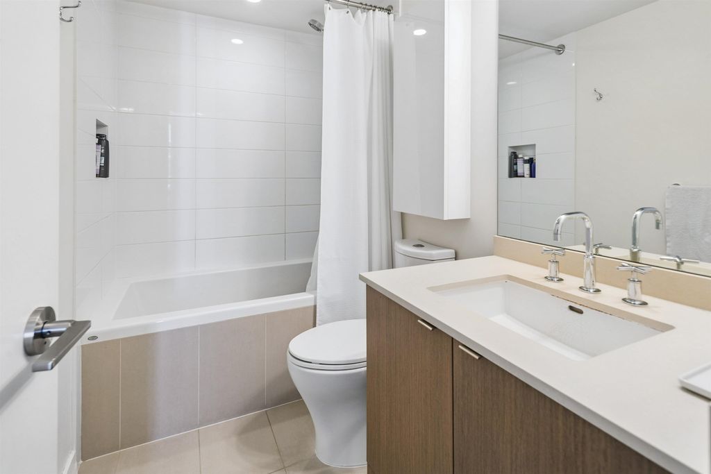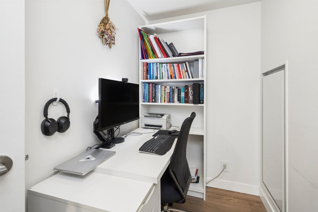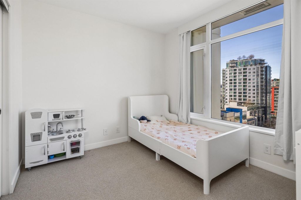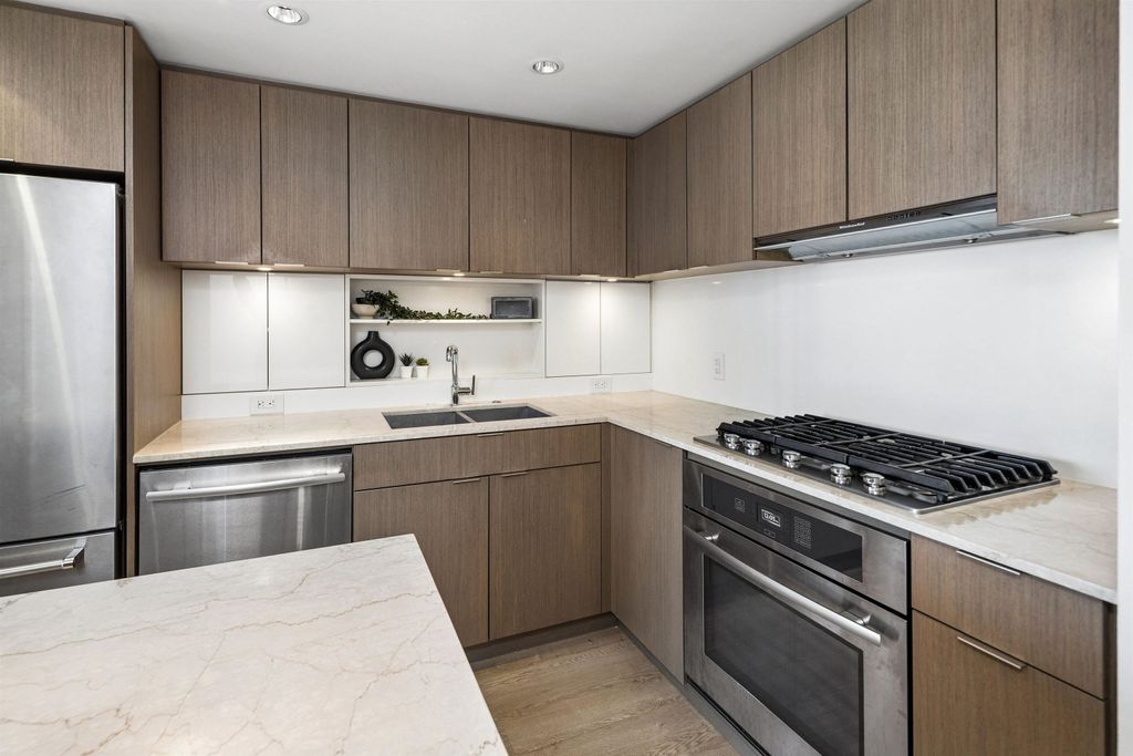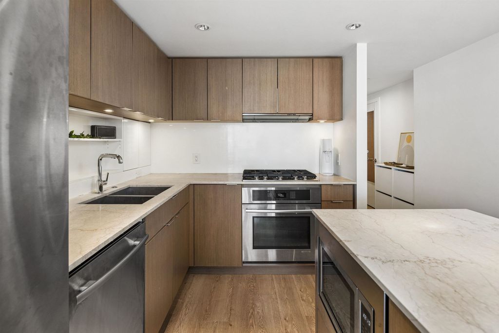 Welcome to Block 100 in the heart of Olympic Village, with some of the BEST amenities in the city right at your doorstep—dining, entertainment, shopping, transit, and amazing views of False Creek and Downtown. PERFECTLY LAID OUT HOME features 2 bed, 2 bath + DEN and open office space sits on a 12th high floor, featuring an open-concept layout with no wasted space! AIR-CONDITIONED BUILDING. The chef’s kitchen- marble countertops and premium KitchenAid appliances, 5 gas-burner stove, large island. Spacious bedrooms offer full closet organizers. Includes with EV 1 parking and 1 storage locker.