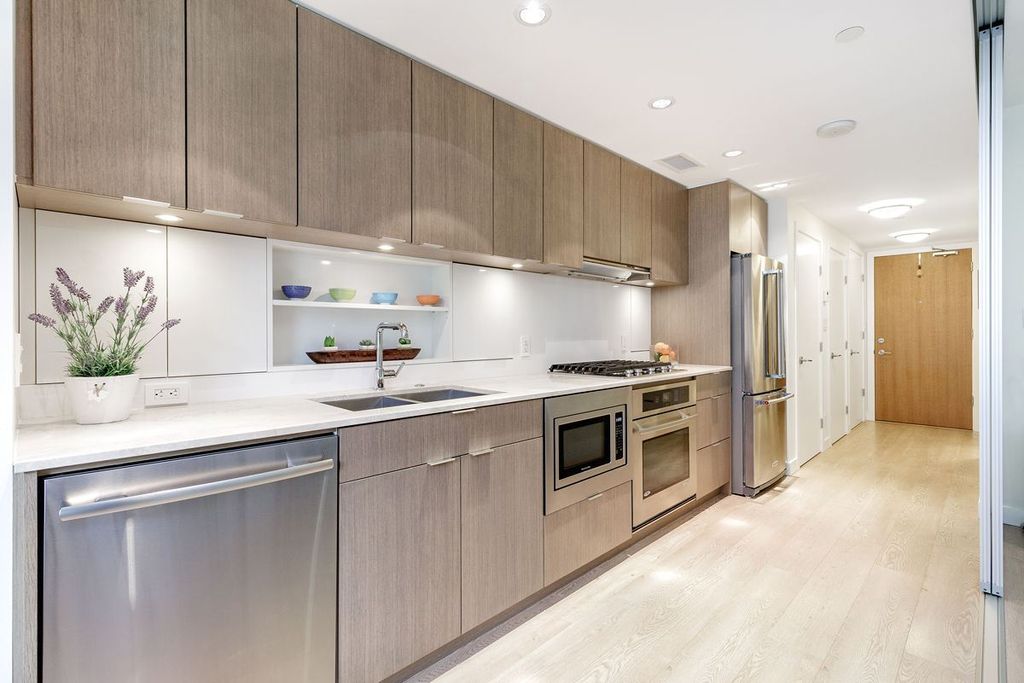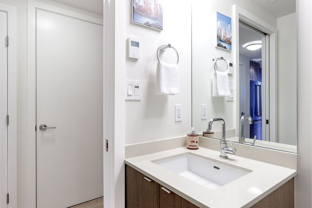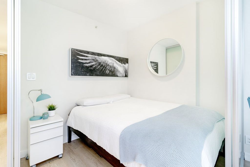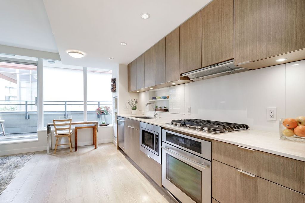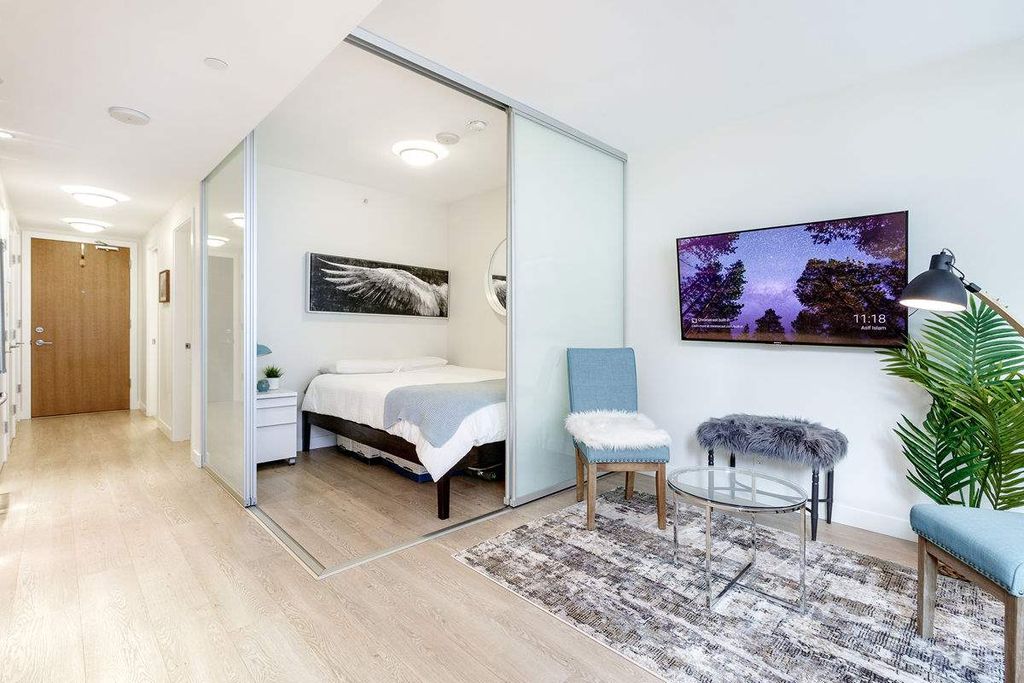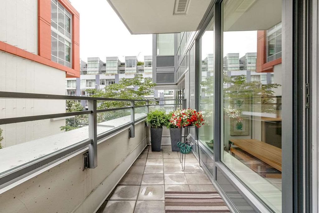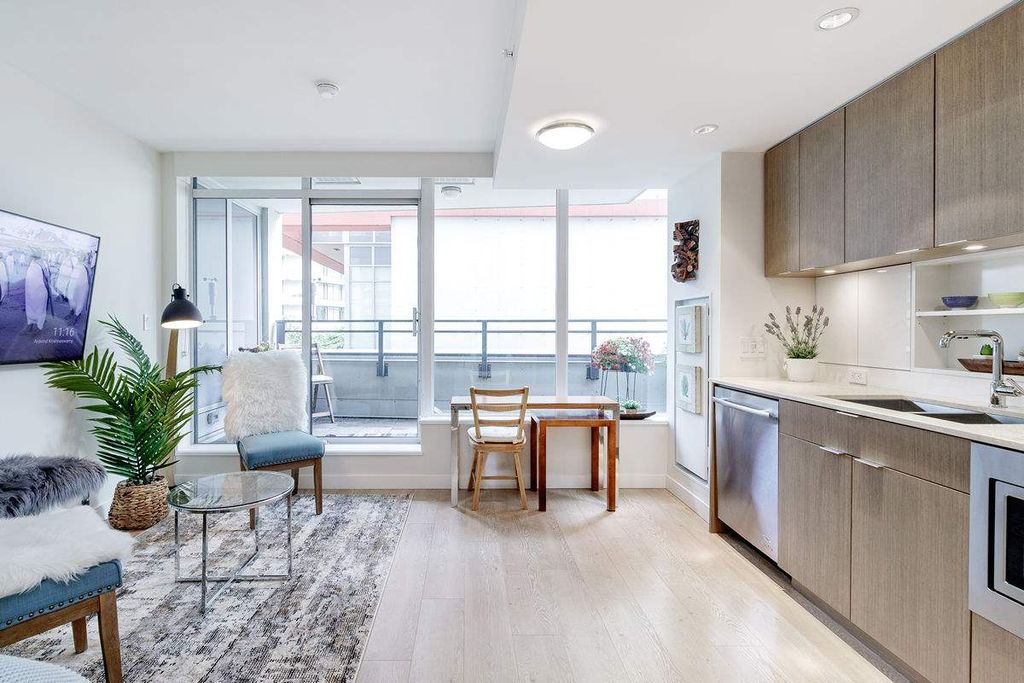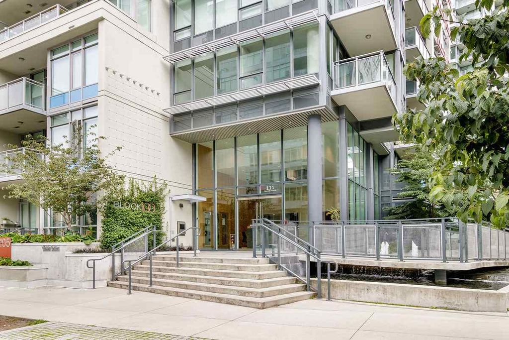 Located in the desirable West Tower of Block 100, facing a quiet garden with fountain, this open-concept 1 Bed & Den contains parking, storage & a covered balcony. Quality-build by Onni nearby Olympic Village/Main St. Canada Line & Skytrain; easy access to Chinatown, Gastown, downtown & more! Home features linear kitchen with quartz counters, Kitchen-Aid appliances, gas stove, radiant heated bathroom floors, central AC & heating; queen bed, bathtub, and full size laundry. Balcony features water hose and direct gas line for BBQ! Very well-equipped gym, concierge, solarium, rooftop gardens, & multiple meeting/party rooms! Perfect for first time buyers or investors seeking high demand area, especially with parking incl. Rentals/short term rentals (AirBnb), are allowed. Easy to show!