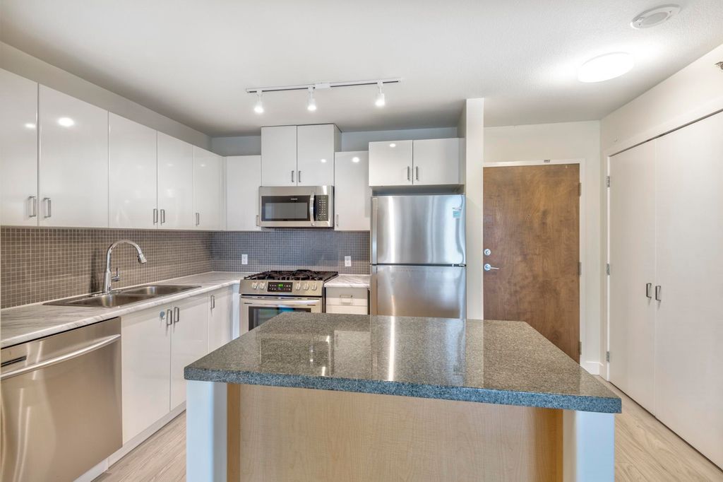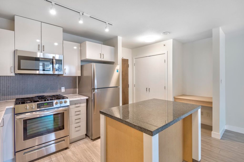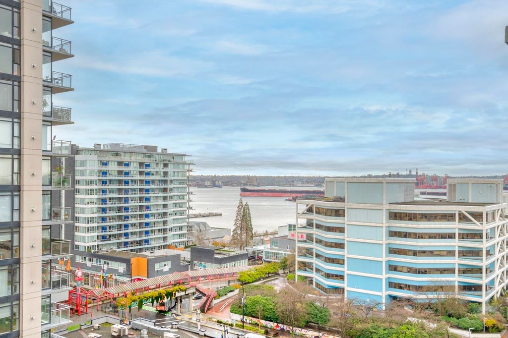 Discover this stunning SE-facing 1-bed suite at The Time Building. Open concept layout w/ laminate flooring throughout, this home offers a modern lifestyle w/ premium features. The kitchen offers a new gas stove and a large island perfect for entertaining. Cozy up by the gas fireplace or step out onto the spacious patio to take in breathtaking water views that stretch from your living room to your bedroom. This unit also includes Miele in-suite laundry and a built-in office nook, blending practicality w/ style. Secure parking and storage locker, it’s a perfect combination of convenience and elegance. Situated just steps from the vibrant Shipyards District, Lonsdale Quay, restaurants, cafes, shops, and the SeaBus, this unbeatable location offers an unparalleled urban lifestyle. Call Today!