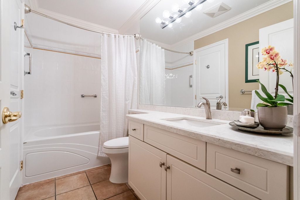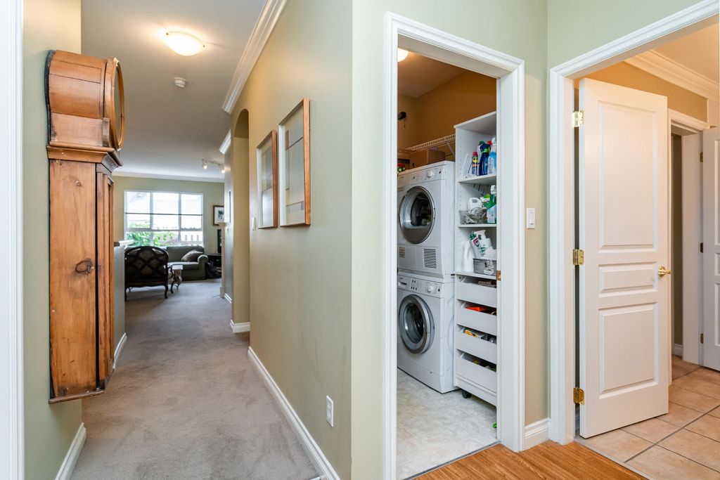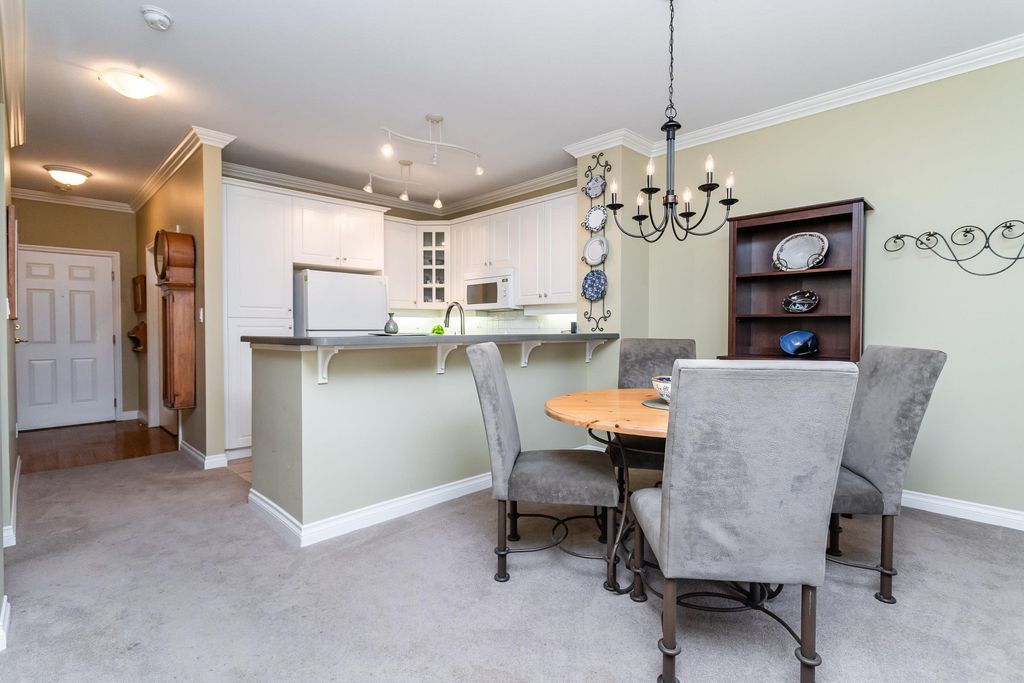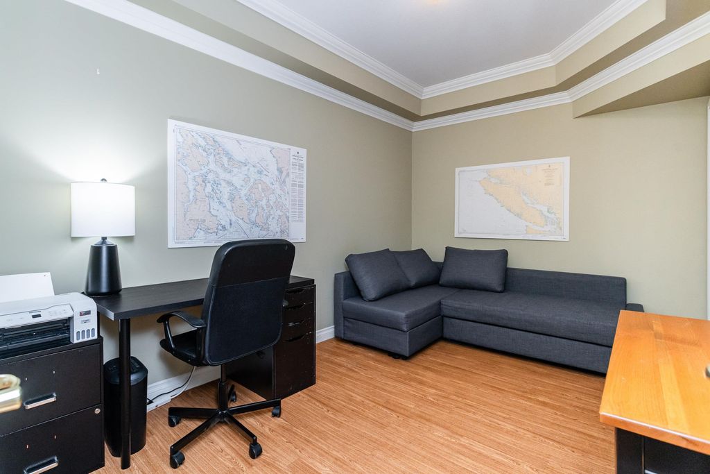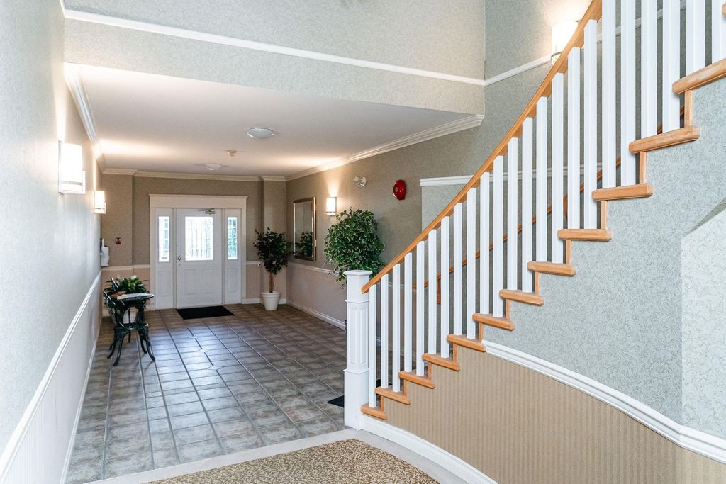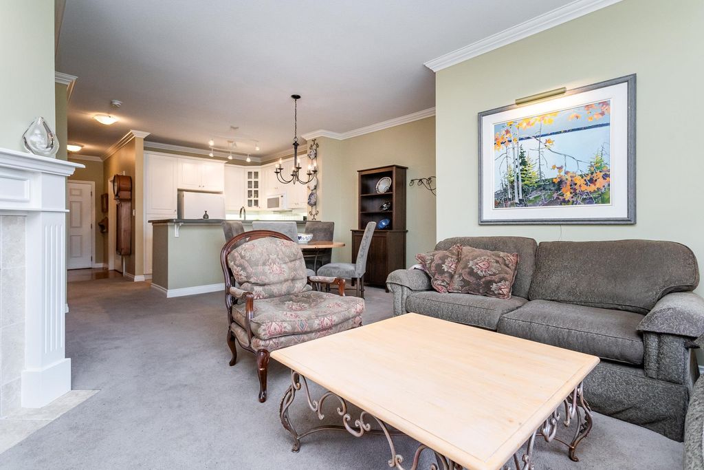 Rarely available unit in Highgrove Manor! This warm & lovely 1-bed & den (or 2-bed), 1000+ sq ft, GROUND floor condo is located inside the Manor building & within the peaceful, safe & beautifully-landscaped townhome complex. The unit features a spacious covered patio w/private west-facing garden area that comes alive in Spring! The white kitchen has updated stone counters, an undermount sink & new faucet. Oversized primary bedroom w/big windows. Spacious den - easily 2nd bedroom with double glass french doors. Live confidently - Highgrove II is a 55+ complex where neighbours go for leisurely walks & keep a helpful eye out for their neighbours. TWO side by side parking stalls underground, & an oversized storage locker.