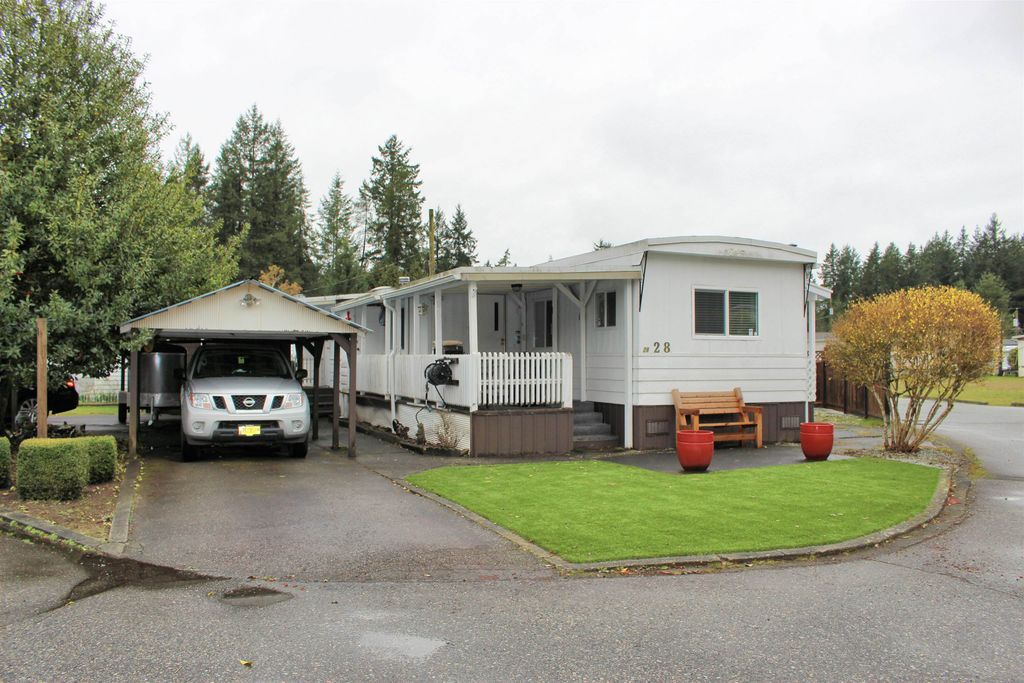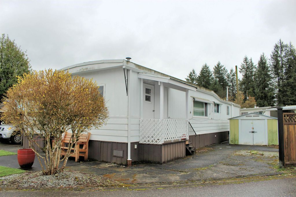 CEDAR CREEK, 55+ age restricted manufactured home park: Spacious single wide with push outs, 2 bedrooms & family room, located in quiet, well managed park. Feels like you are out in the country, but within a few minutes drive to downtown Langley, Willowbrook Mall or a short walk to the bus stop. Want to downsize but have too many toys? This unit has ample parking for a boat, trailer, or RV. Pad rent is only $638 per month & includes the land portion of the property taxes, garbage pick up, sewer and water. One small pet ok. Grand kids can visit, but not live there.