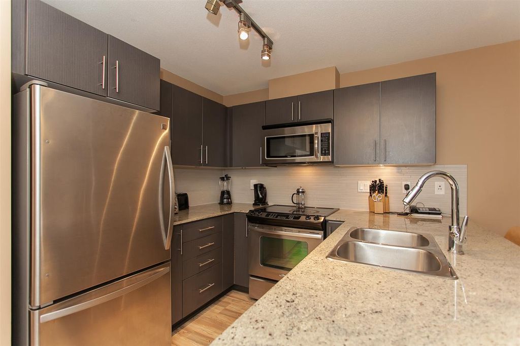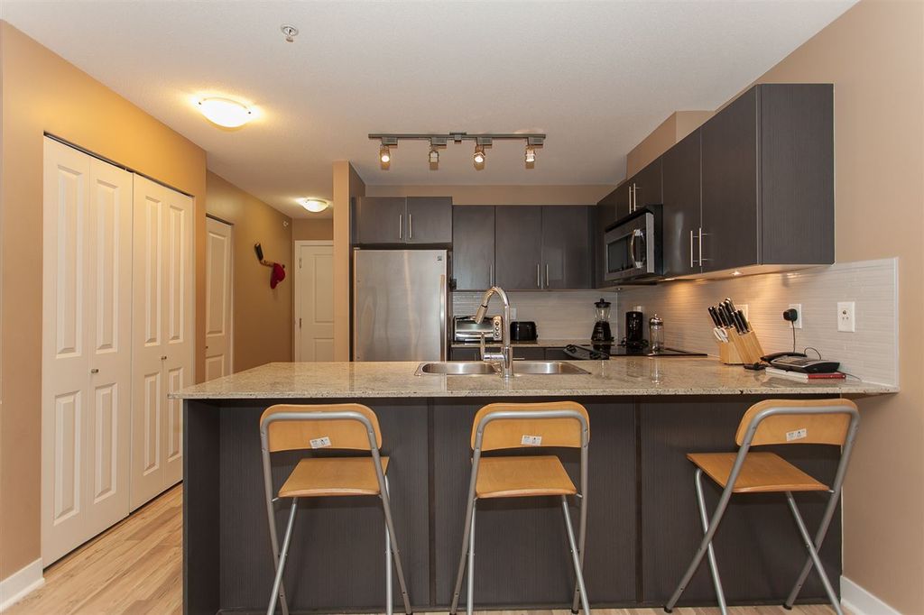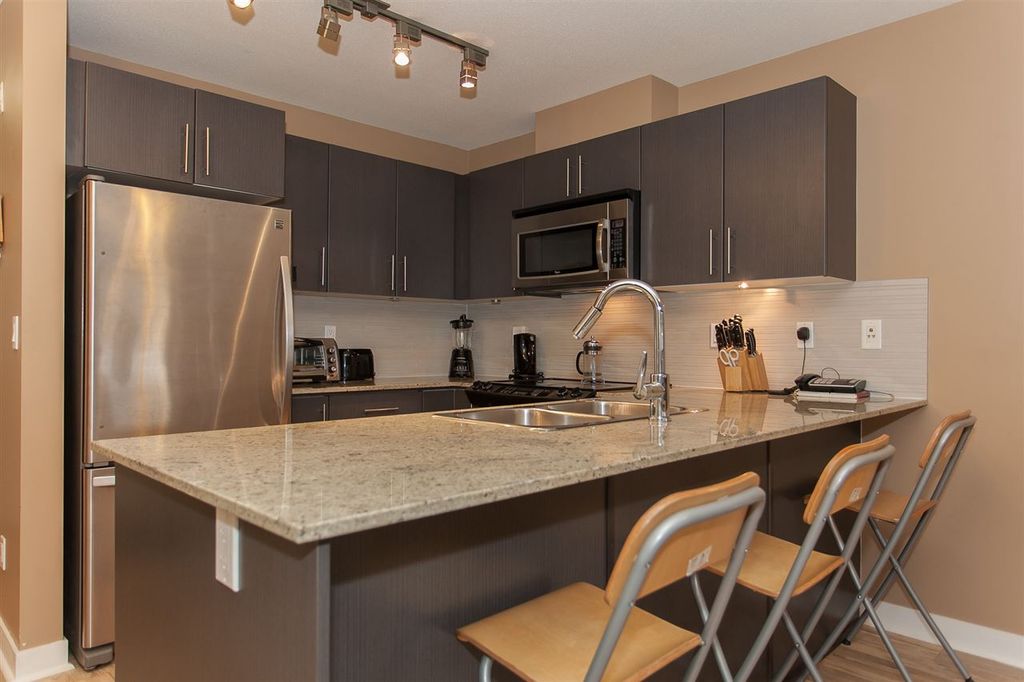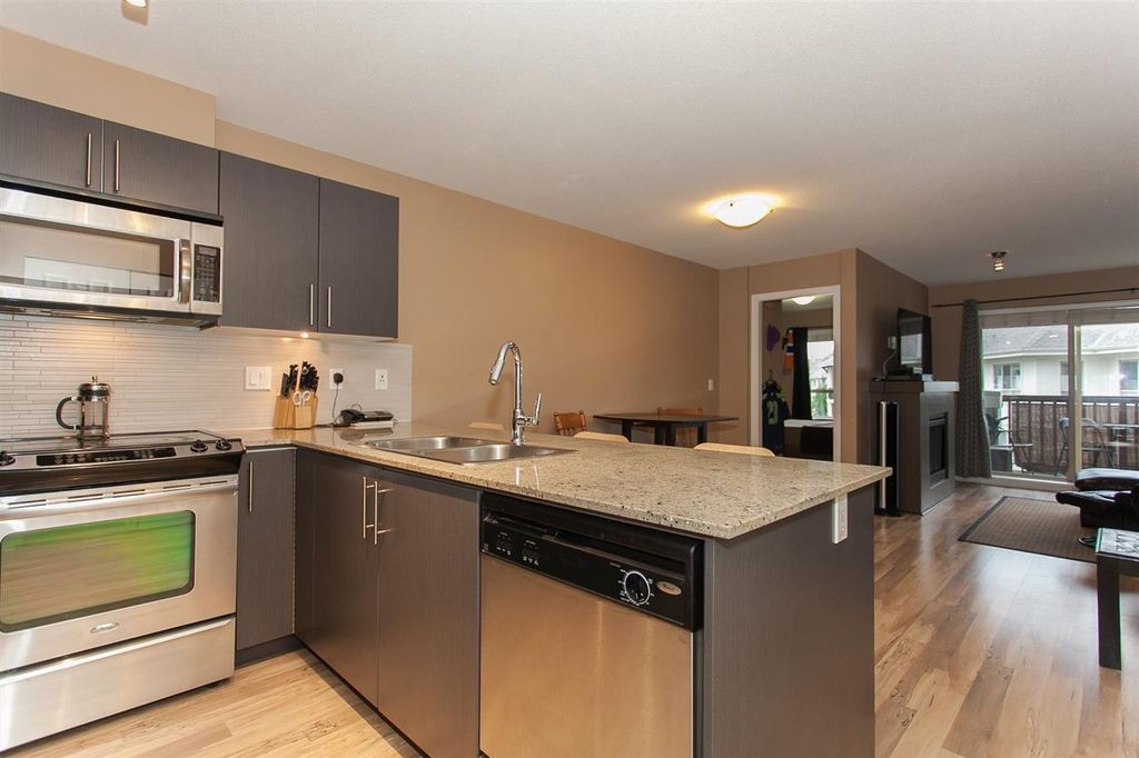 Welcome to the prestigious "Hawthorne" complex built by Marcon in the heart of Walnut Grove! This TOP FLOOR 2 bed/ 2 bath unit has an open concept layout and bedrooms on opposite sides. The unit has lots of natural light and is equipped with stainless steel appliances, granite counter tops, breakfast bar, cozy electric fireplace, laminate flooring, ensuite in the master bedroom. Perfect to enjoy the sunset from the nice spacious balcony facing west. The complex is conveniently located right next to Hwy 1, shopping plaza, restaurants, movie theater and recreation. OPEN HOUSE Sat & Sun Apr 21, 22, 1-3.