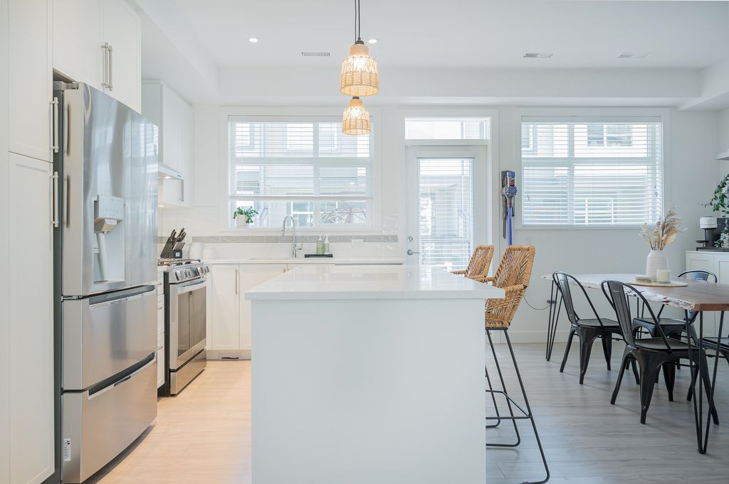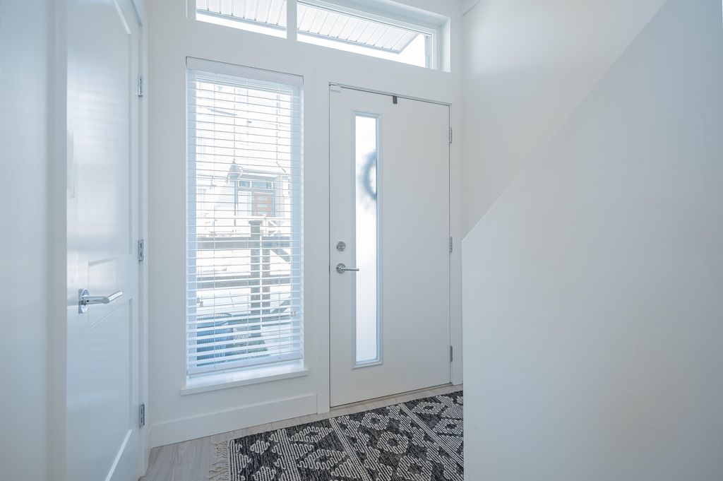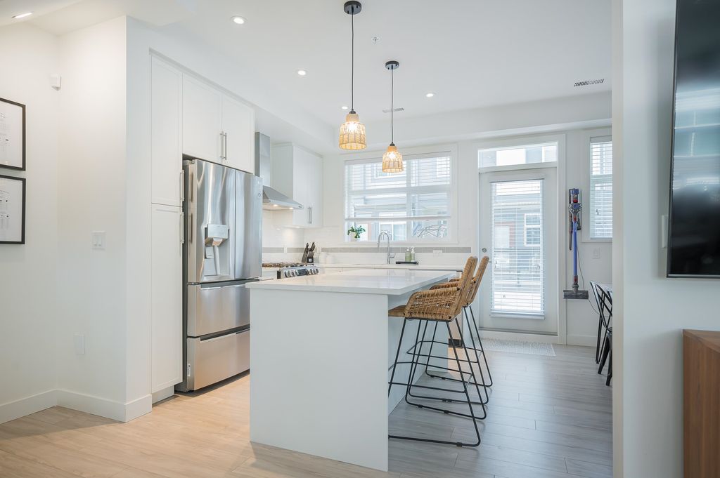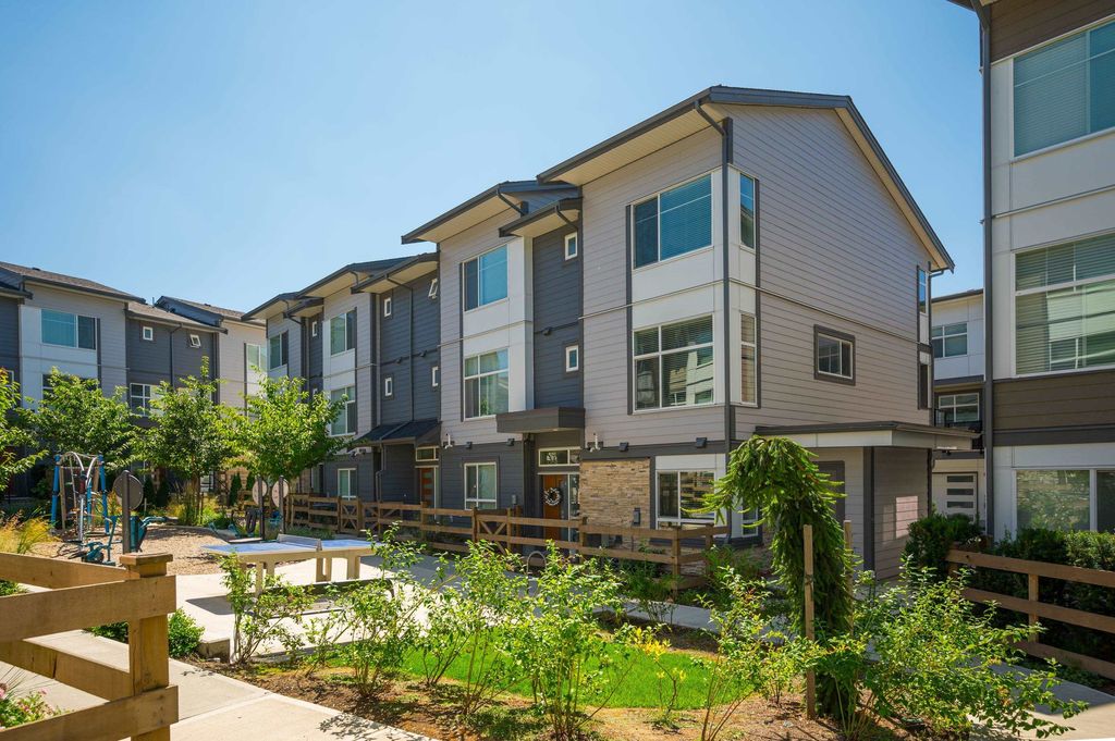 Step into this bright and spacious corner unit townhome, ideally situated in the heart of Langleys most up and coming area. Boasting over 1,600 sqft of living space with a double car garage and AC. This townhome features an open concept living and dining area with a well appointed kitchen complete with stainless steel appliances, granite countertops and a generous island. Off the main floor you can enjoy a spanning outdoor patio for dining or relaxing. Upstairs you will find 3 bedrooms, the primary suite equipped with a full tub and shower. The basement includes an extra 4th bedroom and two piece bath, perfect for guests, family or home sharing. This townhome is perfectly placed for walking distance to in catchment schools, local shops and restaurants.