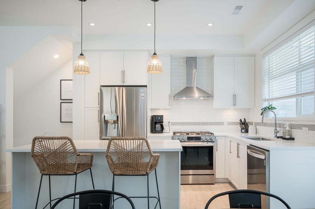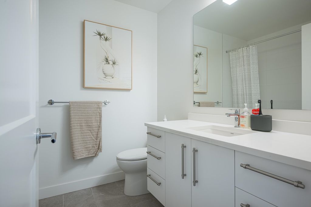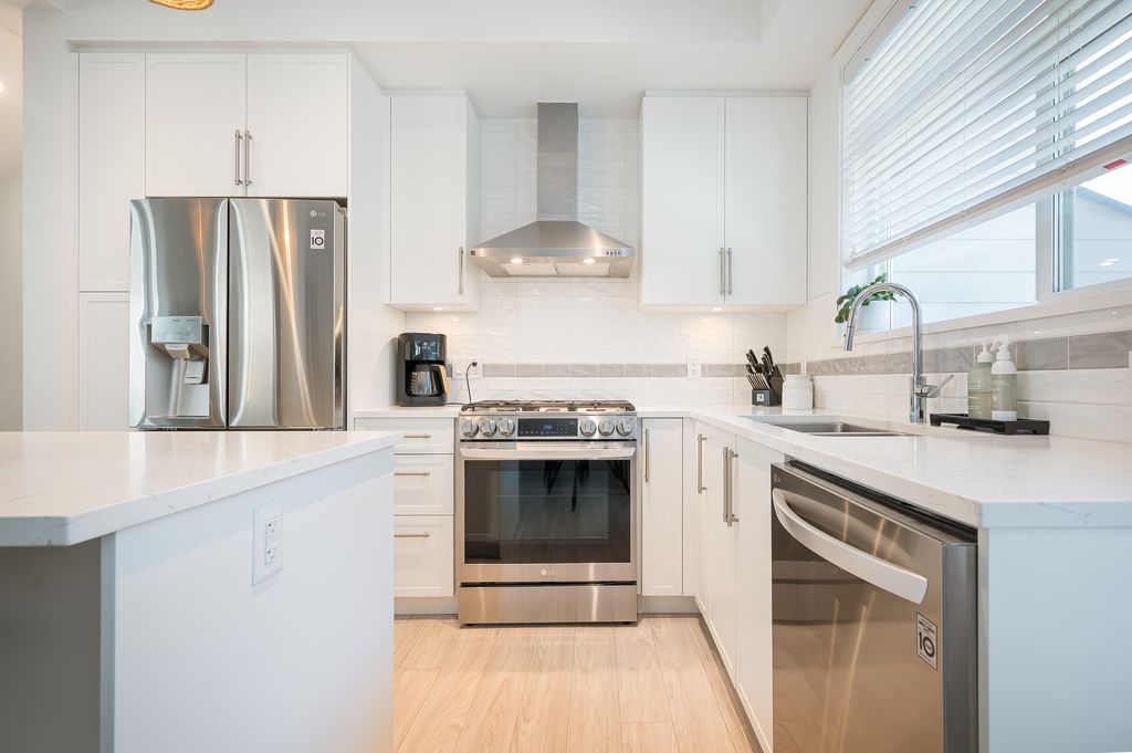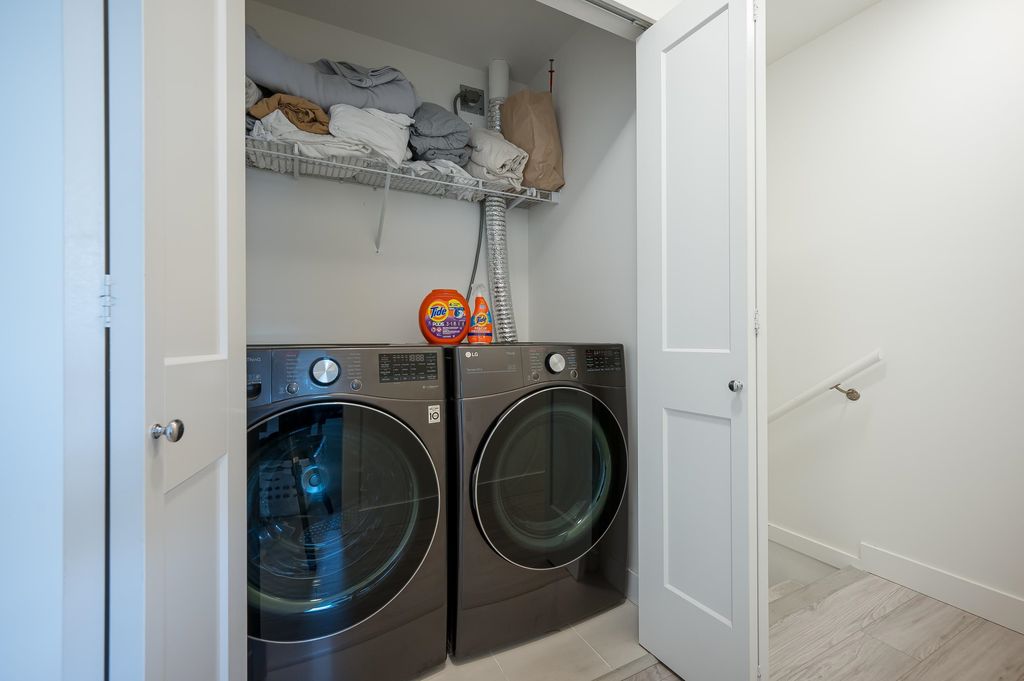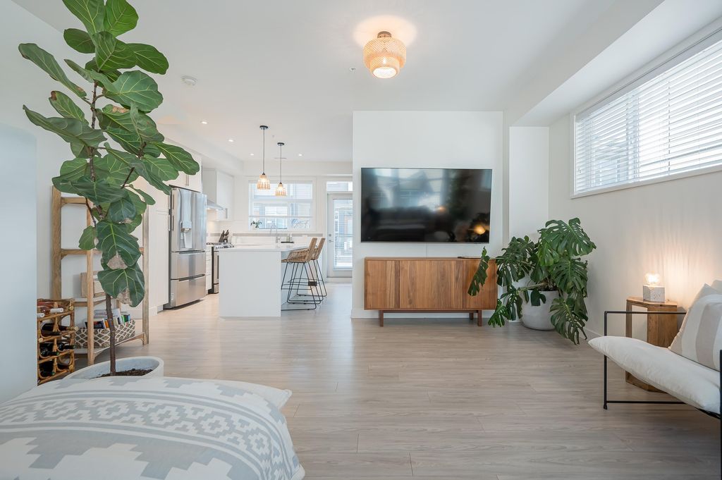 Step into this bright and spacious corner unit townhome, ideally situated in the heart of Langleys most up and coming area. Boasting over 1,600 sqft of living space with a double car garage and AC. This townhome features an open concept living and dining area with a well appointed kitchen complete with stainless steel appliances, granite countertops and a generous island. Off the main floor you can enjoy a spanning outdoor patio for dining or relaxing. Upstairs you will find 3 bedrooms, the primary suite equipped with a full tub and shower. The basement includes an extra 4th bedroom and two piece bath, perfect for guests, family or home sharing. This townhome is perfectly placed for walking distance to in catchment schools, local shops and restaurants.