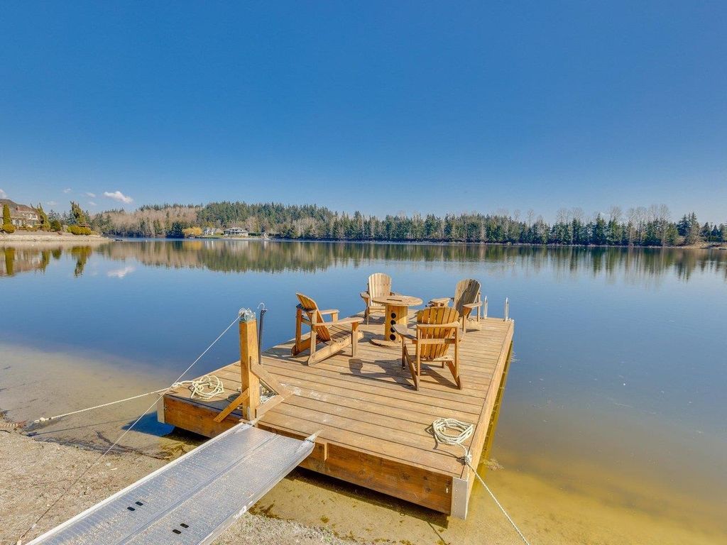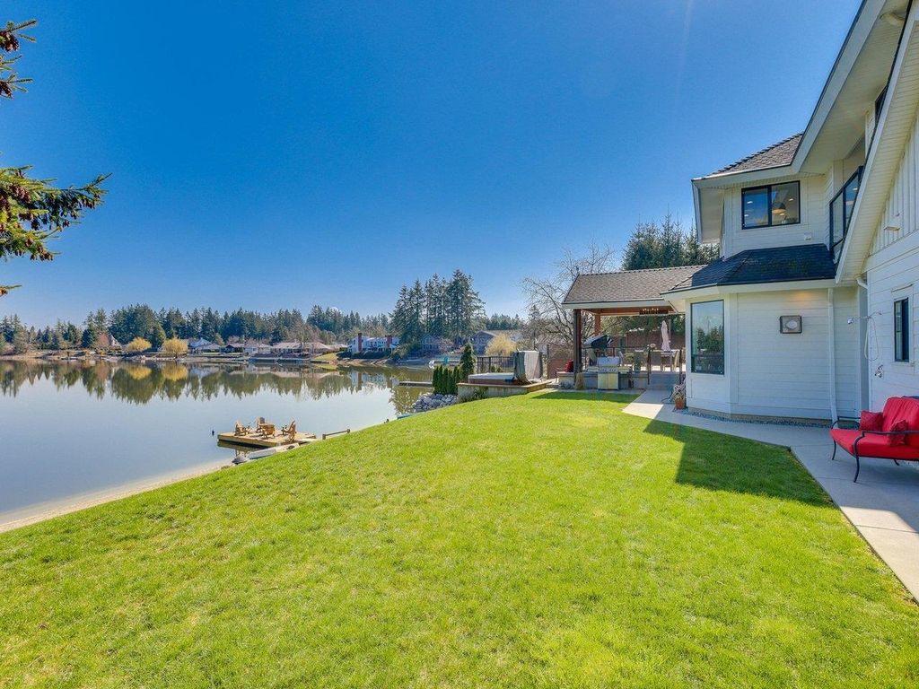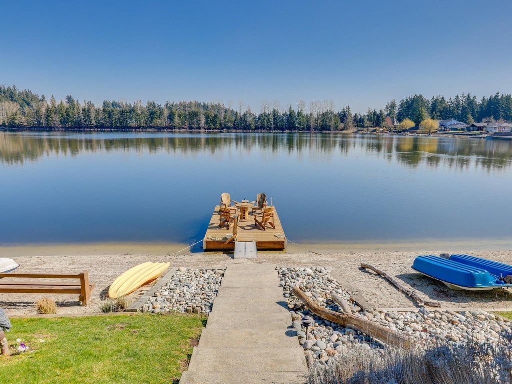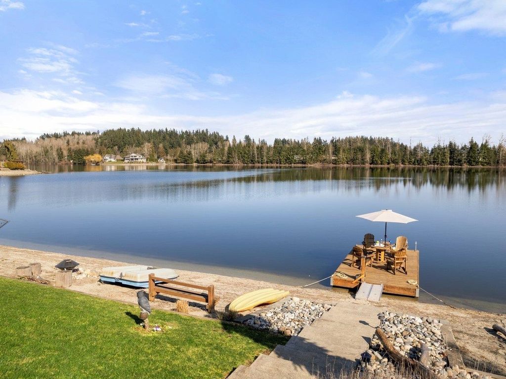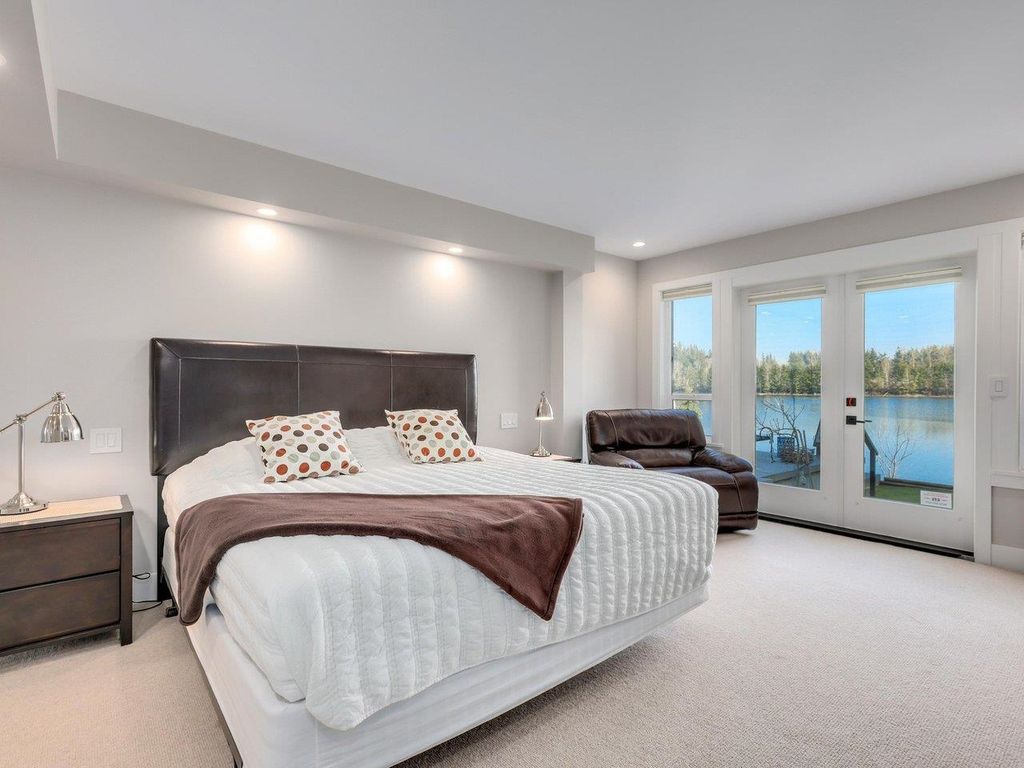 SUNRISE LAKE! Welcome to this 2 acres ultimate secluded Lakefront Home with Spectacular Water Views on 2 levels and 147 feet of private Sand Beach. This gated fully renovated Modern Farmhouse features 2 primary bedrooms & 1 bedroom legal suite, all with breathtaking views. The Gourmet Chef's Kitchen offers incredible water view, THERMADOR high-end appliances, oversized island. Other luxury features include top-to-floor windows, heated tiles, barn doors, wet bar, Steam room / Outdoor shower, motorized dock, Generator, A/C, 4 car garage plus ample parking space. Over 1,400 sq.ft outdoor living space with outdoor dining, hot tub, BBQ, fire pit, heater, speakers, perfect for friends and family gatherings. Crystal CLEAN SPRING-FED lake with activities including fishing, boating and swimming.
