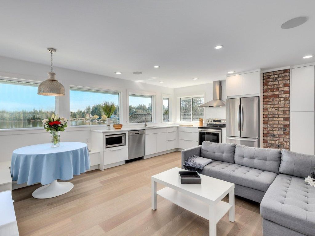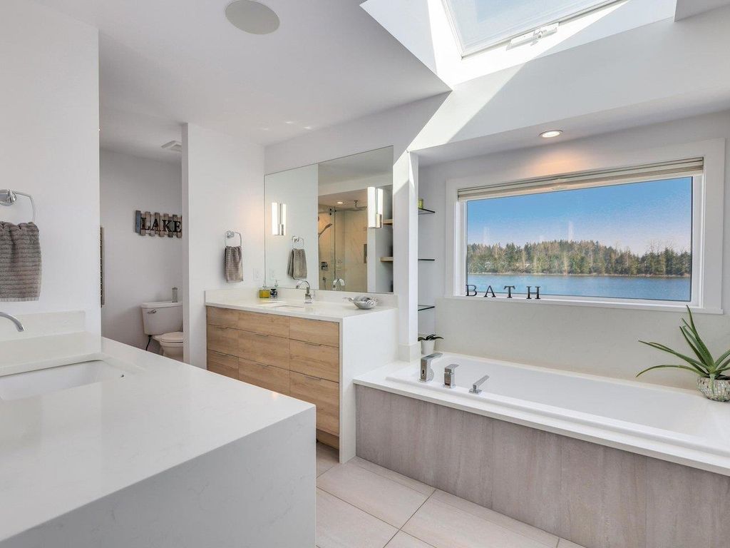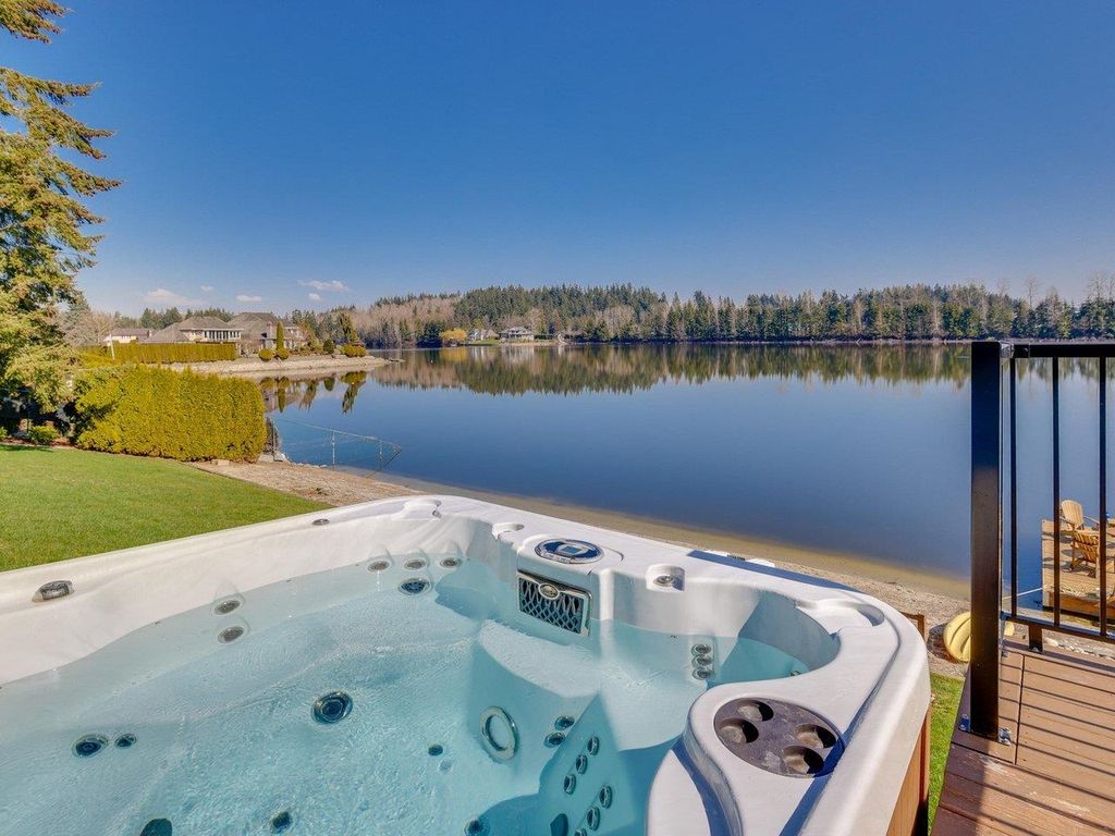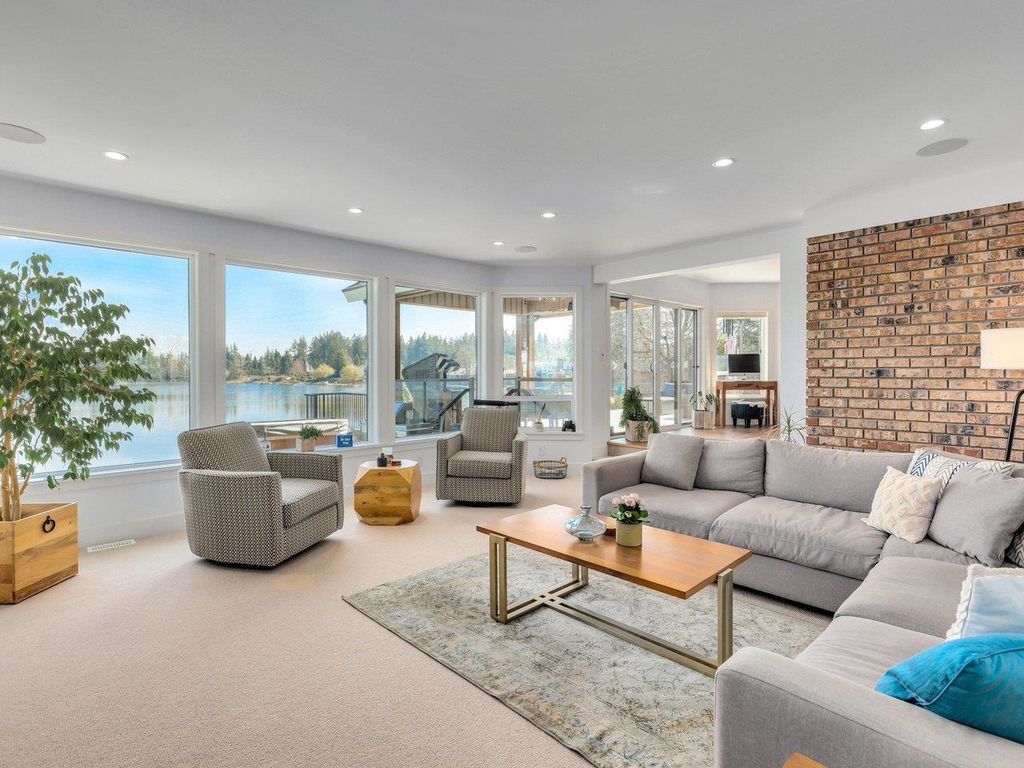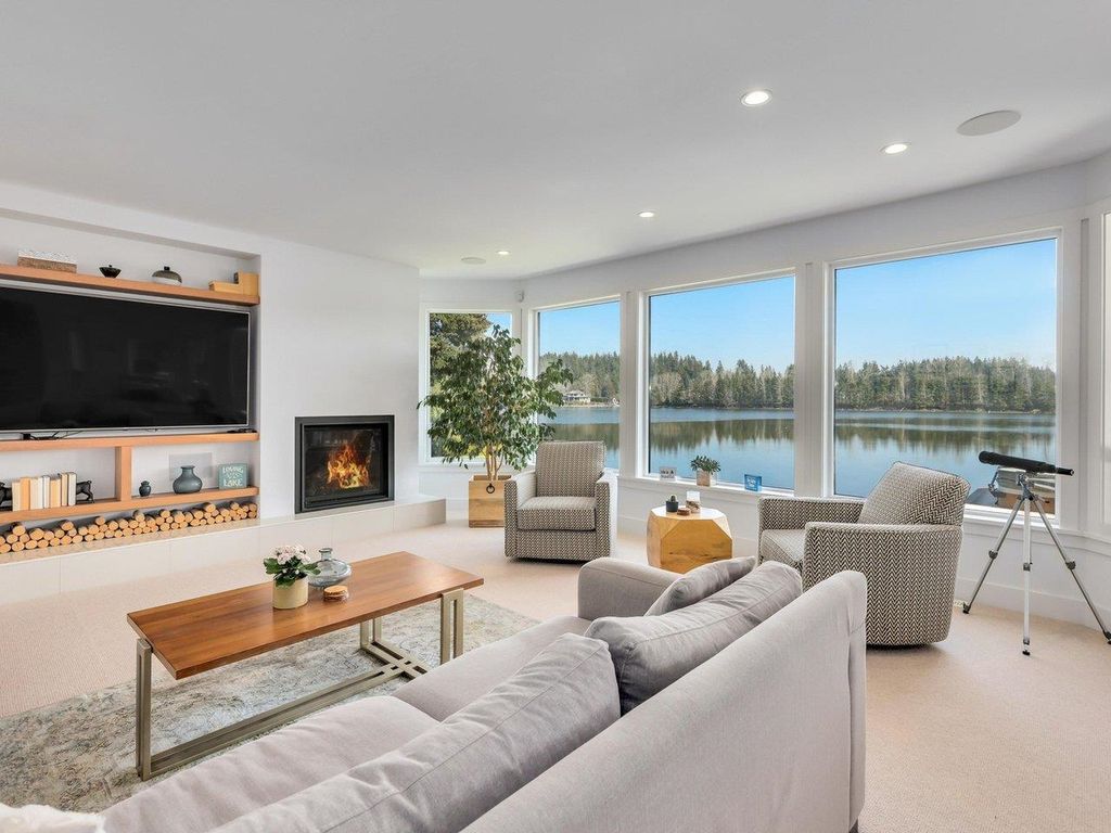 SUNRISE LAKE! Welcome to this 2 acres ultimate secluded Lakefront Home with Spectacular Water Views on 2 levels and 147 feet of private Sand Beach. This gated fully renovated Modern Farmhouse features 2 primary bedrooms & 1 bedroom legal suite, all with breathtaking views. The Gourmet Chef's Kitchen offers incredible water view, THERMADOR high-end appliances, oversized island. Other luxury features include top-to-floor windows, heated tiles, barn doors, wet bar, Steam room / Outdoor shower, motorized dock, Generator, A/C, 4 car garage plus ample parking space. Over 1,400 sq.ft outdoor living space with outdoor dining, hot tub, BBQ, fire pit, heater, speakers, perfect for friends and family gatherings. Crystal CLEAN SPRING-FED lake with activities including fishing, boating and swimming.