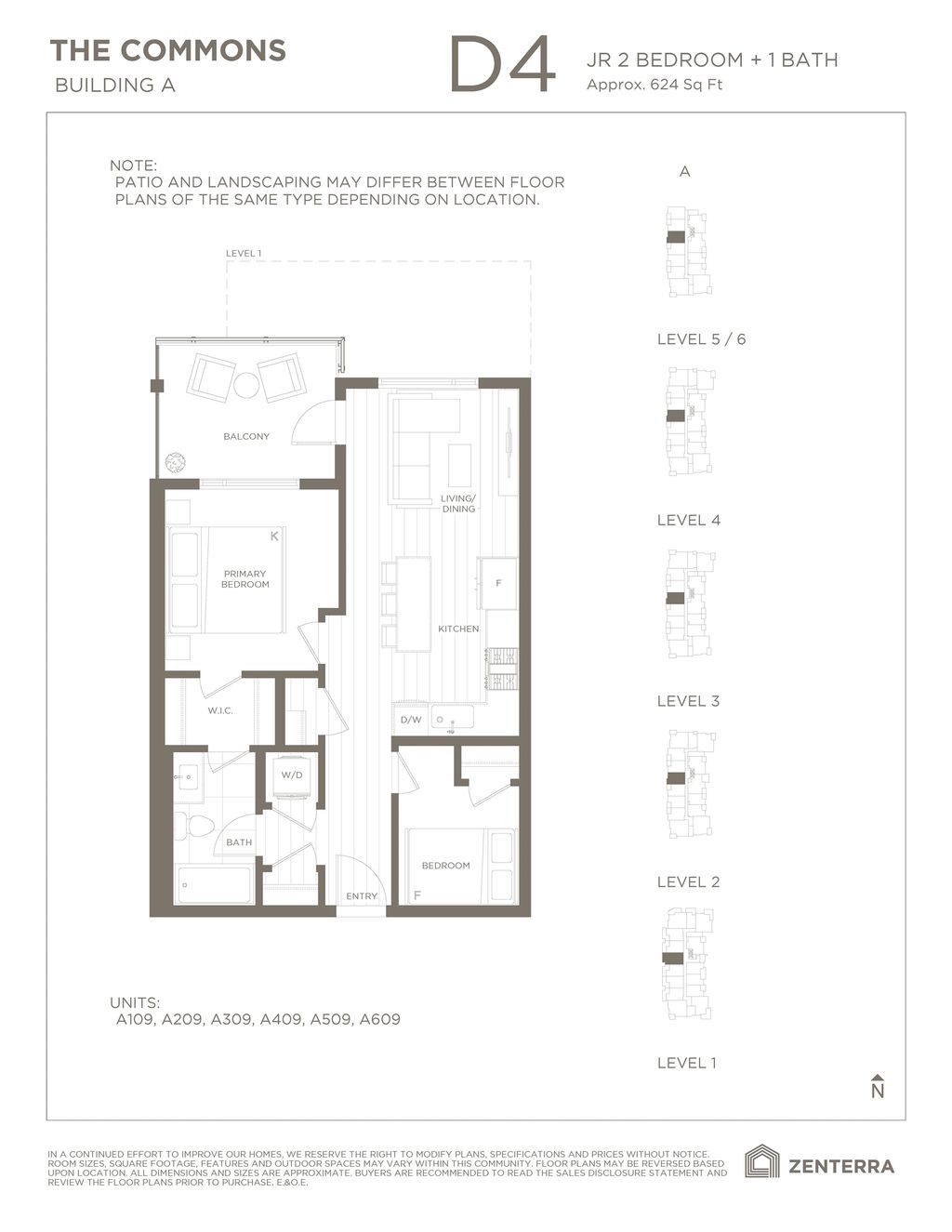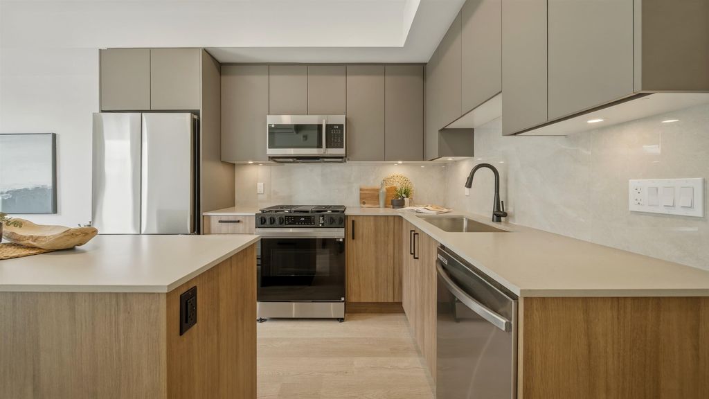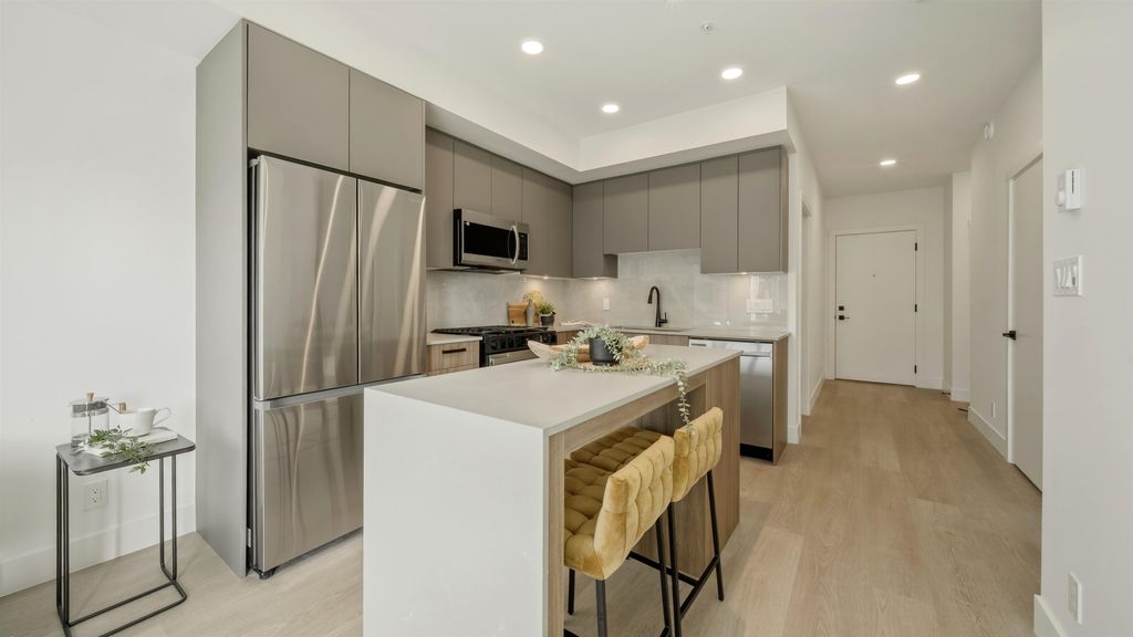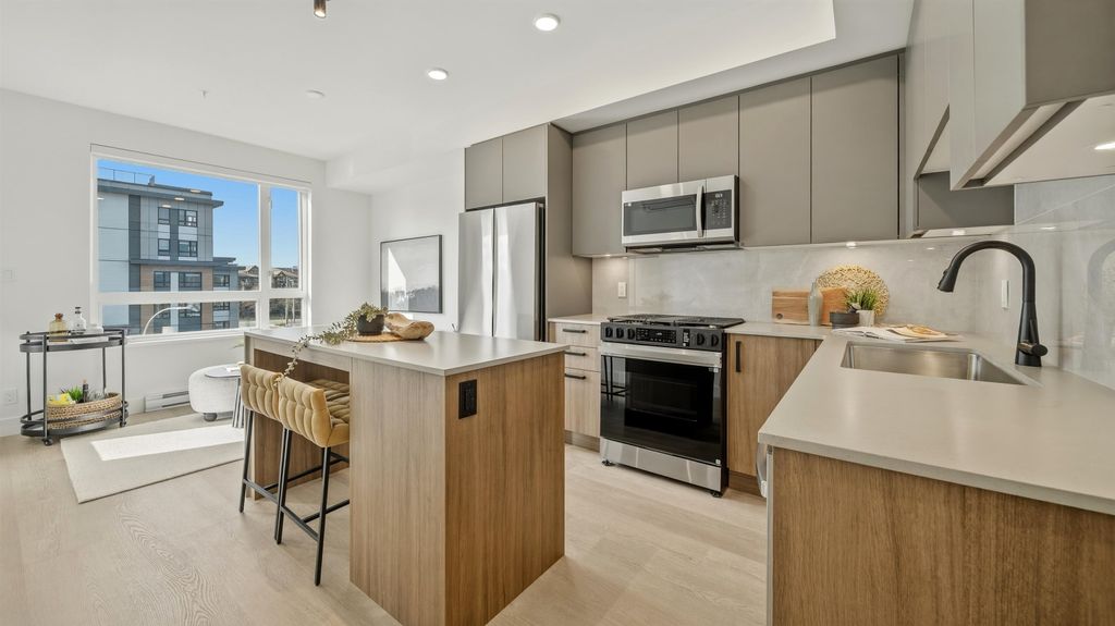 BRAND NEW. MOVE IN NOW! Introducing The Commons by award-winning Zenterra Developments at 82nd Ave and 208B St, Willoughby. Located steps from Willoughby Town Centre with easy access to Hwy 1. This BRAND-NEW condo offers 2 bedrooms, 1 bathroom with 9’ ceilings, A/C, built-in closet organizers, washer/dryer, storage locker and 1 parking stall with EV rough-in. Kitchen offers full-size stainless steel appliances including a 5-burner gas range, dishwasher, kitchen island + gas BBQ hookup on the balcony. Purchase with only 5% deposit. Amenities include a fitness centre, co-working space and 6,000 sqft rooftop patio with putting green and BBQ area. Tour this NEW HOME today by visiting our Presentation Centre - open daily 12-5PM (closed Fri) at 8230 208B Street.