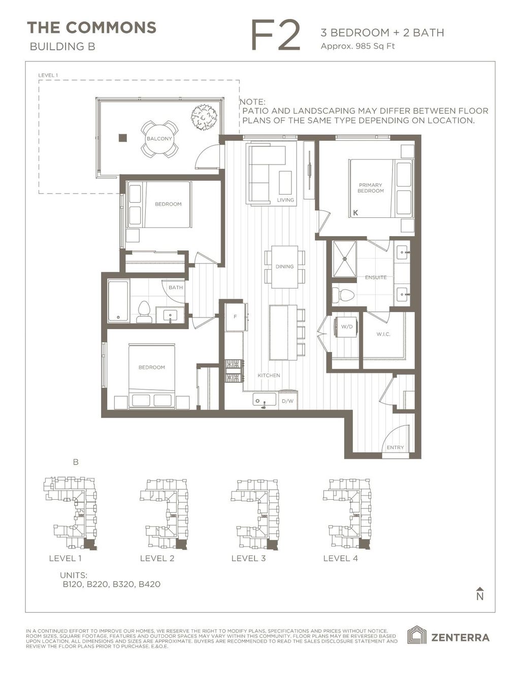 THE COMMONS, built by Zenterra Developments, where timeless elegance meets modern living. Centrally located in Willoughby, THE COMMONS is surrounded by major entertainment options, shopping destinations, and convenient transportation links. Experience the dynamic energy of Langley's growth while enjoying unparalleled convenience and accessibility THE COMMONS will be completed in Late 2025, and our deposit structure is a total of 5%. PC is located at #190 - Willoughby Town Centre Dr. Hours is Sat to Thur 12-5pm (Friday Closed) *Measurements are from our marketing material and it is an approximate, as this is a preconstruction.