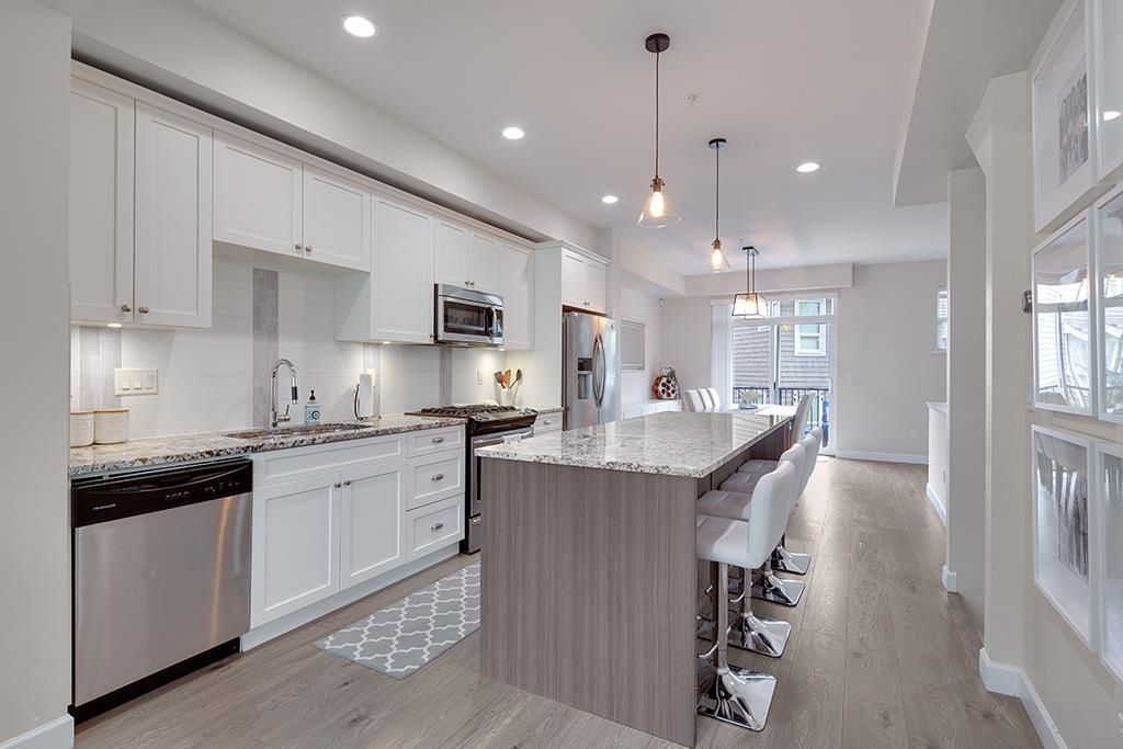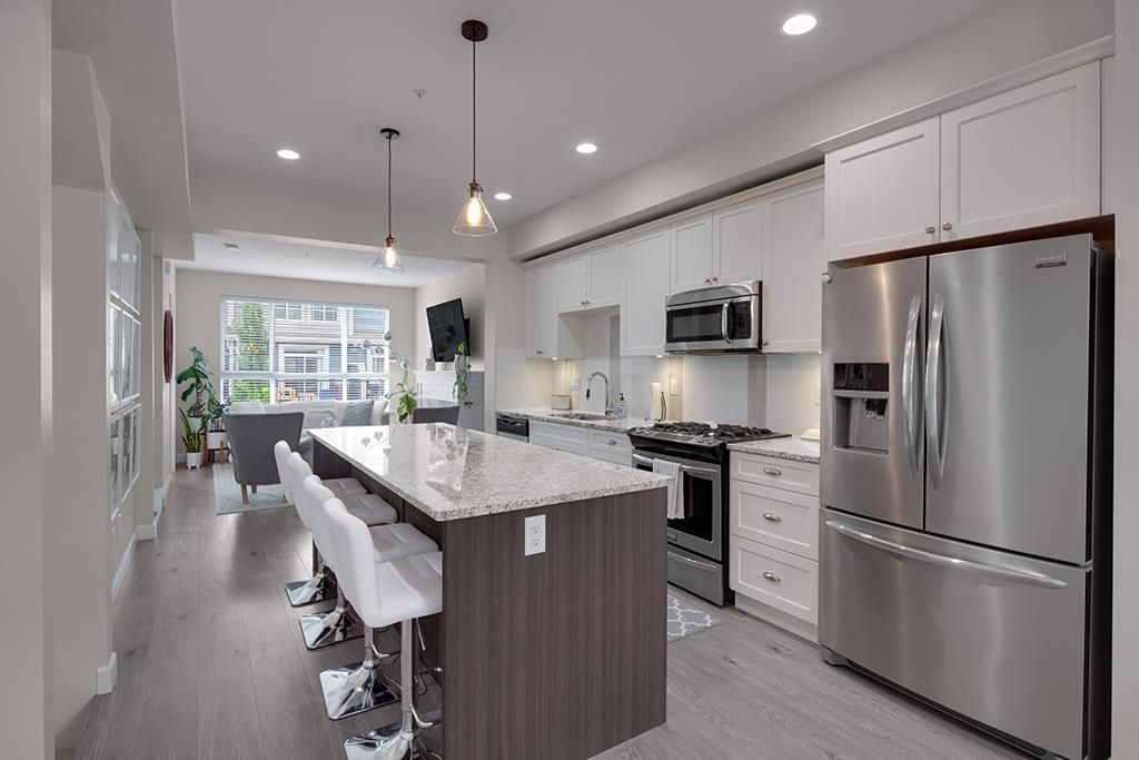 This gorgeous, bright and modern townhome in Milner Heights checks off all the boxes. Bask in the sunlight from your over sized window in the living room, and entertain in the open concept kitchen with a huge island, stone counter tops, and stainless steel appliances. Have warm, hearty gatherings in your dining room that opens up a spacious balcony with a gas hook up, perfect for entertaining friends and family. Downstairs is your huge rec room which opens up to your fenced back yard. Right outside your back door is a kid's play area, plus walking trails just beyond that. Upstairs are 2 good sized bedrooms plus a gorgeous master bedroom with a double sink and walk in closet.