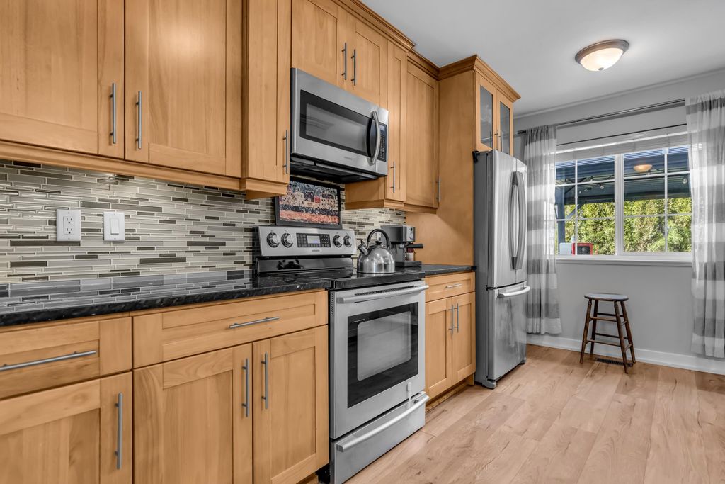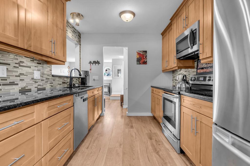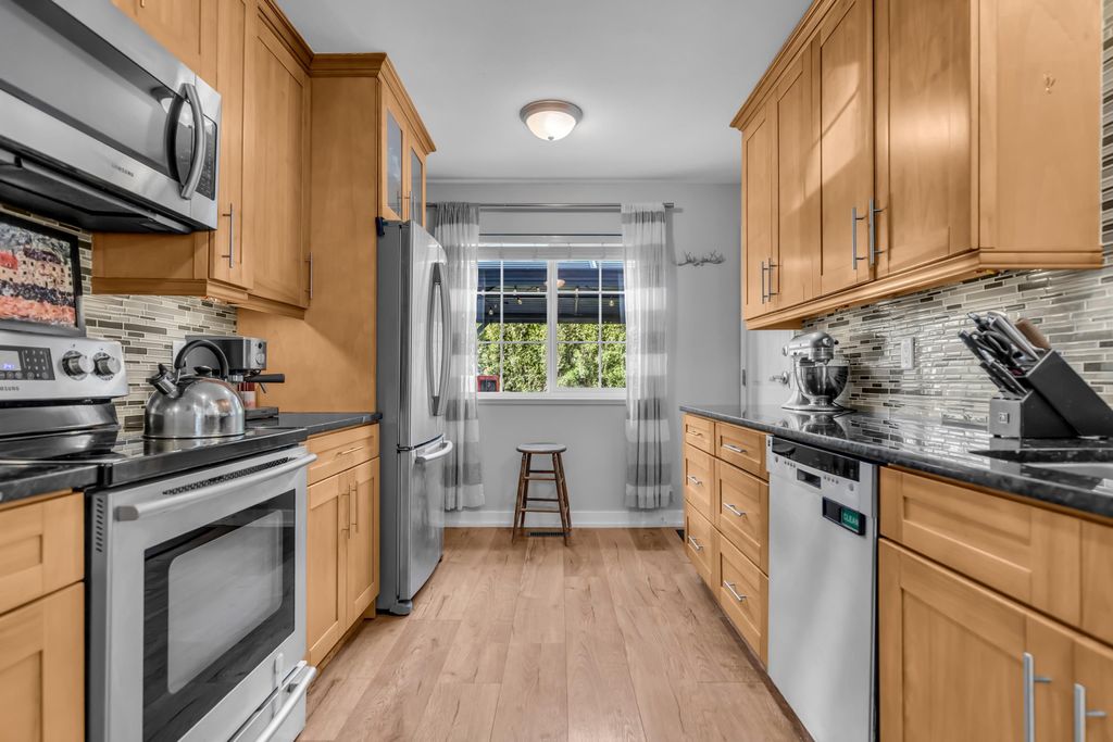 Welcome to this Great Family oriented development "Foxfield"! This tastefully updated 3 bed /2.5 baths, 1587 sqft end unit Townhouse, offers an open floor plan with spacious living room & dining area with a walkout off the kitchen to an oversized private fully fenced updated backyard! Convenient powder room on main. Upper floor offers 3 bedrooms and 2 baths. Master with ensuite & W/I closet. Recent renos include new luxury vinyl flooring & carpet, new hot water tank, new high efficiency furnace & updated bathrooms. Parking for 2 vehicles with single garage & second space right beside the unit. Quick walk to Kanaka Creek Elementary, Thomas Haney Secondary, Parks, Creeks, Planet Ice & Telosky Stadium. Easy access to shopping, Lougheed Highway, Haney By-pass & West Coast Express.
