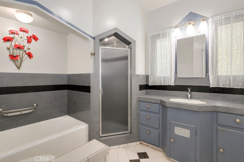 ~~ PRICE REDUCED~~ Immaculately maintained and exquisite Spanish-style single-story in a historic North San Bernardino, tree-lined neighborhood. 3 bedrooms and 2 bathrooms. 1521 Sq Ft with wonderful curb appeal. The front porch has custom tile accents and leads to the entry of this amazing property with redwood construction and concrete walls. The interior features an open floorplan, lots of natural light, honey oak hardwood flooring, plaster ceilings, custom baseboards, recessed lighting, and brass door chimes! The Living Room has a custom marble fireplace and mantel. The Kitchen includes original 3/4-inch plywood cabinets, stainless steel appliances, and opens to the Dining Room with a corner built-in cabinet, and an ironing board cabinet. There are 7 closets including a cedar-lined hall closet. Bathroom 1 has the original sink, original door, custom flooring, a soaking tub, and a separate shower. All of the bedrooms are generously sized; Bedroom 1 has 2 closets. Bedroom 2 is currently used as an office but features a closet and French door to the backyard and Bedroom 3 has a double closet and accesses the half bathroom with vintage tile. Indoor Laundry off the kitchen includes shelving and a French door. The backyard is private with a patio, shed, and room to park extra vehicles. There is a grapefruit tree, a lime tree, and an orange tree, as well as corn, tomatoes, carrots, and basil in the garden! The detached 2-car garage has built-in wooden shelving, a sink, and additional plumbing with laundry hook-ups and a washer & dryer (this could be potential for a 2nd unit). There is a tankless water heater. No HOA Fees and a Low Tax Rate! Close to schools, shopping, and easy access to 215 Fwy, 210 Fwy.