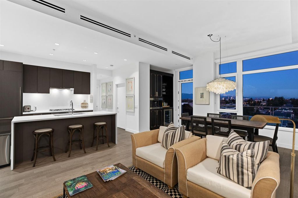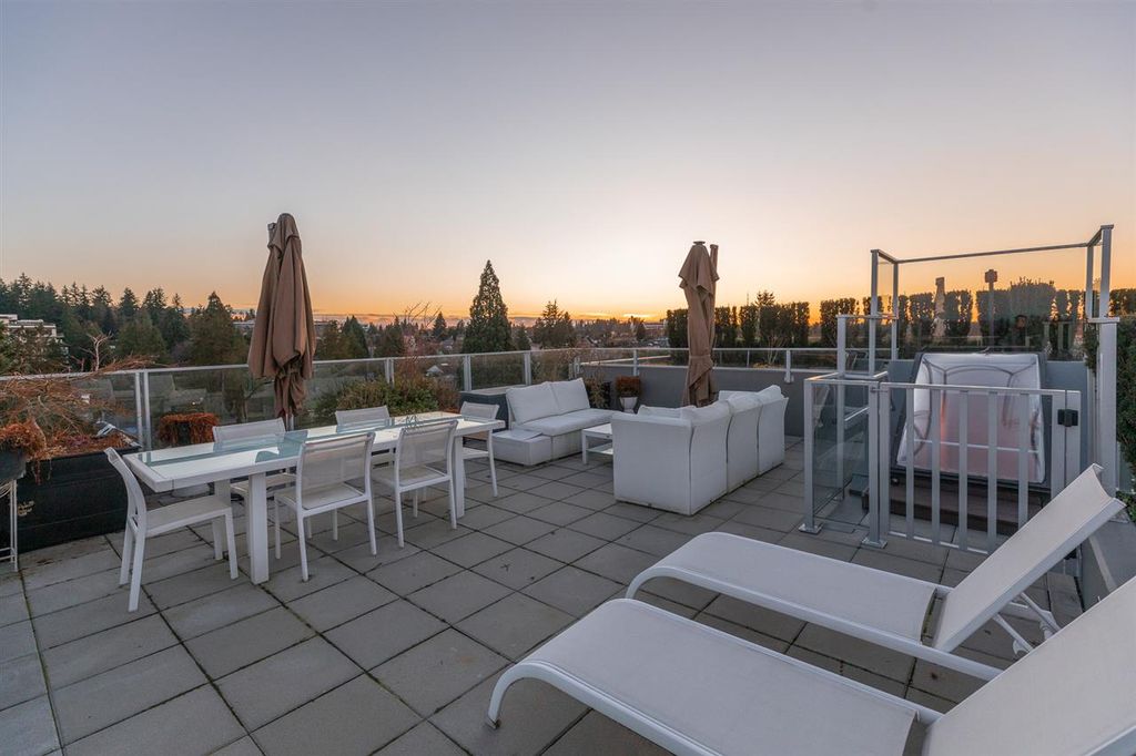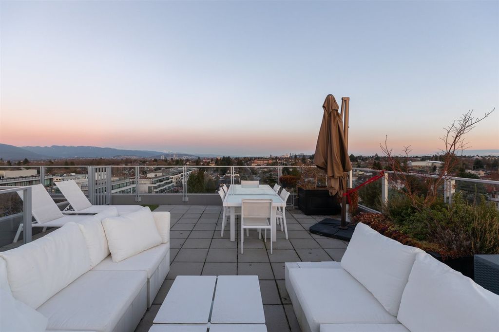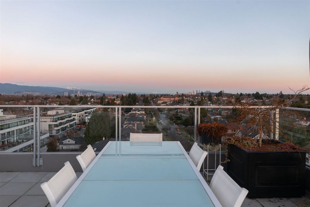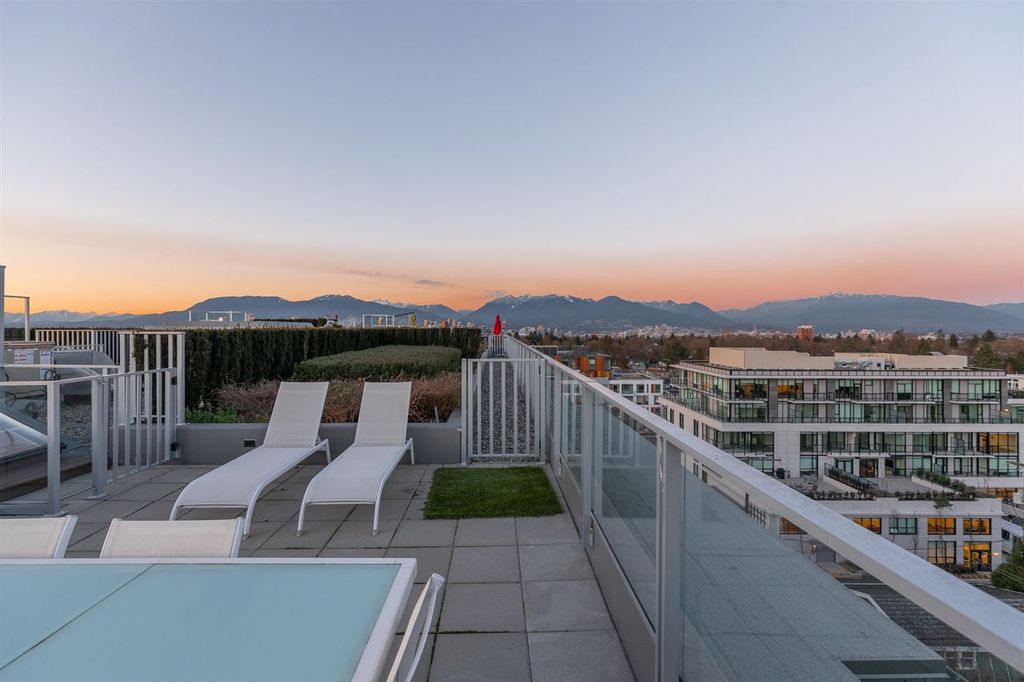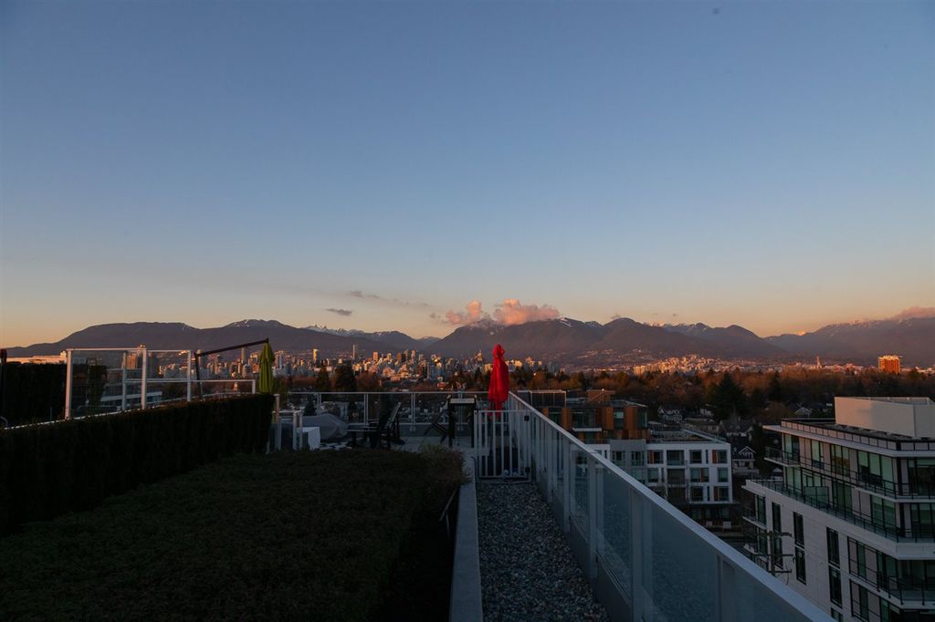 A boutique concrete mid rise building. This SE corner unit PENTHOUSE has everything you are looking for in a condo that lives like a home. The 3 bed 2 bath suite boasts 10' ceilings, air conditioning, blackout blinds, a huge waterfall kitchen island and an open concept plan. You'll find ample storage inside with a separate entrance/coat storage, a designated pantry room, a laundry room w/ extra storage and a built in bar w/ coffeemaker. Up above you'll find an incredibly private rooftop terrace on the quiet side of the building with stunning city/mountain views and is perfect for entertaining or relaxing with a good book in the sun. Located in the Cambie corridor- minutes to QE park, Hillcrest community centre. Active 2-5-10 warranty. Comes w/ 2 parking and private storage room!