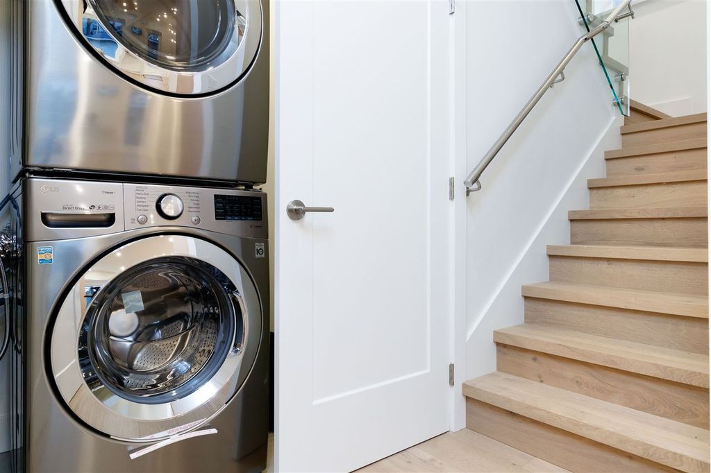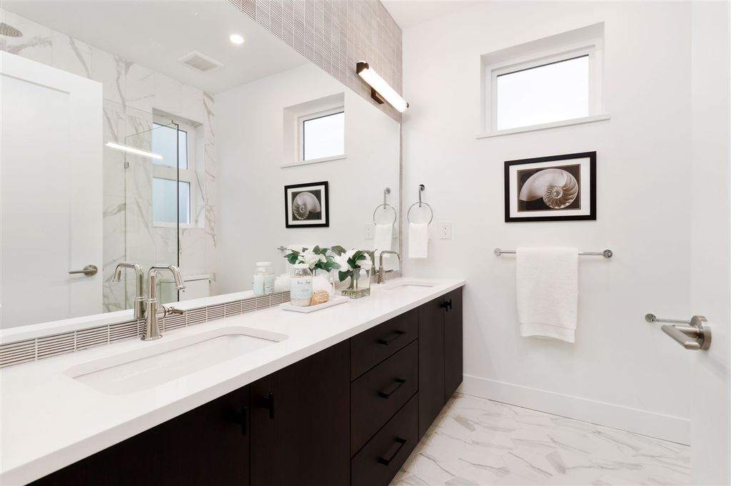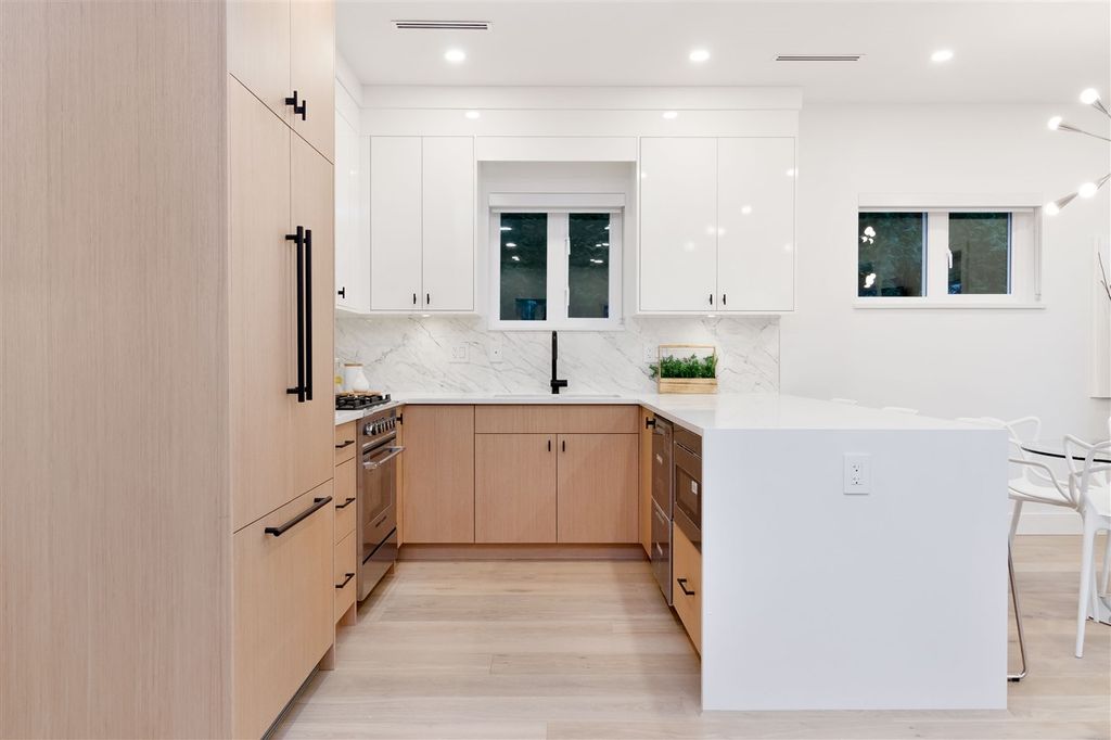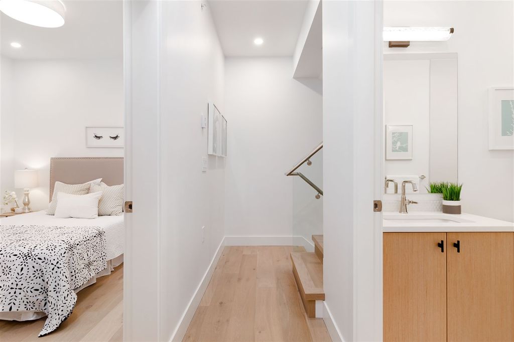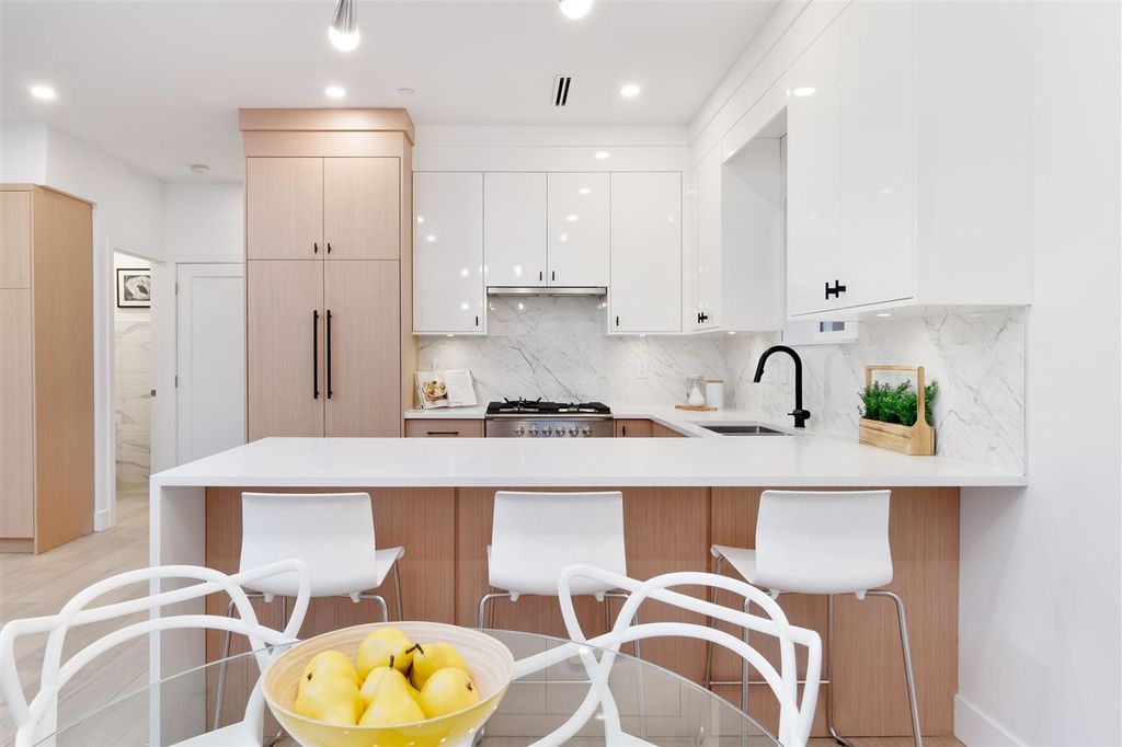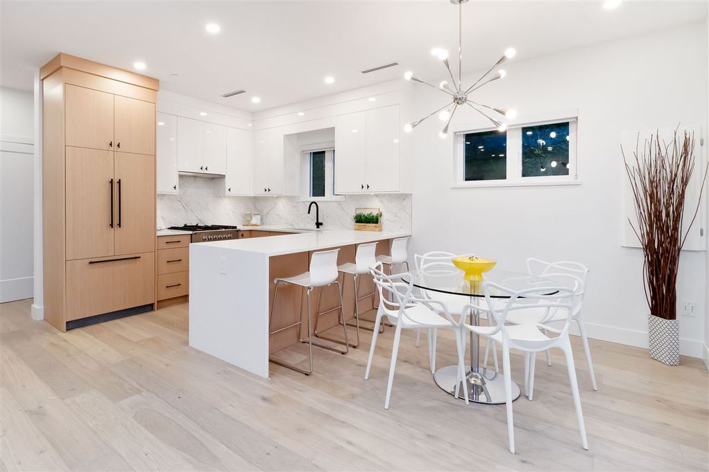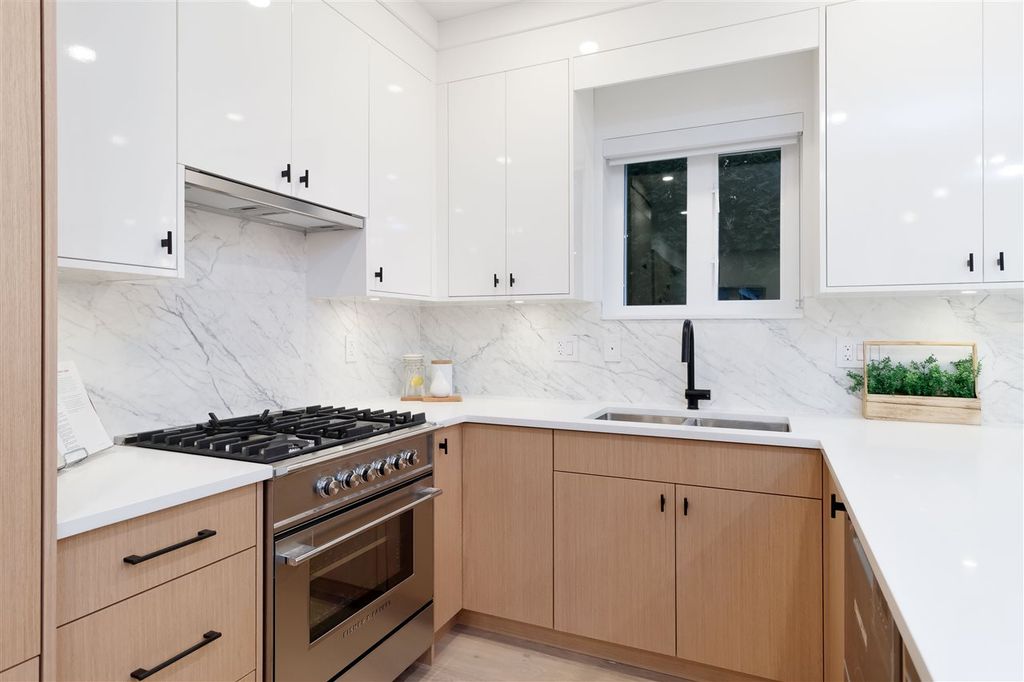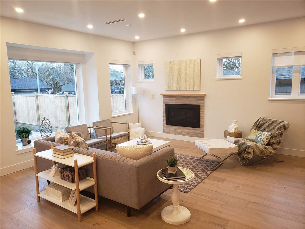 Modern Style Homes is pleased to present this beautiful ½ duplex in the popular Grandview-Woodland neighbourhood. Designed for family living, these homes offer 3 bdrms & 3.5 baths. Featuring a high end integrated appliance package, quartz countertops, engineered brushed oak hardwood floors & custom millwork throughout, this home is sure to impress. The fully installed air conditioning will keep you cool on those hot summer days, while the radiant in-floor heat & fireplace will keep you cozy on cold winter nights. Enjoy the outdoors w/a large fenced yard, main floor patio & a top floor deck w/mountain views. Enjoy peace of mind w/the private garage, fully integrated security system, large crawlspace for storage & new home warranty. OPEN HOUSE Sat & Sun 2-4 pm.
