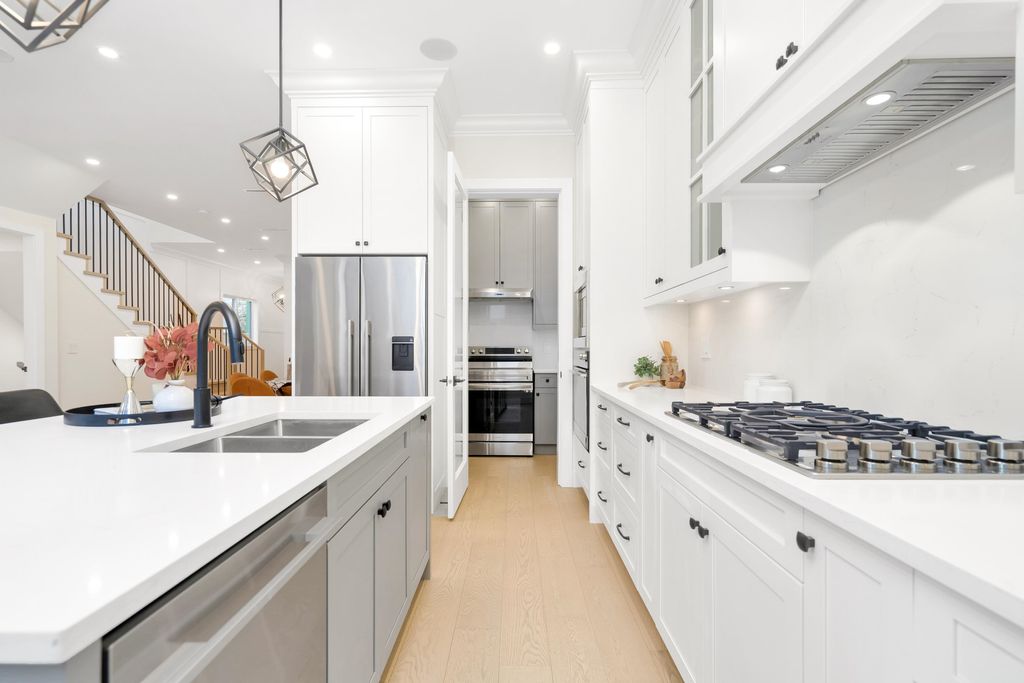 Introducing a stunning brand new modern-style home in the sought-after area of East Burnaby! This property is equipped with a home warranty and built by a reputable builder. The main floor offers a spacious open-concept living space, featuring a living room, dining room, kitchen, spice kitchen, and office - perfect for hosting and entertaining guests. Upstairs, you'll find 4 bedrooms, 3 washrooms, and a deck off the back to enjoy the beautiful surroundings. The basement boasts a 2 bedroom legal suite, along with a media room and wet bar. This home offers convenience and accessibility with a double attached garage and a nice flat backyard. It is located close to school and public transportation, making commuting and running errands a breeze.Don't miss out on the opportunity to own this home