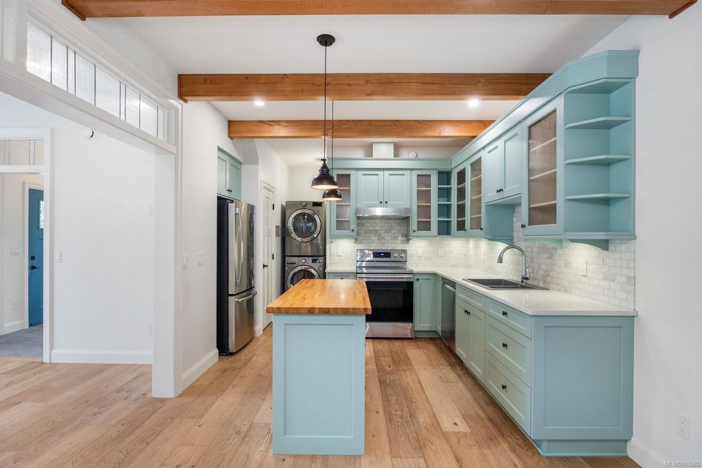 Energy efficiency meets timeless West Coast style in the sought after Old Orchard area! Built in 2018, craftsman style & quality built lane way duplex by Heritage Revival Homes Ltd. Just steps from the lively downtown core of Courtenay, nature parks and trails of the Puntledge River. The home offers bright main floor living, kitchen, half bath and laundry downstairs with 3 bed and 2 bath upstairs. Intentional features include; 9 ft ceilings, art glass door way transoms, engineered wood floors, wool carpeting in bedrooms, all wood cabinets with painted finish, hanstone wood and porcelain countertops, exposed beams in the dining and kitchen areas, 4 piece main bathroom and 4 piece master ensuite.The latest energy saving technology incorporated include; heat pump, heat air recovery system, on demand hot water, drain water heat recovery, LED lighting, & additional insulation. All wood materials used for the exterior features, trim & siding, and fenced garden space.