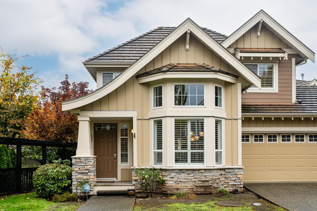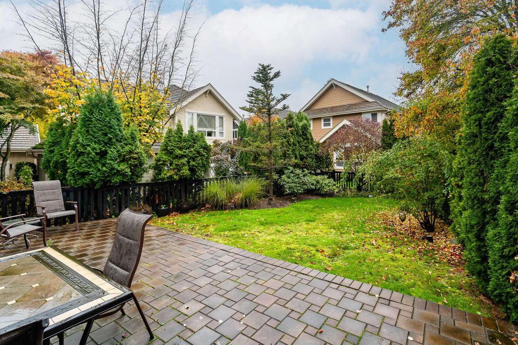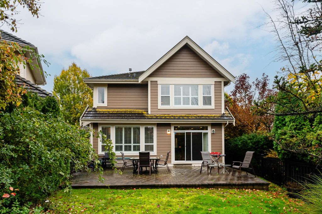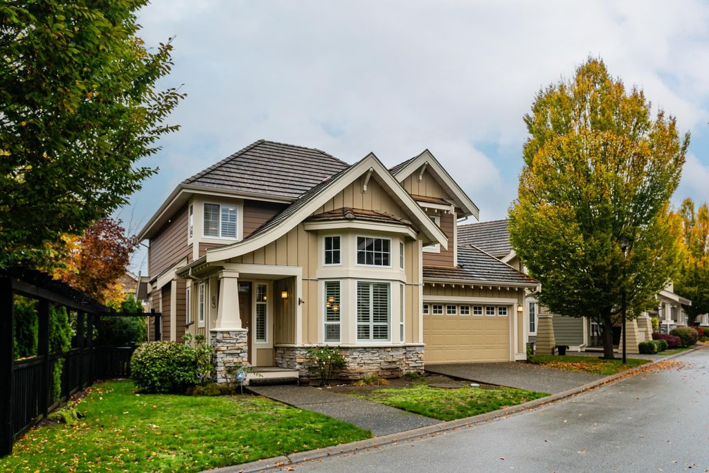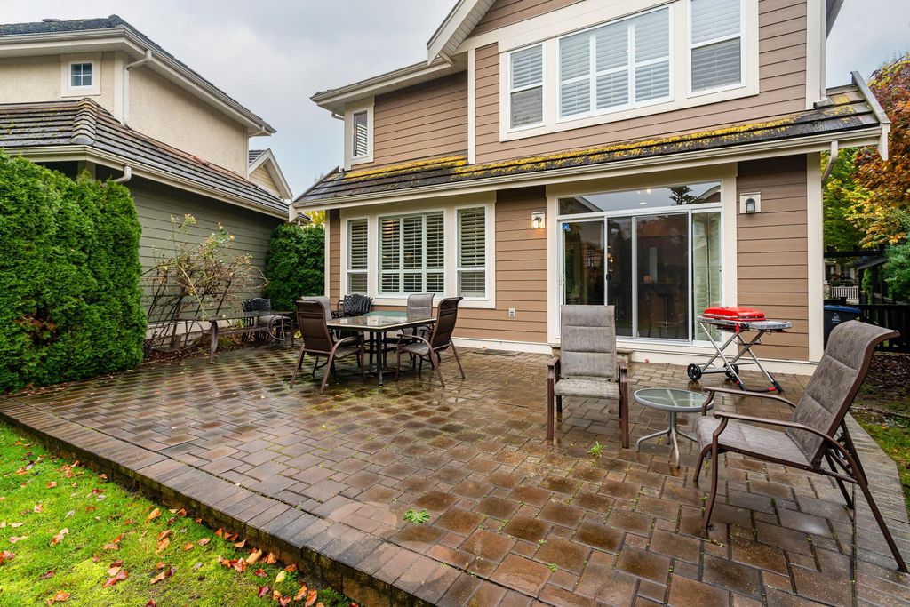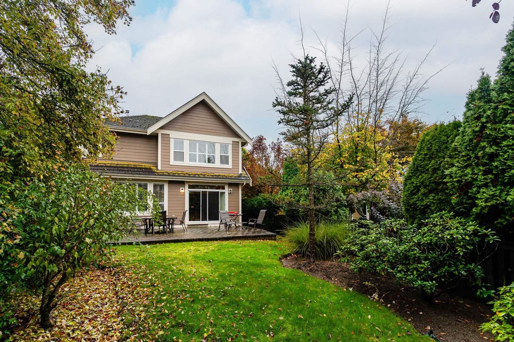 Beautifully updated 5-bed, 4-bath 3078 sqft detached house in this amazing strata community. Welcome to Cambria! This home has the biggest & best patio/yard you'll find in Rosemary Heights! This Monterey floorplan features a gourmet kitchen, family room & vaulted ceilings in living room. Updated hardwood floors, new tile floors & new carpets too! Upstairs has three large bedrooms - huge primary bedroom w/W/I closet & reno'd ensuite bathroom! A comfortable basement - games area, rec room, two addl bedrooms & another beautifully reno'd full bathroom too! Kitchen has gas stove newer appliances, granite counters & walk out HUGE patio. Laundry room w/upper & lower cabinets, utility sink & stacking F/L washer/dryer on the top floor. Other features include security system, B/I vacuum & much more!