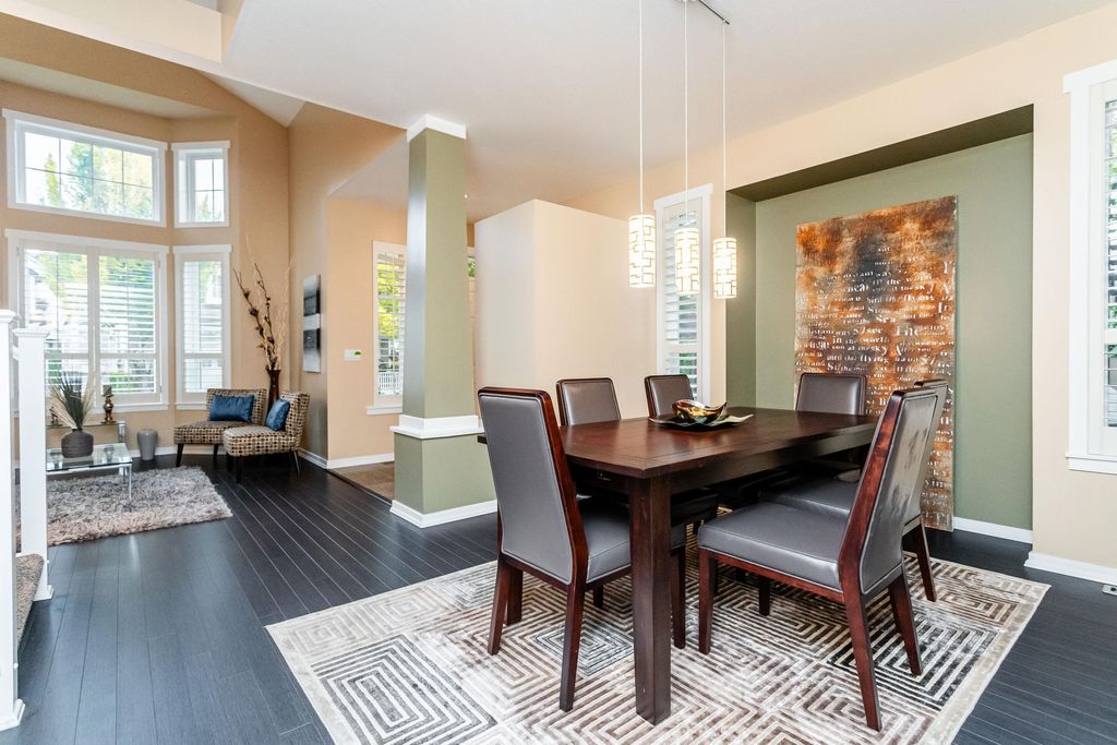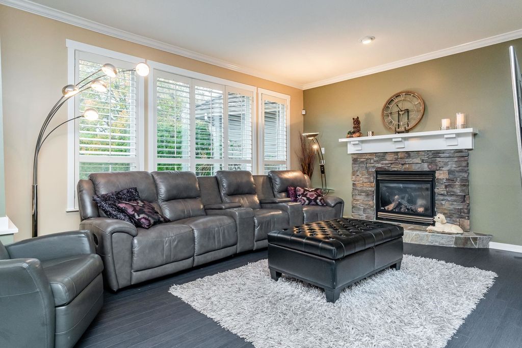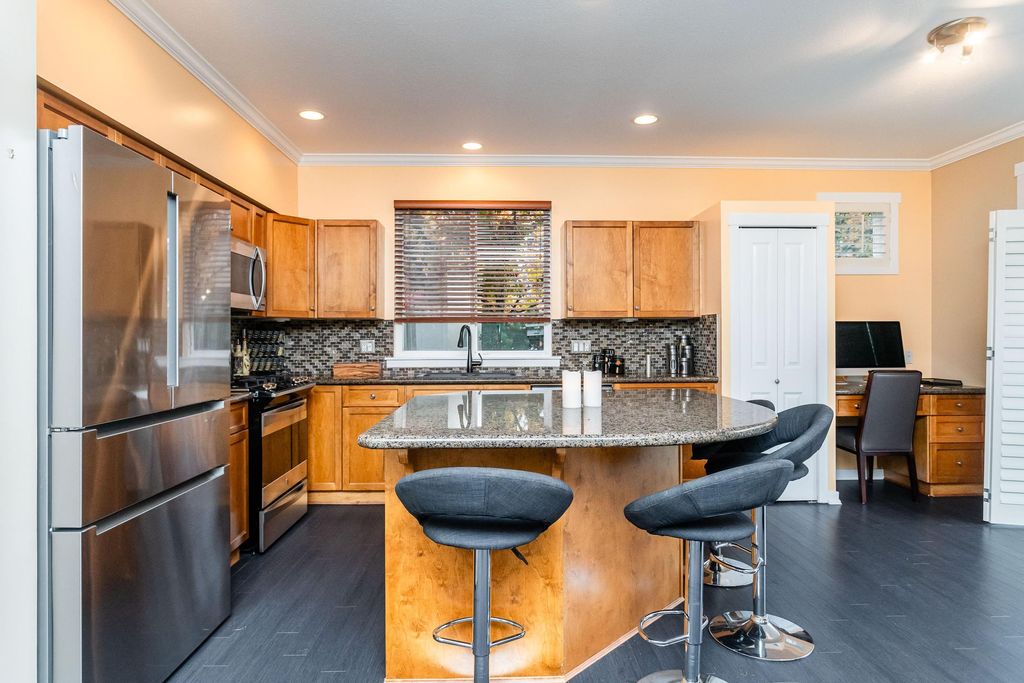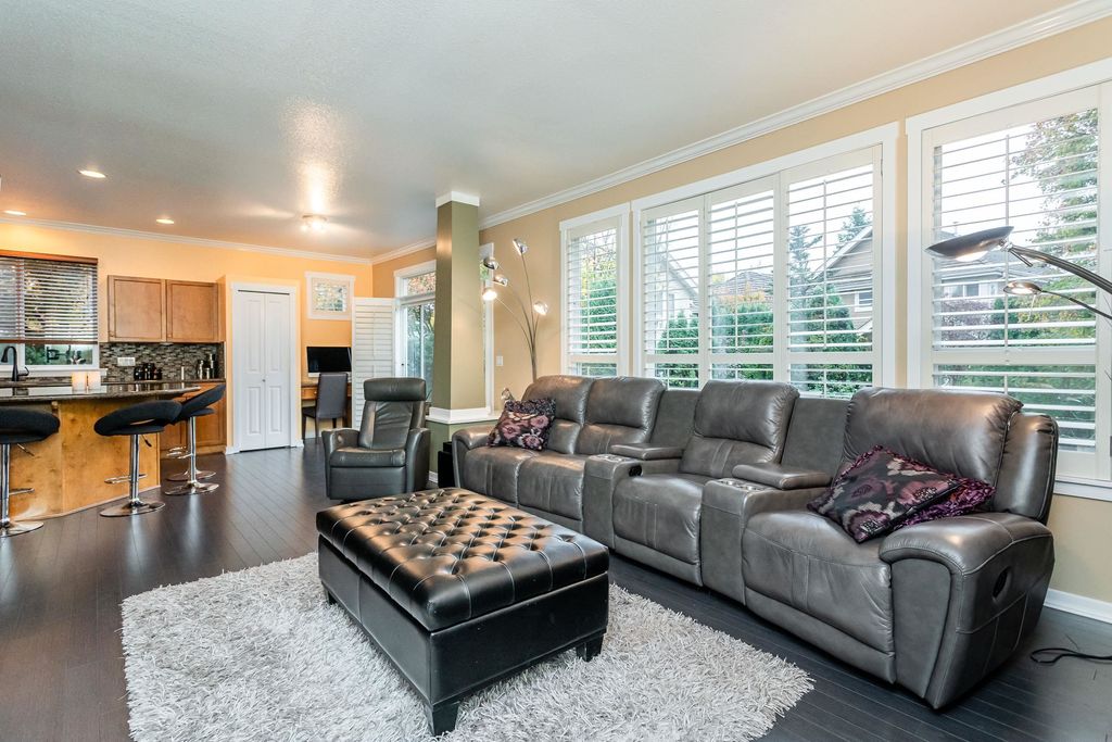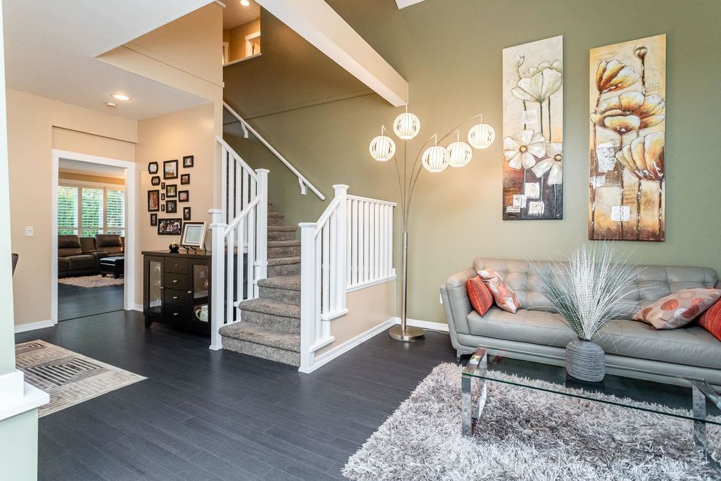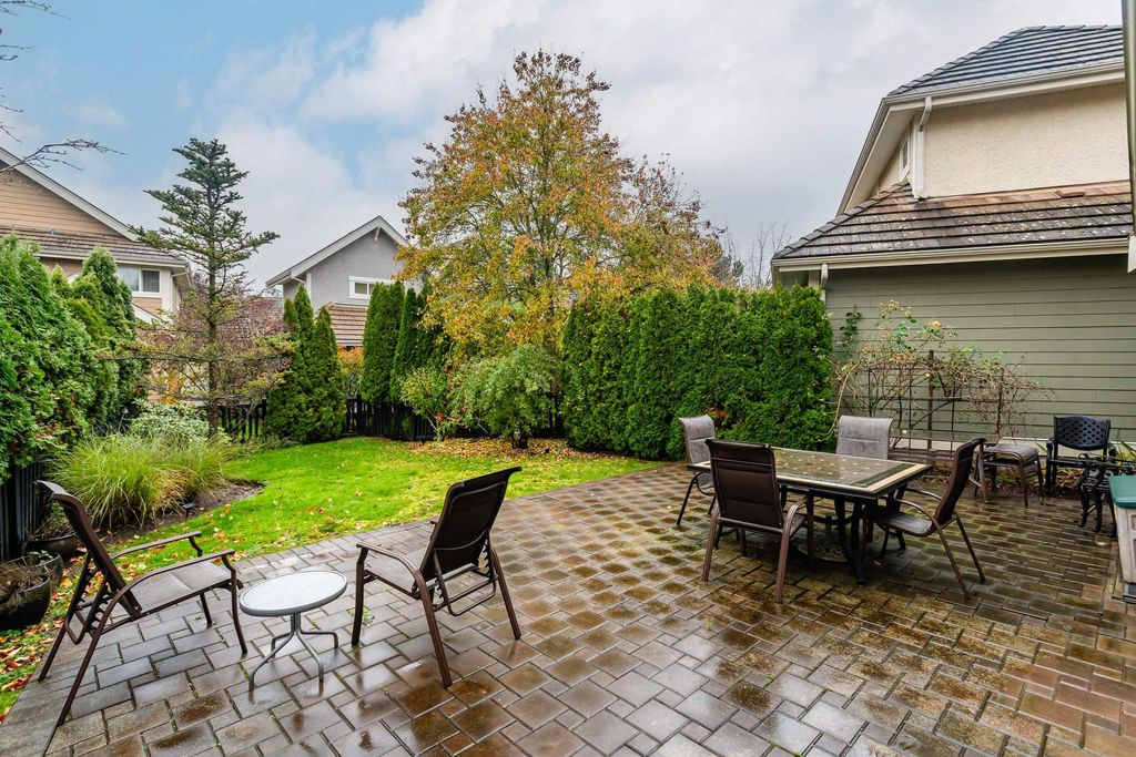 Beautifully updated 5-bed, 4-bath 3078 sqft detached house in this amazing strata community. Welcome to Cambria! This home has the biggest & best patio/yard you'll find in Rosemary Heights! This Monterey floorplan features a gourmet kitchen, family room & vaulted ceilings in living room. Updated hardwood floors, new tile floors & new carpets too! Upstairs has three large bedrooms - huge primary bedroom w/W/I closet & reno'd ensuite bathroom! A comfortable basement - games area, rec room, two addl bedrooms & another beautifully reno'd full bathroom too! Kitchen has gas stove newer appliances, granite counters & walk out HUGE patio. Laundry room w/upper & lower cabinets, utility sink & stacking F/L washer/dryer on the top floor. Other features include security system, B/I vacuum & much more!