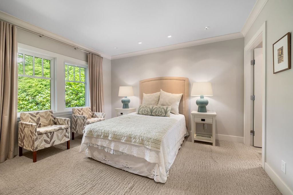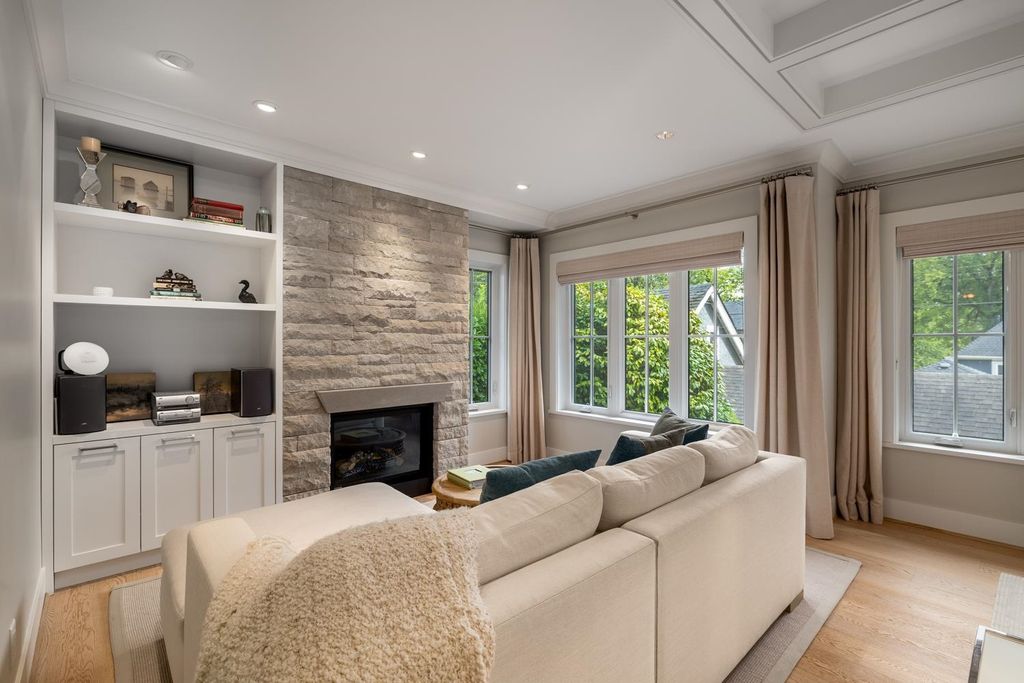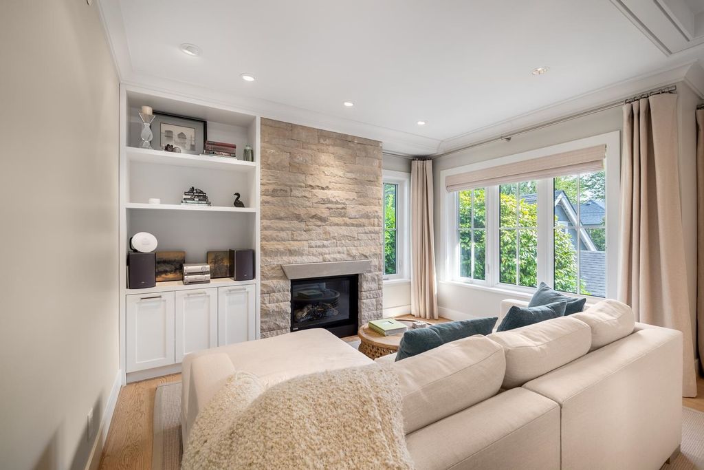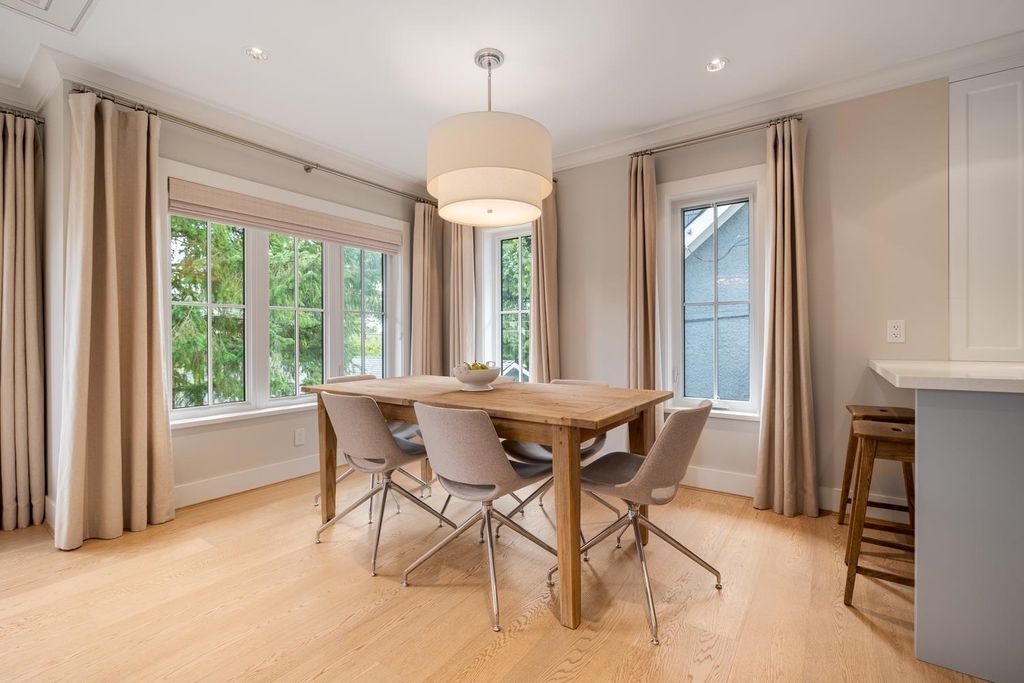 This exceptional residence showcases the sophisticated touch of Kelly Deck Design, nestled in the picturesque neighbourhood of Dunbar offering an inviting combination of luxury, comfort & contemporary elegance. This completely renovated home features 3 spacious bedrooms, 4 beautifully appointed bathrooms, Double garage for secure parking & Elevator for easy access between floors, Wide plank oak flooring with radiant heating, integrated Bosch appliances, Marble & Quartz countertops provide a seamless blend of style & durability. Designed to accommodate both entertaining guests & enjoying quiet moments. Expansive, dreamy windows wrap around the home, bathing each room in natural light & providing tranquil views of surrounding nature and manicured yard.