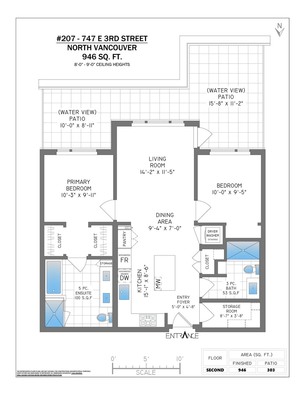 Say hello to the 2 Bedroom home with enormous sunny patio you've been waiting for! Built in 2020, this 2 bed 2 bath 946 sf home has all the modern conveniences plus an oversized 303 sf South-facing patio that gets drenched in unobstructed sunlight and incredible views! Home features 8-9' ceilings, in-suite storage room/office space, open kitchen with gas burners, high-end appliances, large island + seating, large rooms, dining area, extensive windows, large closets with ample storage throughout and stunning luxury bathrooms. Modern heating/cooling system for the summer months, plus 1 parking and pet friendly. Come fall in love!