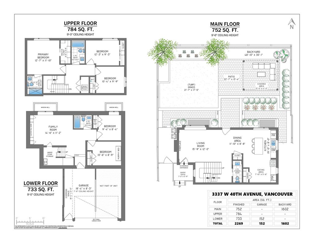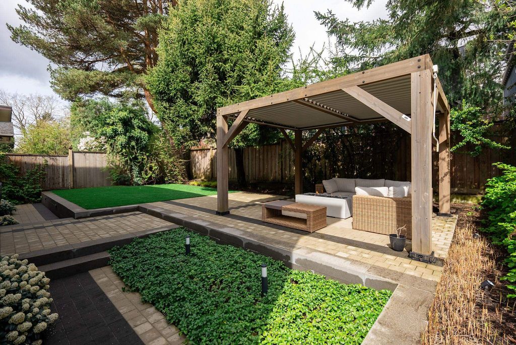 The perfect family home! This private back half-duplex offers ~2,300 sq ft of thoughtfully designed space & your own incredible 1,700+ sq ft sun-filled backyard w/ a well manicured lawn, gazebo & gas fire table. A rare opportunity in Dunbar for buyers seeking new construction, space, and privacy - without the unexpected costs of an older detached house. The main level features generous living and dining areas, while upstairs offers three bedrooms and two baths. Downstairs adds versatility with a family room, full bath, two bedrooms, & plumbing for a potential suite. Chef’s kitchen with Wolf range, quartz counters, & high-end appliances. Radiant in-floor heat, A/C, engineered wood floors, attached garage, 2-5-10 warranty & top school catchments. OPEN HOUSE CANCELLED
