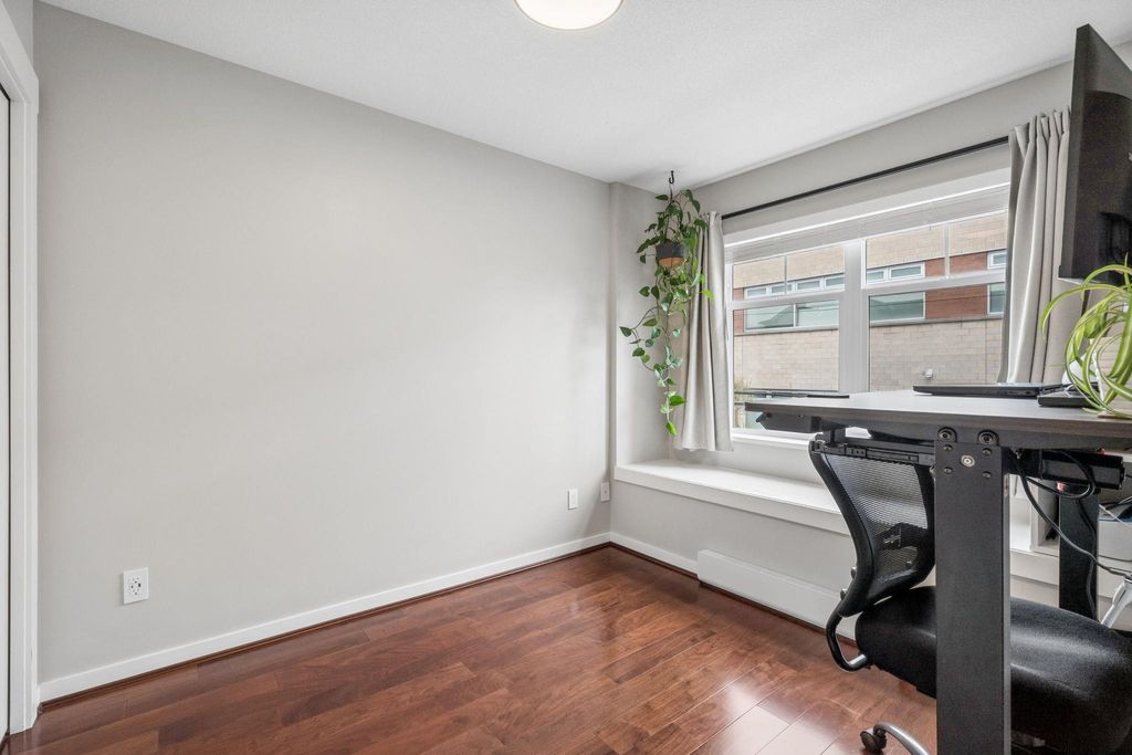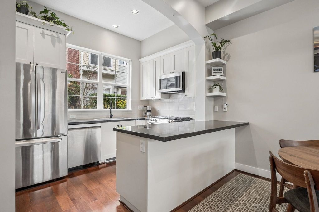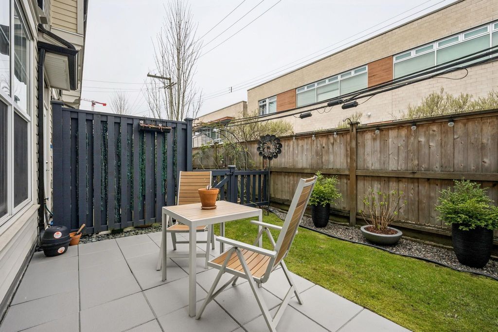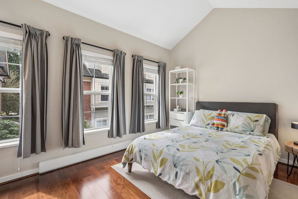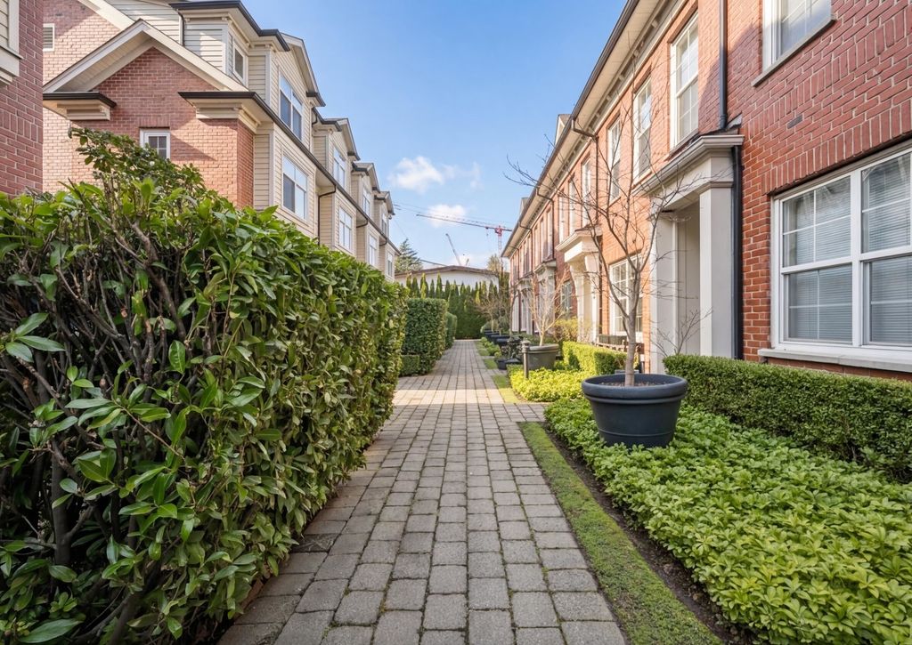 Stunning townhouse offering a rare blend of timeless architectural elegance & urban convenience, presenting a serene oasis right in the city. Your UPDATED 1600 SF 3 bdrm home offers a gated entrance, overheight ceilings in the living area, direct access to the garage & a private yard. Chef’s kitchen with gas cooktop/oven, bar seating opening up to a spacious dining/living room. Upstairs offers 2 generous bdrms + office/den, while the entire top floor is dedicated to a massive primary bdrm with a WIC & double-vanity ensuite. Bonus: A versatile recreation room off the private garage is perfect for a home theatre, office or play area. Conveniently located steps from the new Oakridge dev, transit, Canada Line & top-tier schools (Churchill, Hamber, Jamieson).