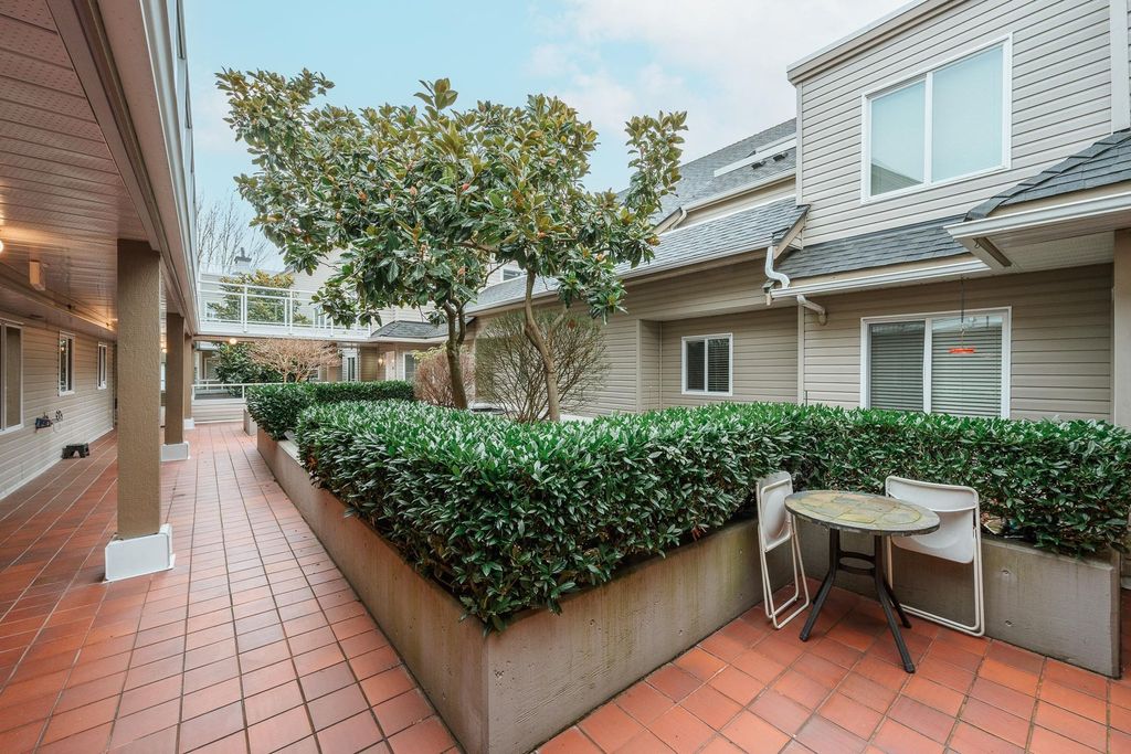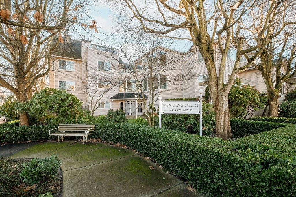 BRIGHT. CORNER. HOME. Welcome to a spacious corner residence in the well-established Fentons Court complex, offering the feel of a one-level home with the convenience of condo living. Located on the second floor, this original yet well-maintained home is filled with natural light from large southwest facing windows, creating an open and airy atmosphere. The functional layout includes generous living and dining areas, a full-sized kitchen with eating space, 2 BED + 2 FULL BATH over 1193 Sq.ft. The primary bedroom features a walk-in closet and ensuite. Private, covered patio provides a quiet, usable outdoor space year-round. Secure parking included. Steps to Memorial Park and walking distance to Ladner Village, shops, and amenities. ideal for buyers seeking space, privacy, and walkability.